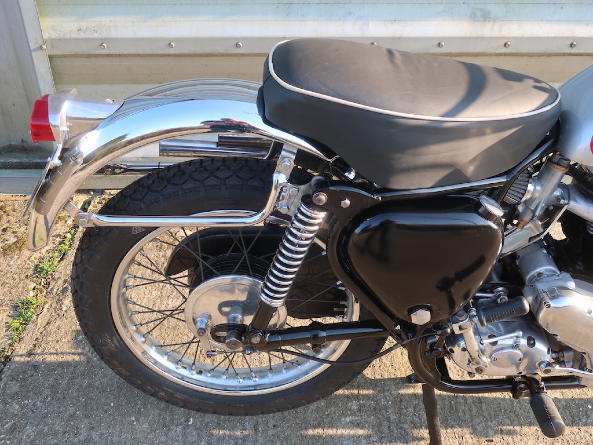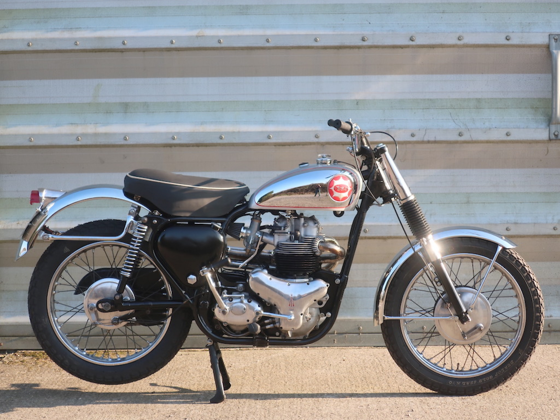 One of the rarest variations of the A10 the BSA Spitfire Scrambler was built specifically for the USA market on the insistence of BSA’s west coast distributor Hap Alzina. A stripped down competition model aimed at motocross and California desert races it had a lightweight frame, high compression pistons, full race cams and a close-ratio gearbox.