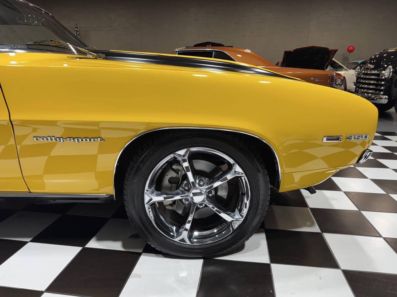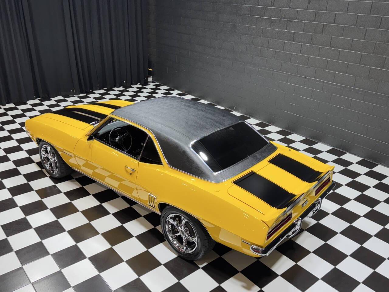 1969 Chevrolet Camaro RS/SS MODERN CHASSIS UPGRADE Custom transformation using a 2001 Camaro as a platform New components were purchased from General Motors to convert the entire powertrain to modern LS power 5.7L LS1 fuel-injected V-8 engine 6-speed manual transmission Power steering Power 4-wheel disc brakes Air conditioning Daytona Yellow with Black vinyl top Black power leather seat Tilt wheel-Cistom steering wheel Custom stereo system Upgraded wheel & Tire package Show piece- Ready for touring & shows This car drives and handles BETTER than ANY stock 69! TOP SHELF CUSTOMIZATION - MUST SEE IN PERSON! SEE MY VIDEO! Suggested Retail price $120,000.00 MGM Buy it Now price $99,995.00 Financing available $10,000 down pmt Must have good credit Sales tax & delivery can be financed as well Apply today on our website Text zip code for delivery quote 847-848-1850 All cars are sold in as-is condition Shown by appointment only! MGM Classic Cars LLC 150 S. Church Street Addison, IL 60101 Mon-Fri 9 am-5 pm Sat 10 am-3 pm