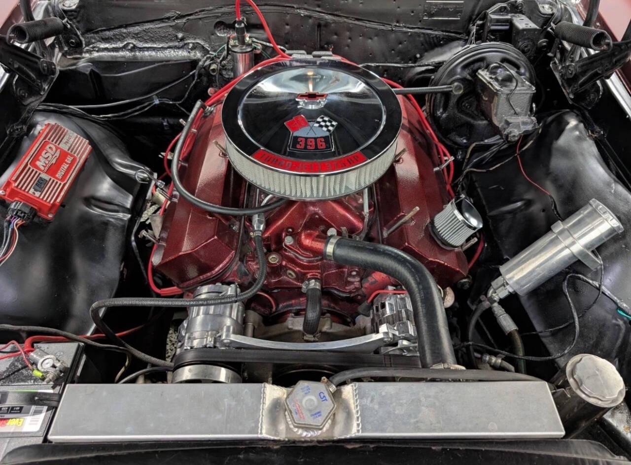 1967 Chevelle Custom -Beautiful Deep Maroon Metallic base coat clear coat paint!!! -5 Speed Manual transmission -Built 454 Big Block Chevy engine that runs and sounds incredible!!!! -Holley Aluminum intake manifold -Aluminum valve covers -The valve covers and intake have been hydro dipped. -Headers -Holley carburetor -MSD billet distributor -MSD Coil -MSD Digital 6 AL Ignition box -Billet aluminum Serpentine front runner pulley mount system -AC compressor mounted but not finished -Power disc Brakes -Power steering -Aluminum radiator -Electric fans -Flowmaster 2 exhaust all the way out the back. Sounds AWESOME!!!! -Very nice black bucket seat interior with factory console -All nice chrome throughout -US Mags Rambler wheels on like new tires *This is one BEAUTIFUL chevelle!! It runs and drives so incredibly nice and draws attention everywhere it goes!!!