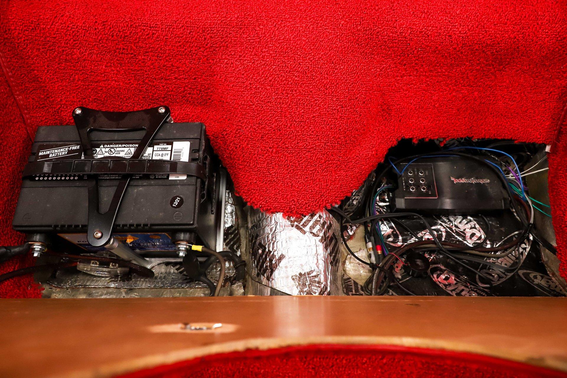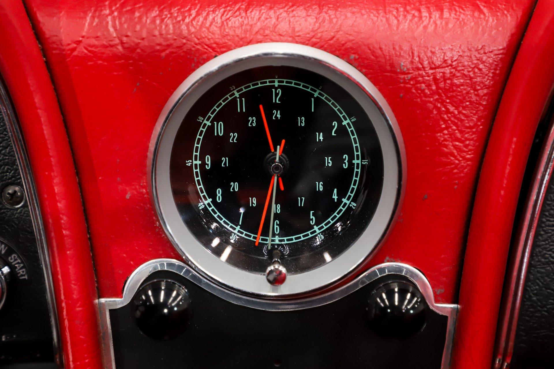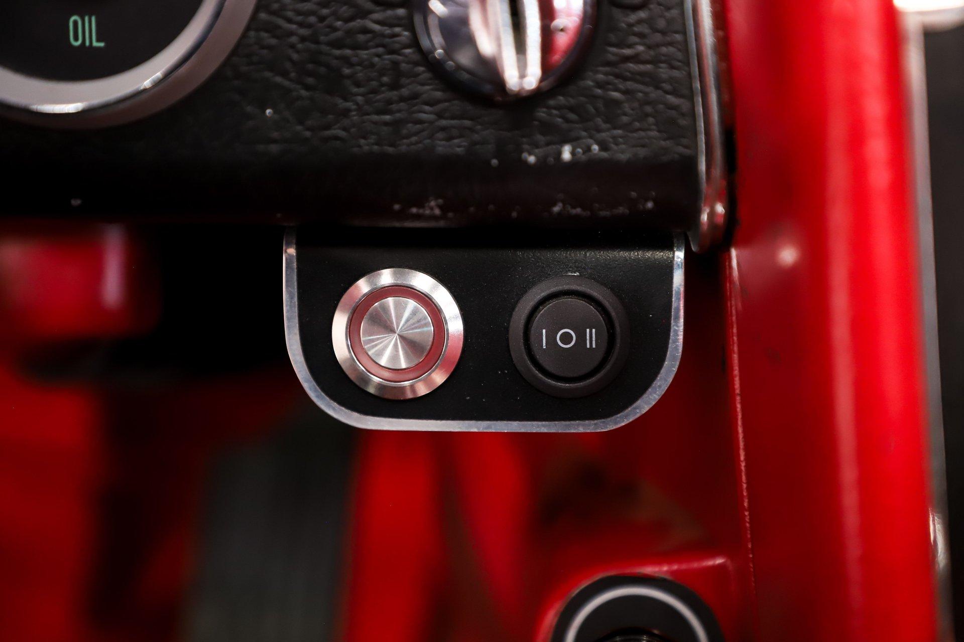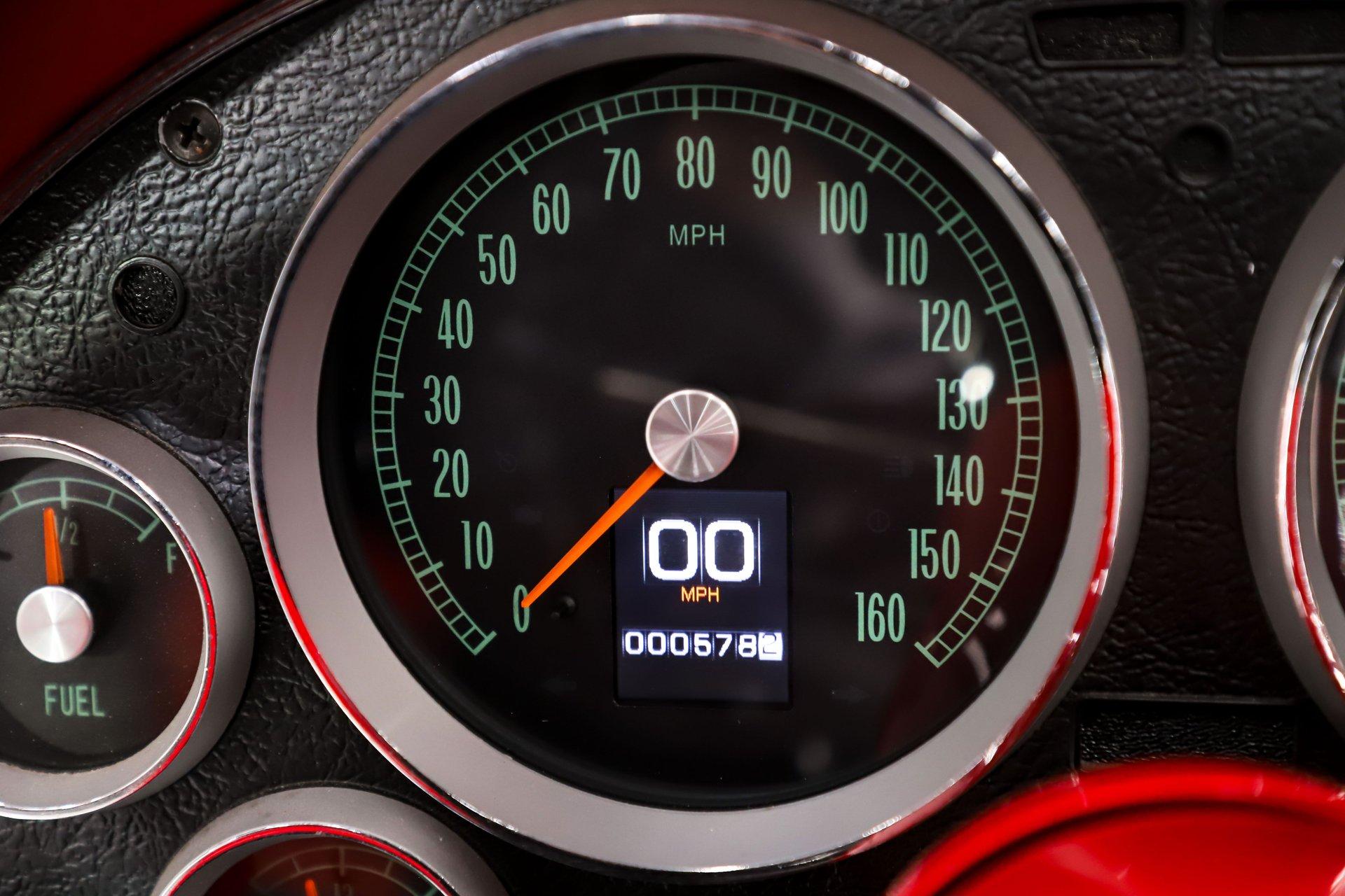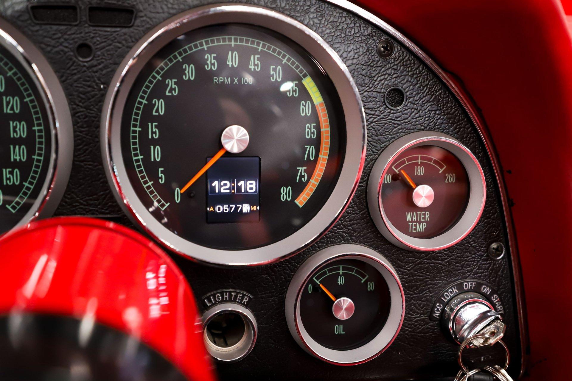 INTERIOR: You can't have enough red in a Corvette, and this interior absolutely delivers! It looks like new-if not better in some areas. It was lined with Dynamat sound deadener then fresh red carpet was installed front to back and some premium mats. The seats have been re-cushioned and upholstered in glove-soft leather, and the entire dash area has been beautifully restored.It's upgraded with RetroGauges that look stock at a glance but feature modern analog/digital functionality, along with a quartz clock. There's a Bluetooth stereo system, and the console is in excellent shape with a billet 5-speed shifter rising from it. It also features a tilt column and a Billet Specialties steering wheel. The door panels have been replaced, and it has new red seat belts. All the finishing details are in excellent condition, making this interior truly stand out.