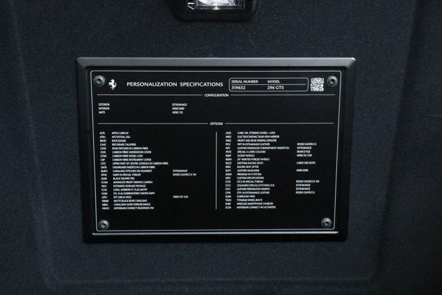 Ferrari 296 GTS Assetto Fiorano- FRONT END PPF -- FERRARI CERTIFIED PRE-OWNED - AVAILABLE EXTENDED FERRARI WARRANTY -- Bianco Fuji over Nero - One Owner - Very Low Miles - Pristine Condition - Many Fine Options - Sold as New by Our Dealership - Expertly Maintained by Our Factory Trained Technicians - Ferrari Factory Warranty to 5/7/28 - Complimentary Ferrari Genuine Maintenance Service to 5/7/32 -Factory Options:- Fiorano Package- Special 4-Layer Paint Color- Carbon Fiber Rear Diffuser- Carbon Fiber Wheel Caps- Carbon Fiber LED Steering Wheel- Carbon Fiber Instrument Cover- Carbon Fiber Dashboard Inserts- Carbon Fiber Upper Center Console- Carbon Fiber Daytona Racing Seats- 20-inch Painted Forged Wheels- Gloss Black Wheels- Titanium Wheel Bolts- Red Brake Calipers- Racing Seat Lifter- Leather Seat Inserts in Rosso Giudecca- Cavallino Stitched to Headrests in Rosso Giudecca- Special Stitching in in Rosso Giudecca- Leather Passenger Compartment Inserts in Rosso Giudecca- Leather Headliner in Nero- Premium HiFi Sound System- Wireless Smartphone Charger- Apple CarPlay- Advanced Frontlight System (AFS)- Advanced Front Driving Camera- Surround View- Rear Radar- Electrochromic Rearview Mirror- Front and Rear Parking Sensors- Rear Italian Flag Applique- Black Tailpipe Tips- Exterior Grille Pack in Nero- Matte Black Rear Cavallino- Cavallino Satin Ferrari BadgeIf you are in the market for a Ferrari 296 GTS, please call or email us today.This Ferrari has passed a multi-point inspection performed by our factory trained technicians, and has been enrolled in the Ferrari Approved Certified Pre-Owned Program. The Certified program makes available up to two years of additional Ferrari Power Approved Warranty coverage. Please see dealer for more details.
