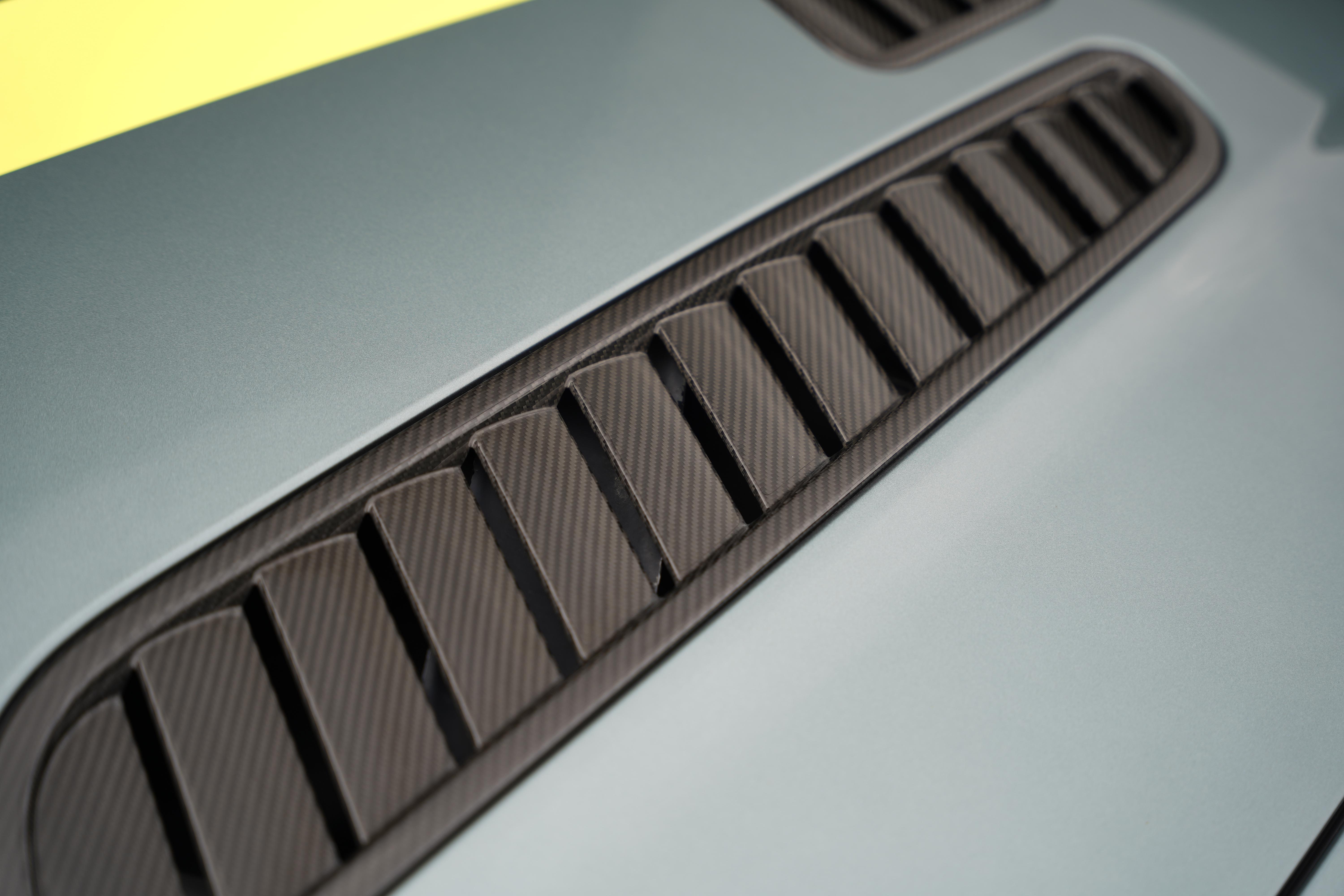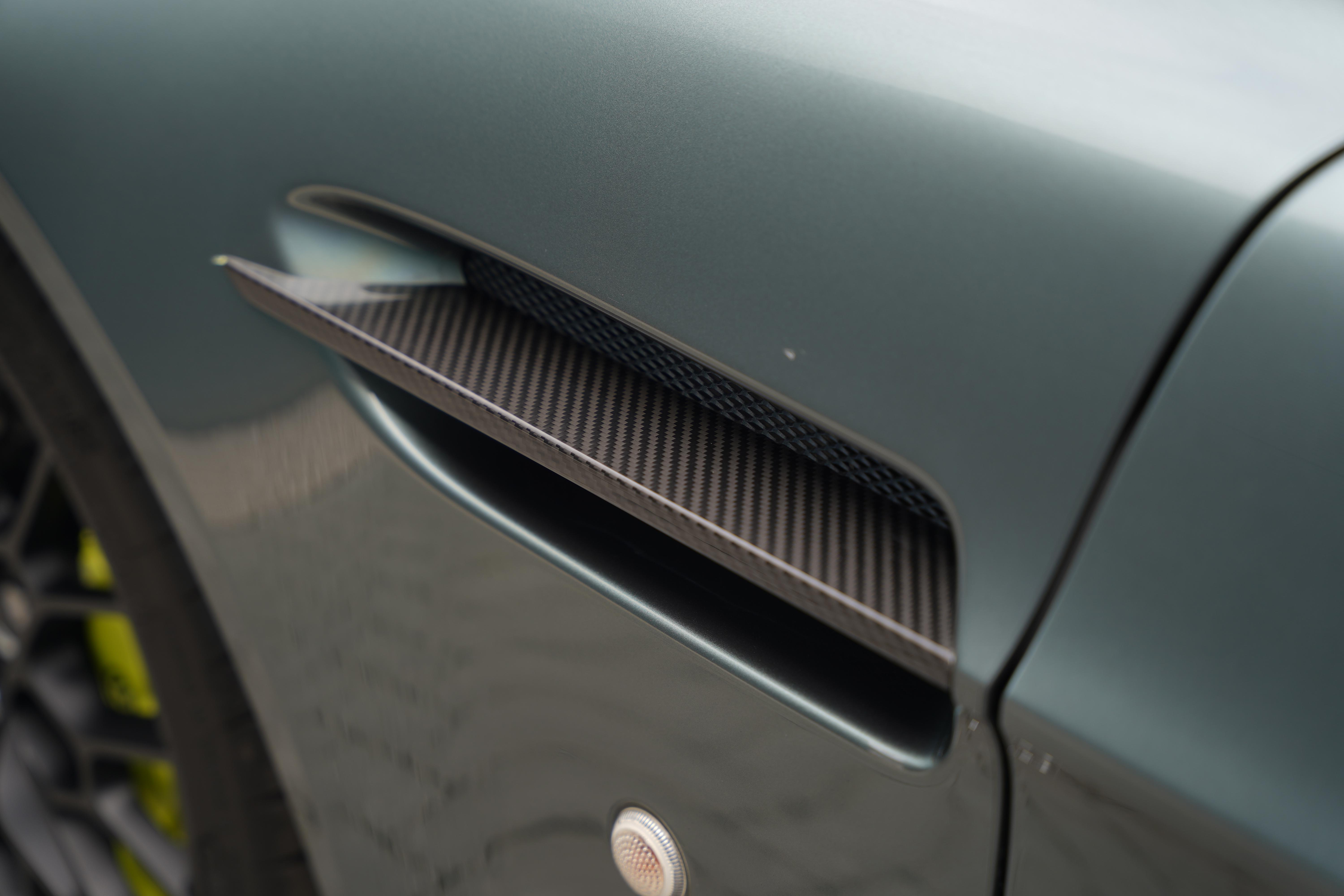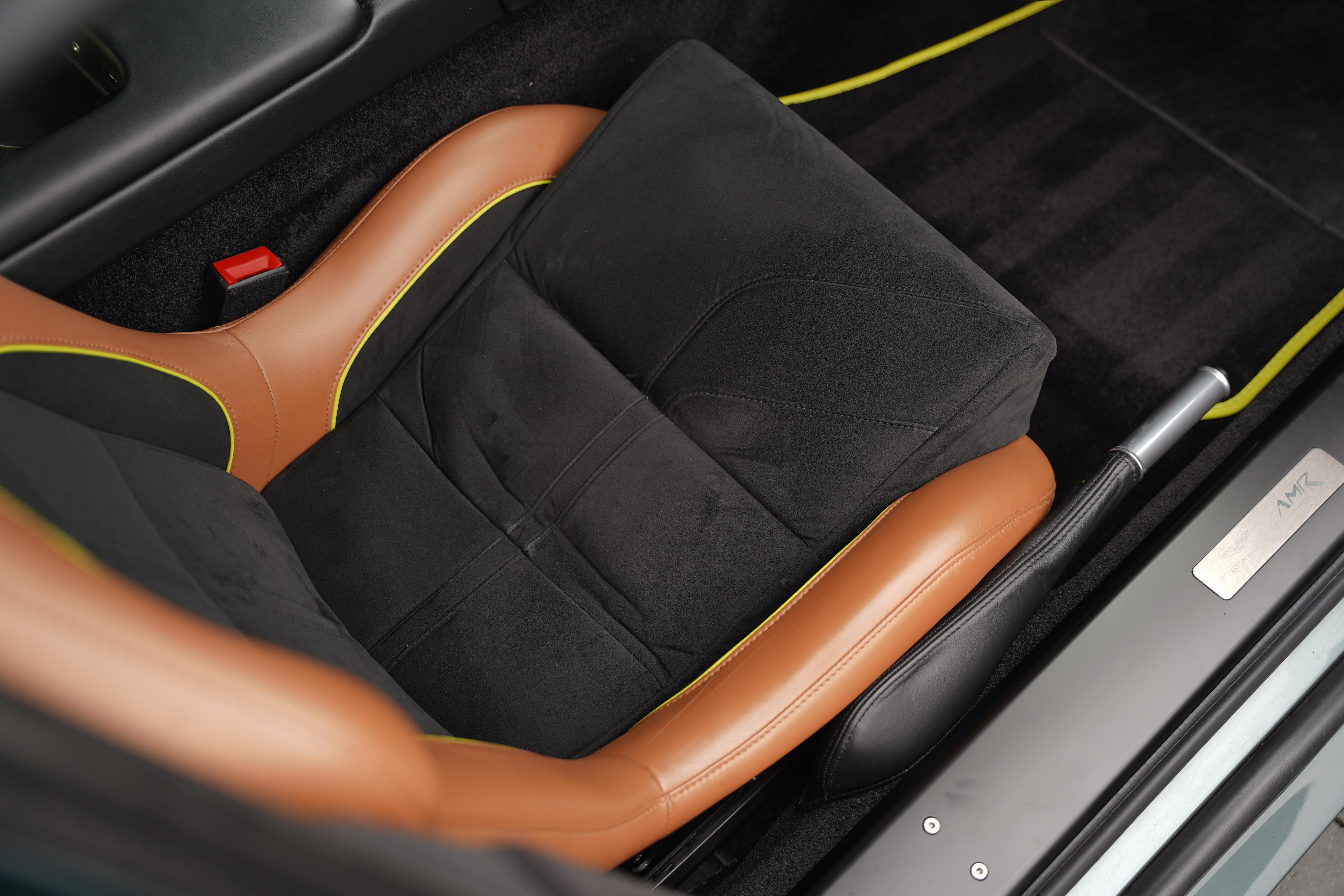 The V12 Vantage AMR’s aerodynamic design and motorsport-inspired details instantly set it apart. From aggressive front air intakes and carbon fibre accents to bespoke AMR livery and lightweight components, every element reflects its racing DNA.