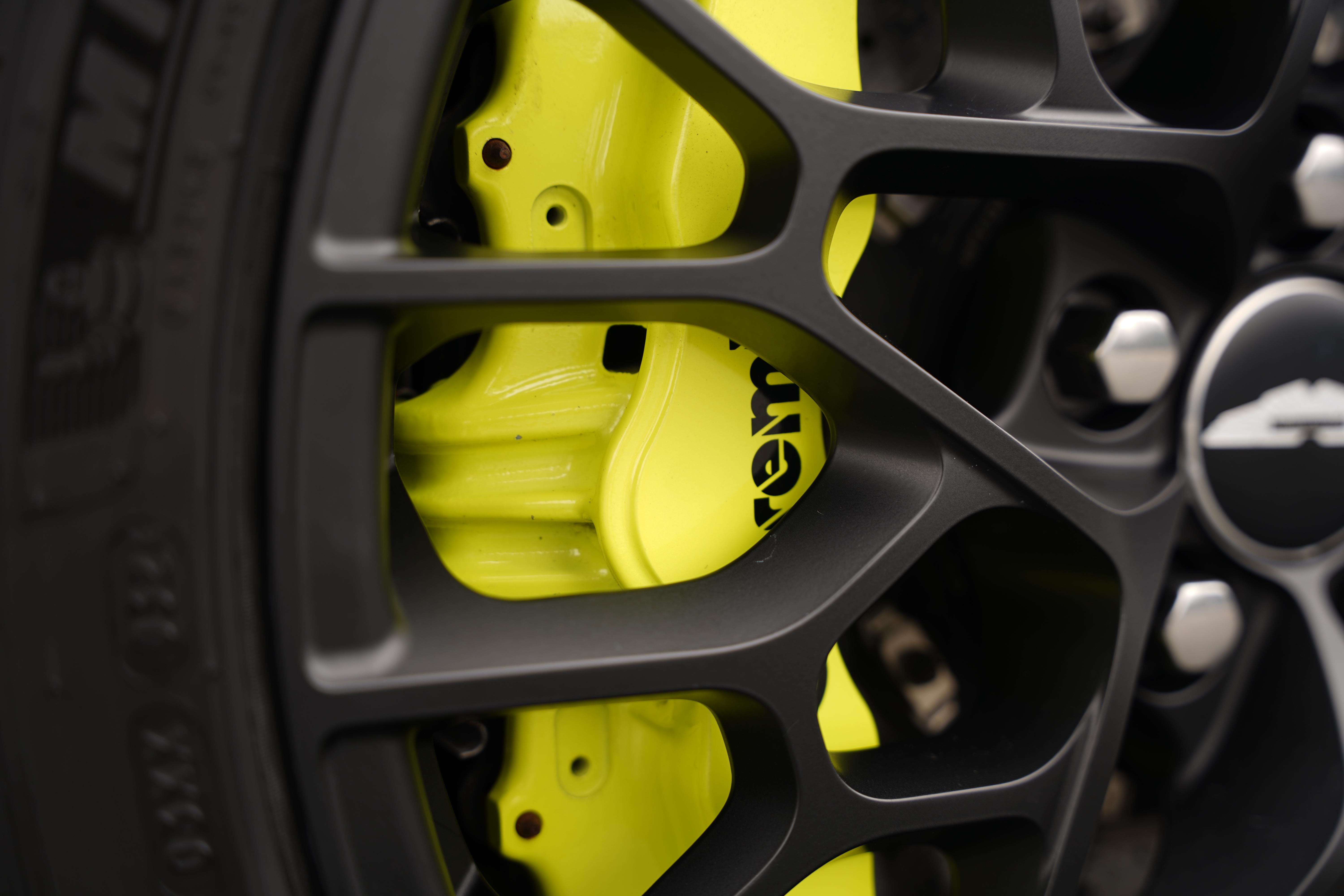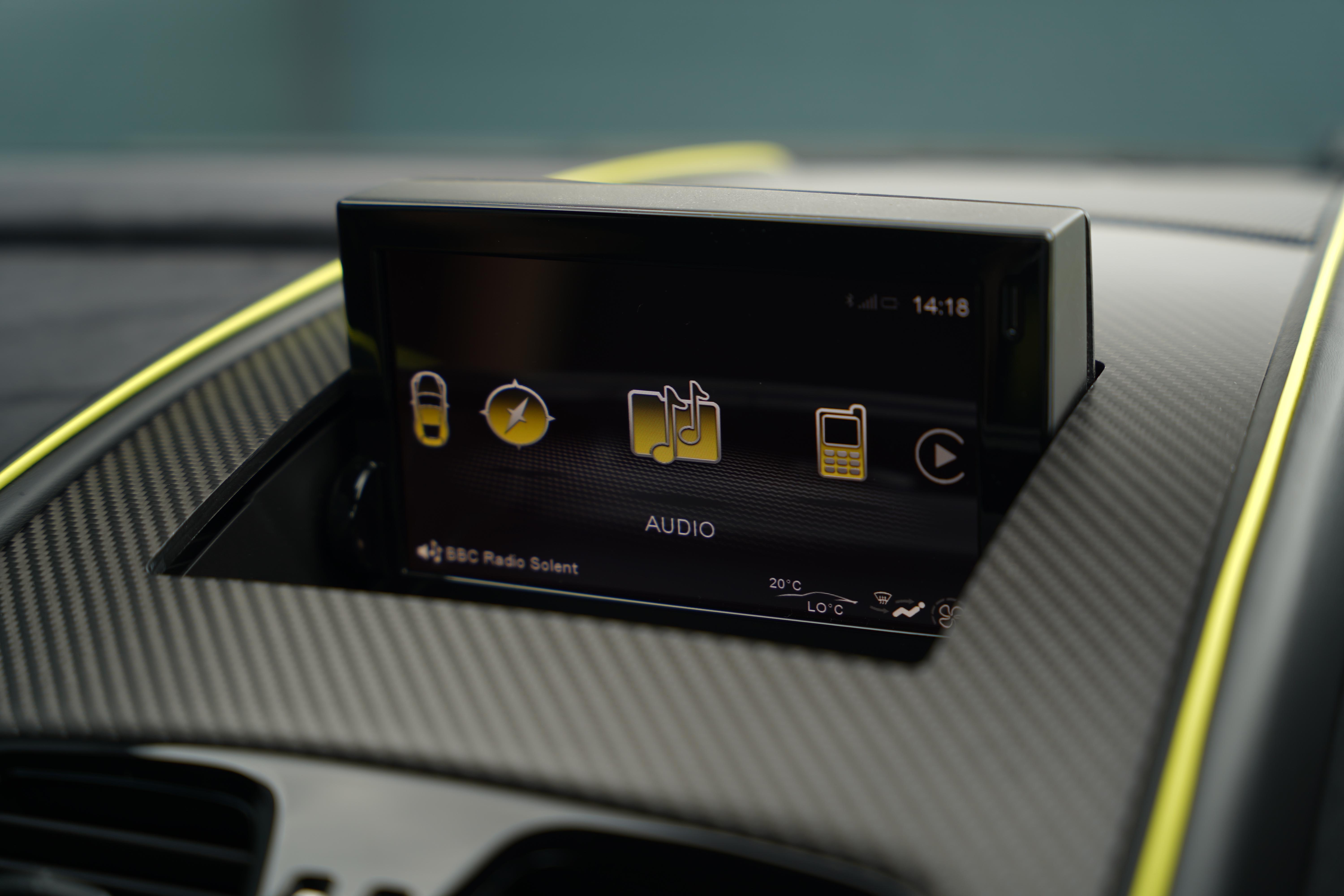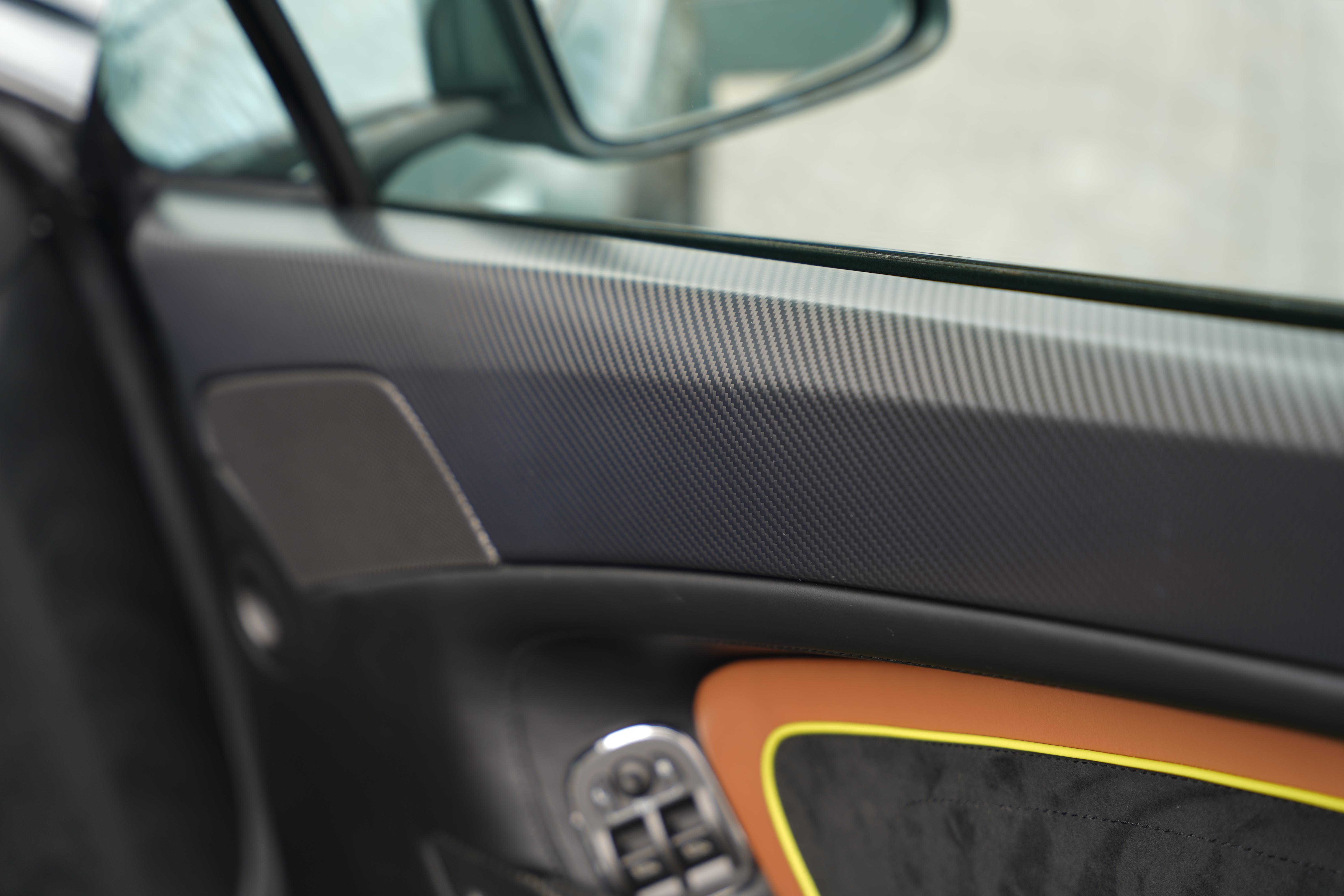The car we are proud to offer today, is finished in the fabulous Stirling Green with Lime Green accent and is adorned with carbon fibre touches all over. Carbon fibre elements include the front splitter and grille, bonnet vents, side strakes, tail light infills and rear diffuser. The intricate satin black AMR wheels are home to the large carbon ceramic brakes and brake calipers, also finished in Lime Green.