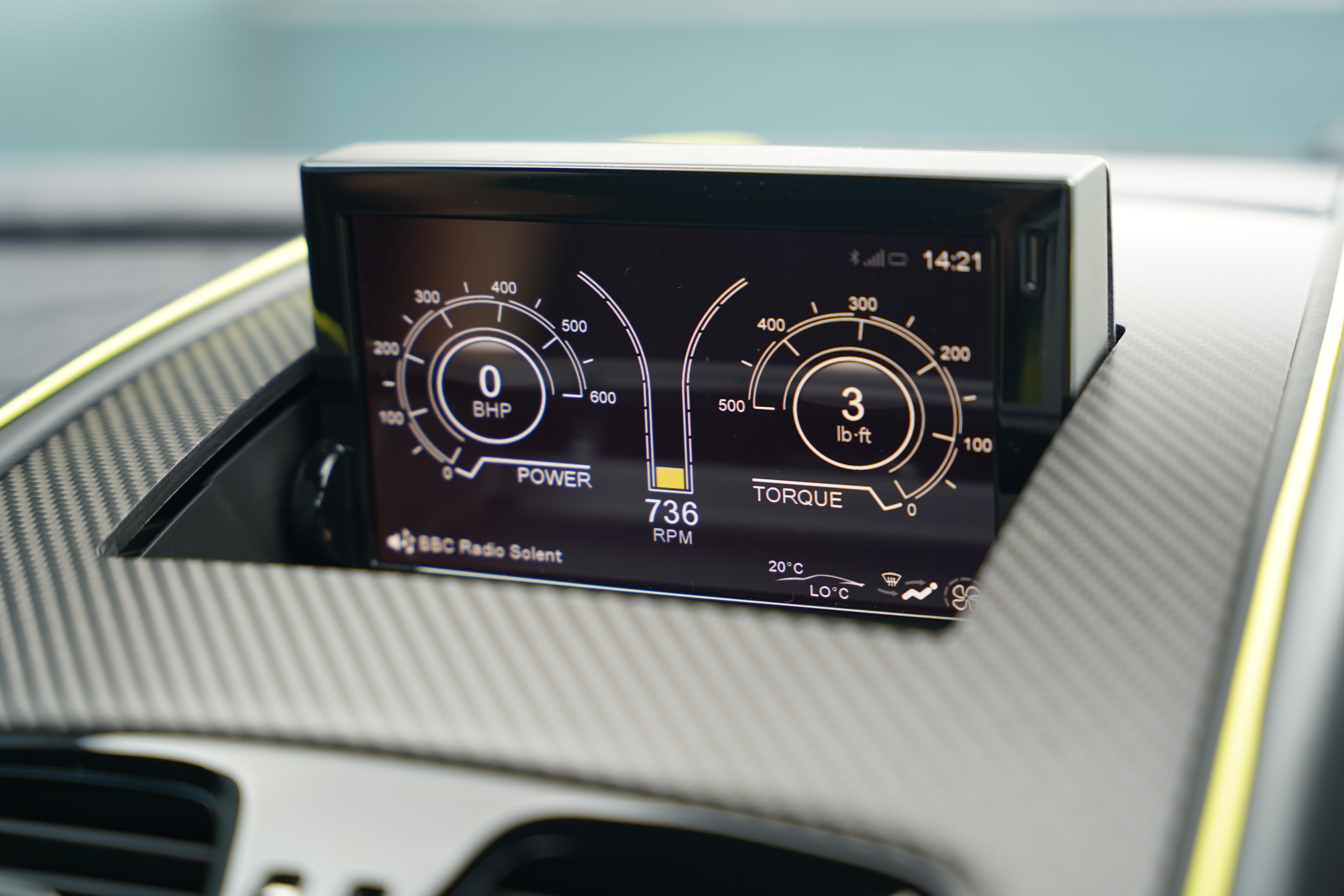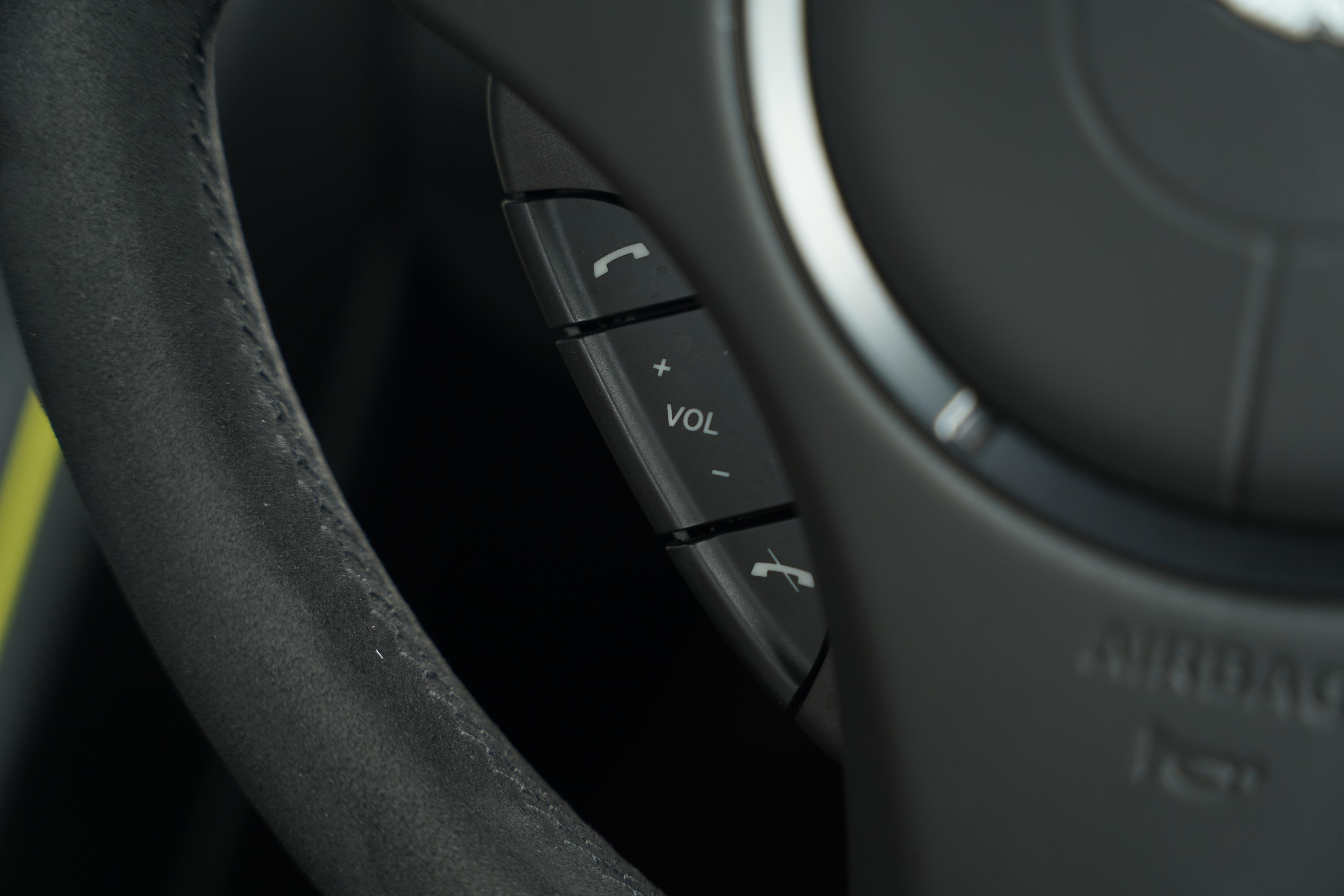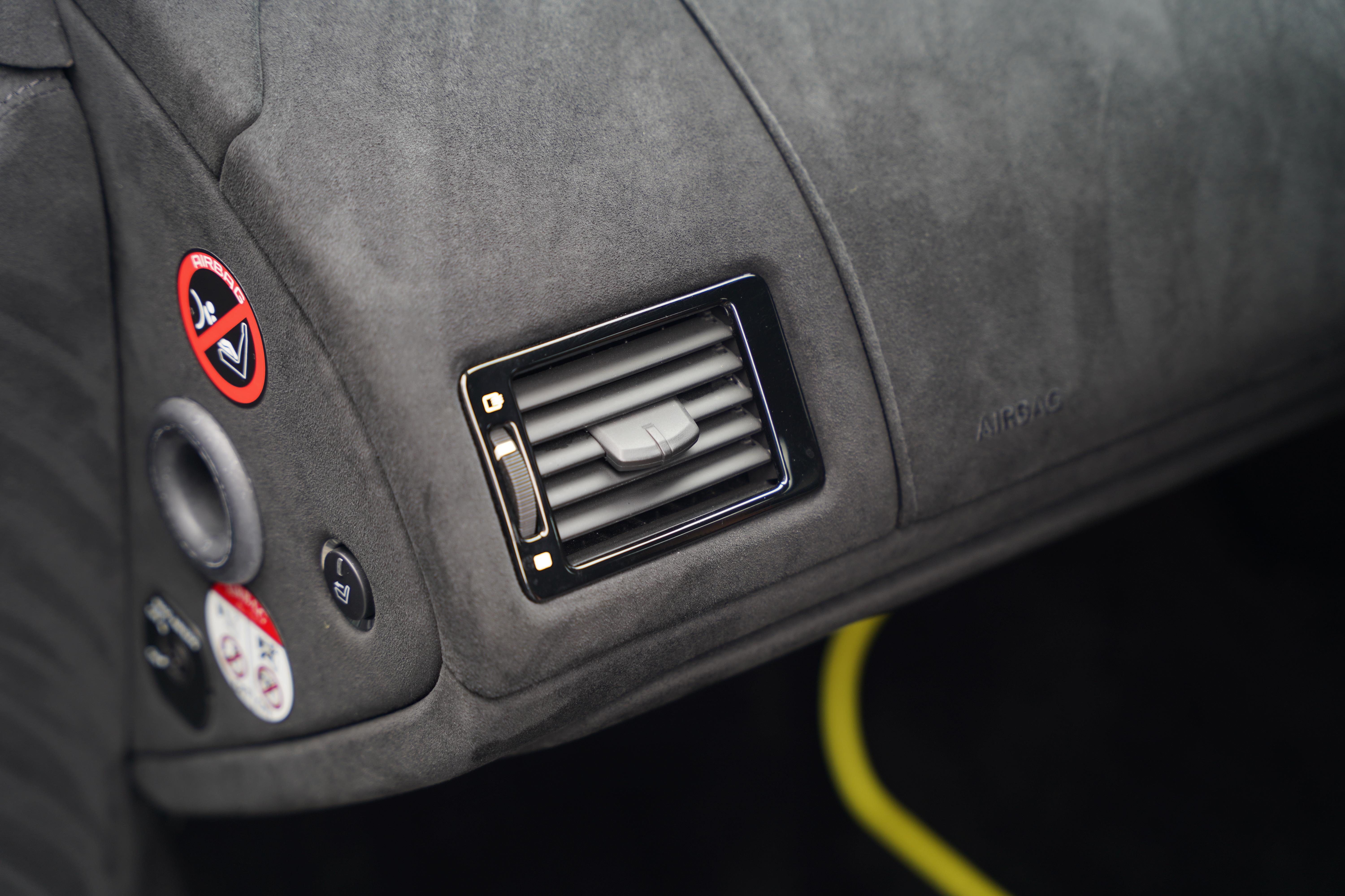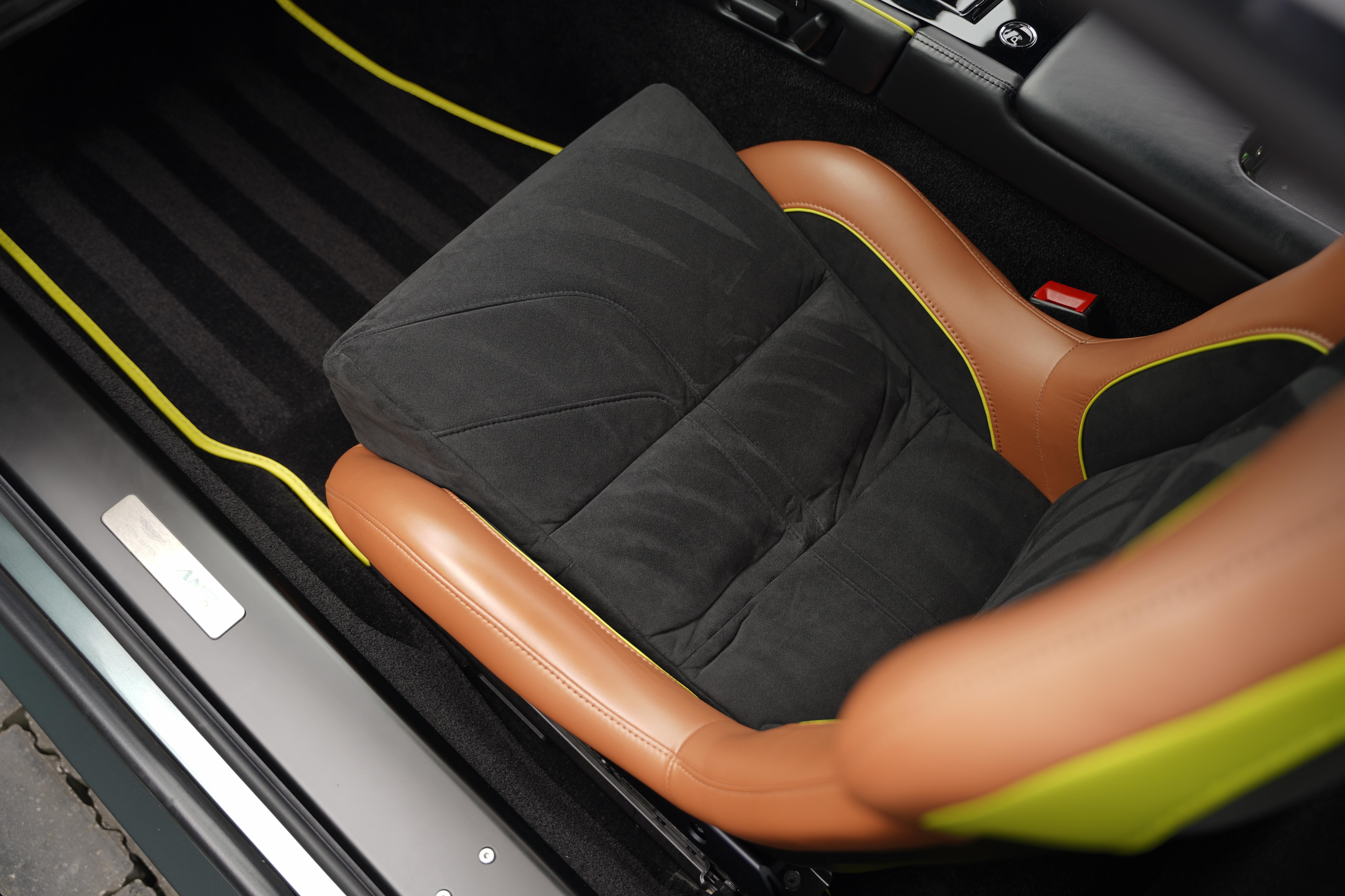 The car we are proud to offer today, is finished in the fabulous Stirling Green with Lime Green accent and is adorned with carbon fibre touches all over. Carbon fibre elements include the front splitter and grille, bonnet vents, side strakes, tail light infills and rear diffuser. The intricate satin black AMR wheels are home to the large carbon ceramic brakes and brake calipers, also finished in Lime Green.