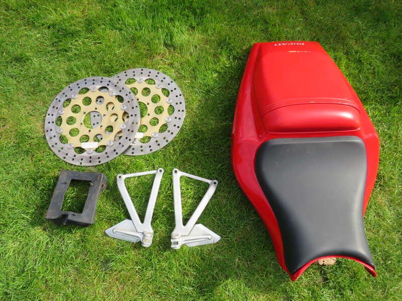 - Complete with pillion seat panel, rear foot pegs and spare brake discs