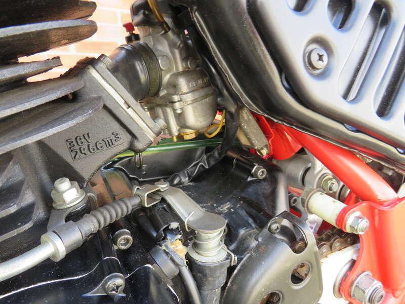 - 246cc two-stroke, 7-port, single producing 16bhp. Torque induction and autolube