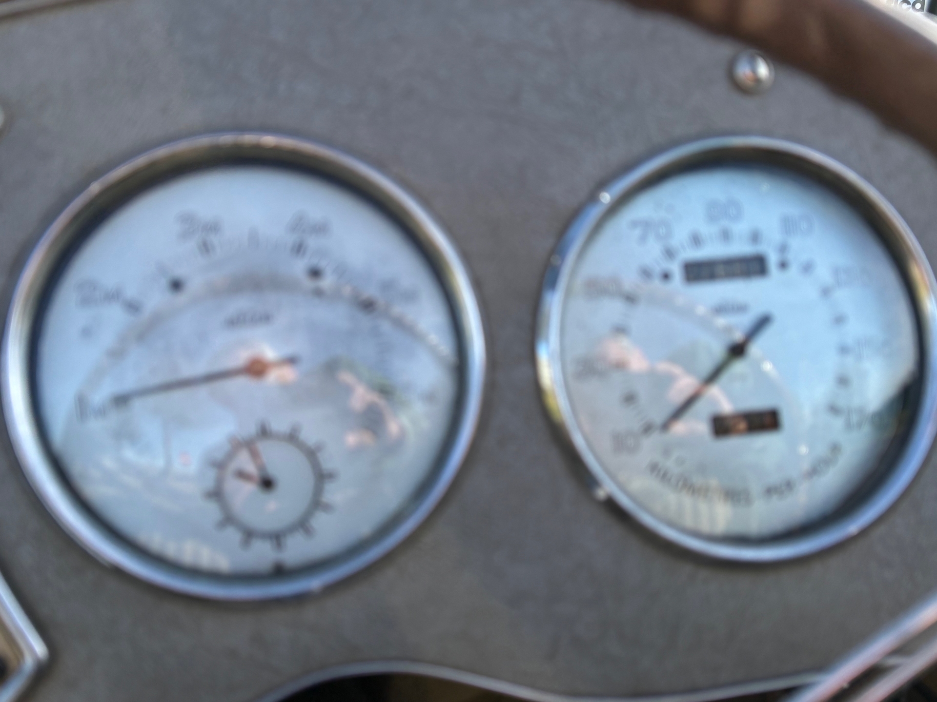 There is no fuel gauge on the dashboard; instead, there is a wooden strip with which we can measure the tank capacity. Simple and functional, just as classics should be. The bodywork is beautifully painted and all rubber seals are in good condition.