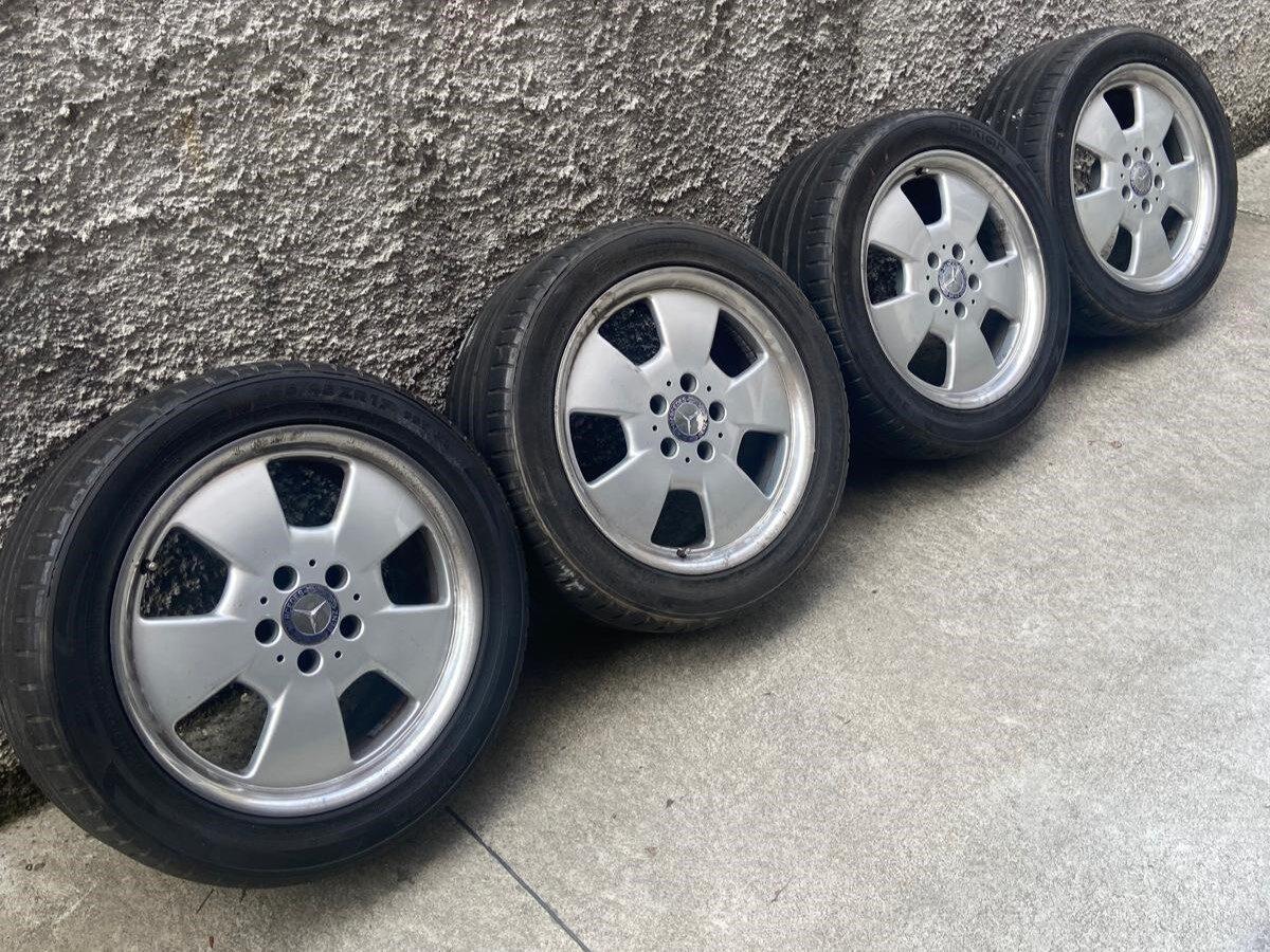 Currently equipped with aftermarket alloy wheels, though the original rims with winter tires are also included.