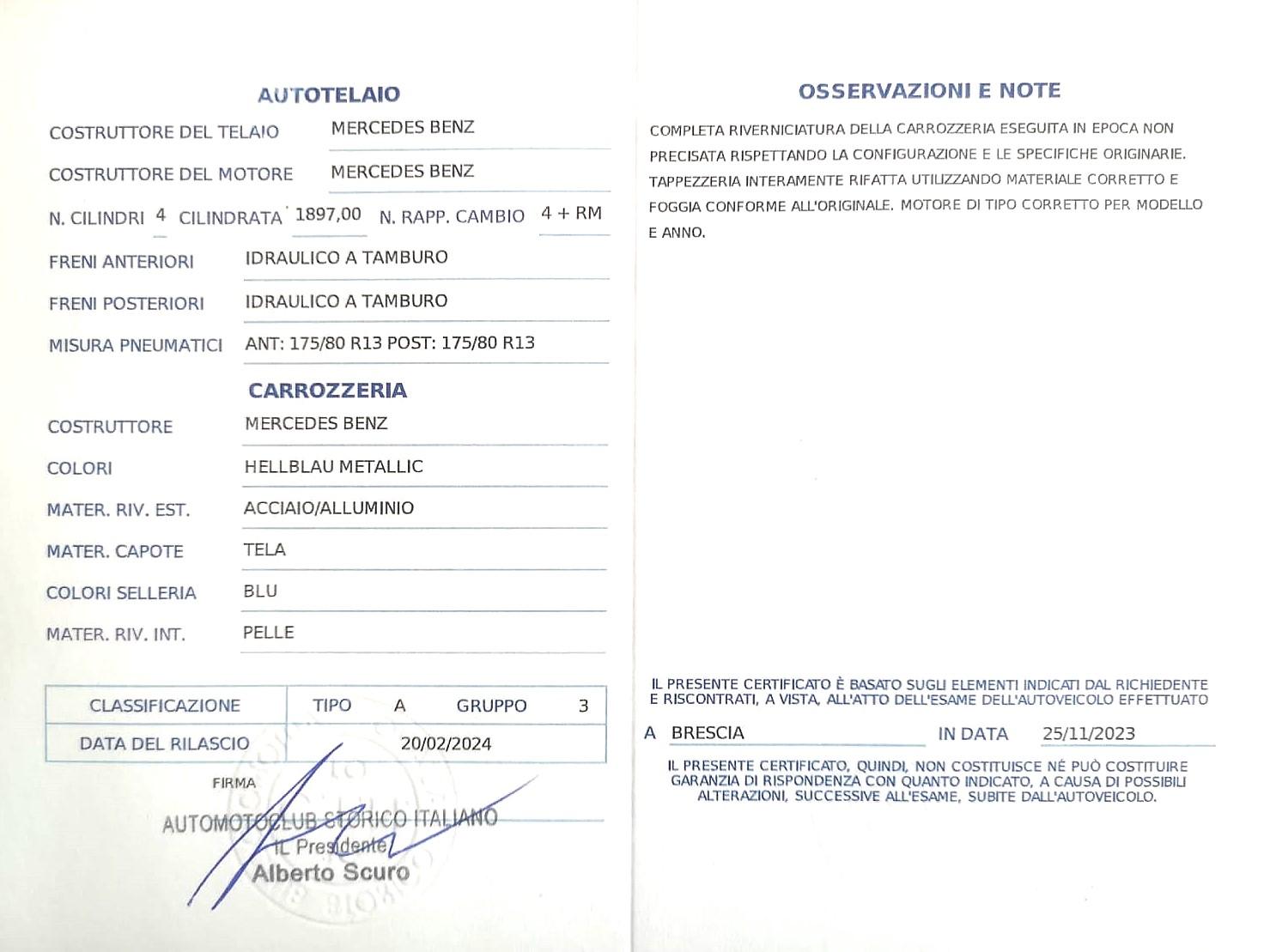 In 2015, it was acquired by the current owner, who began a complete restoration between 2016 and 2022. The works, carried out by companies specialized in the restoration of vintage Mercedes-Benz models, were carried out with the utmost respect for the original configuration, restoring the car to its authentic splendor.