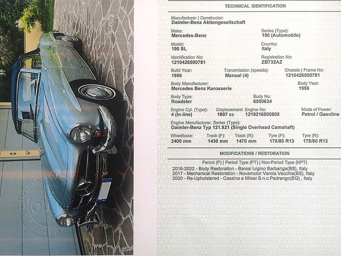 From the official factory documents, it can be seen that this car was produced at the beginning of 1956 and shipped on 27 February of the same year to the official Mercedes-Benz distributor in Los Angeles, USA. It has spent its entire life in the United States, with Oregon as its last state of registration before importation to Italy in 2013.