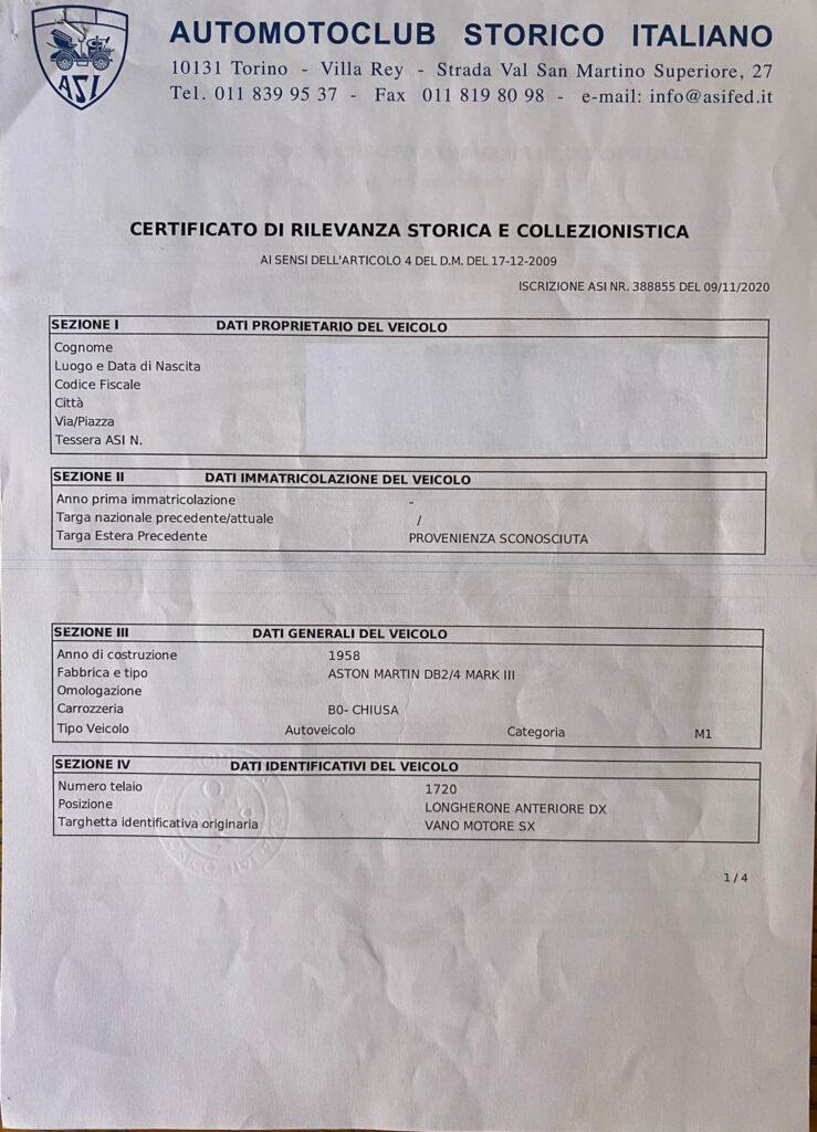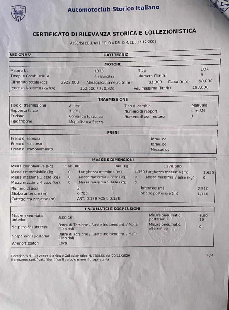 Certified by the ASI on 9 November 2020 and registered in Italy on 10 March 2021, the car has covered only 420 miles since completion.