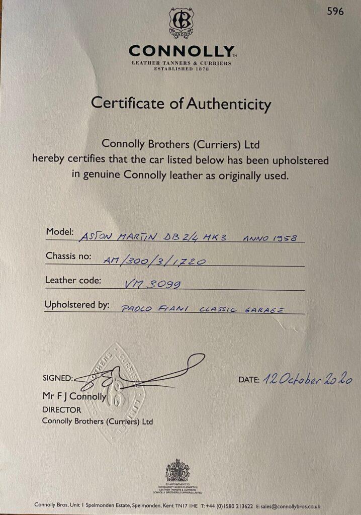 The interior was reupholstered in original Connolly leather (VM3099), supplied directly by Connolly and accompanied by a certificate of authenticity.