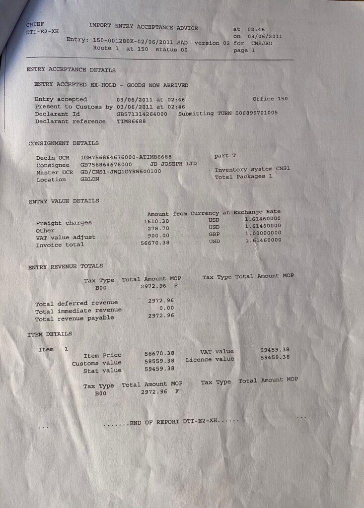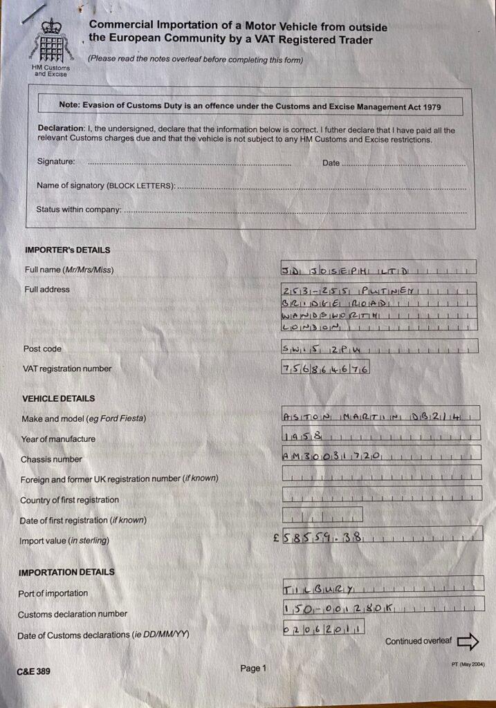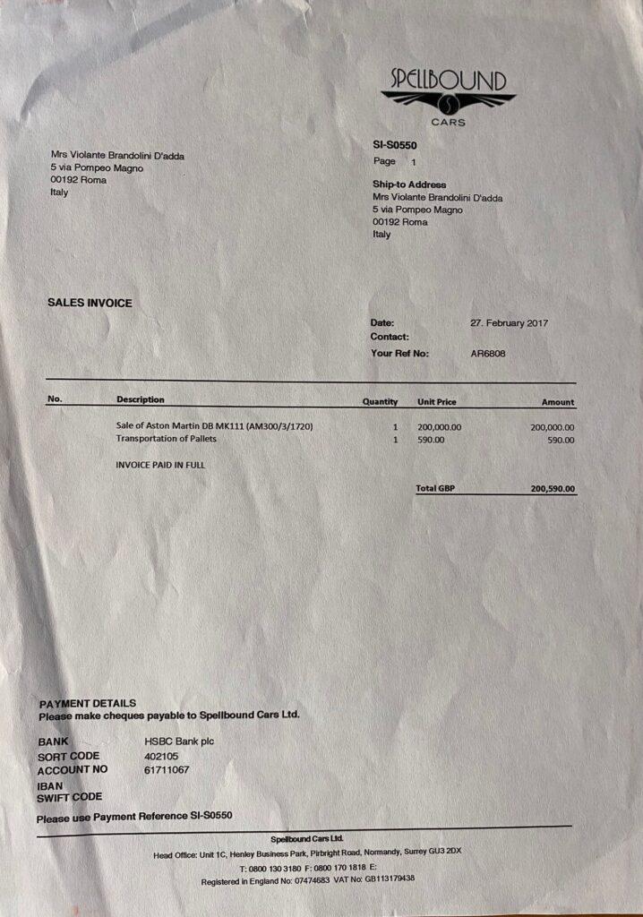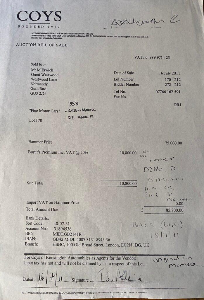 Imported into the UK in June 2011, it was offered at the Coys Blenheim Palace Auction and sold for £85,000 to Michael Ramon Erwich, owner of Spellbound Cars, an Aston Martin specialist in Great Westwood.