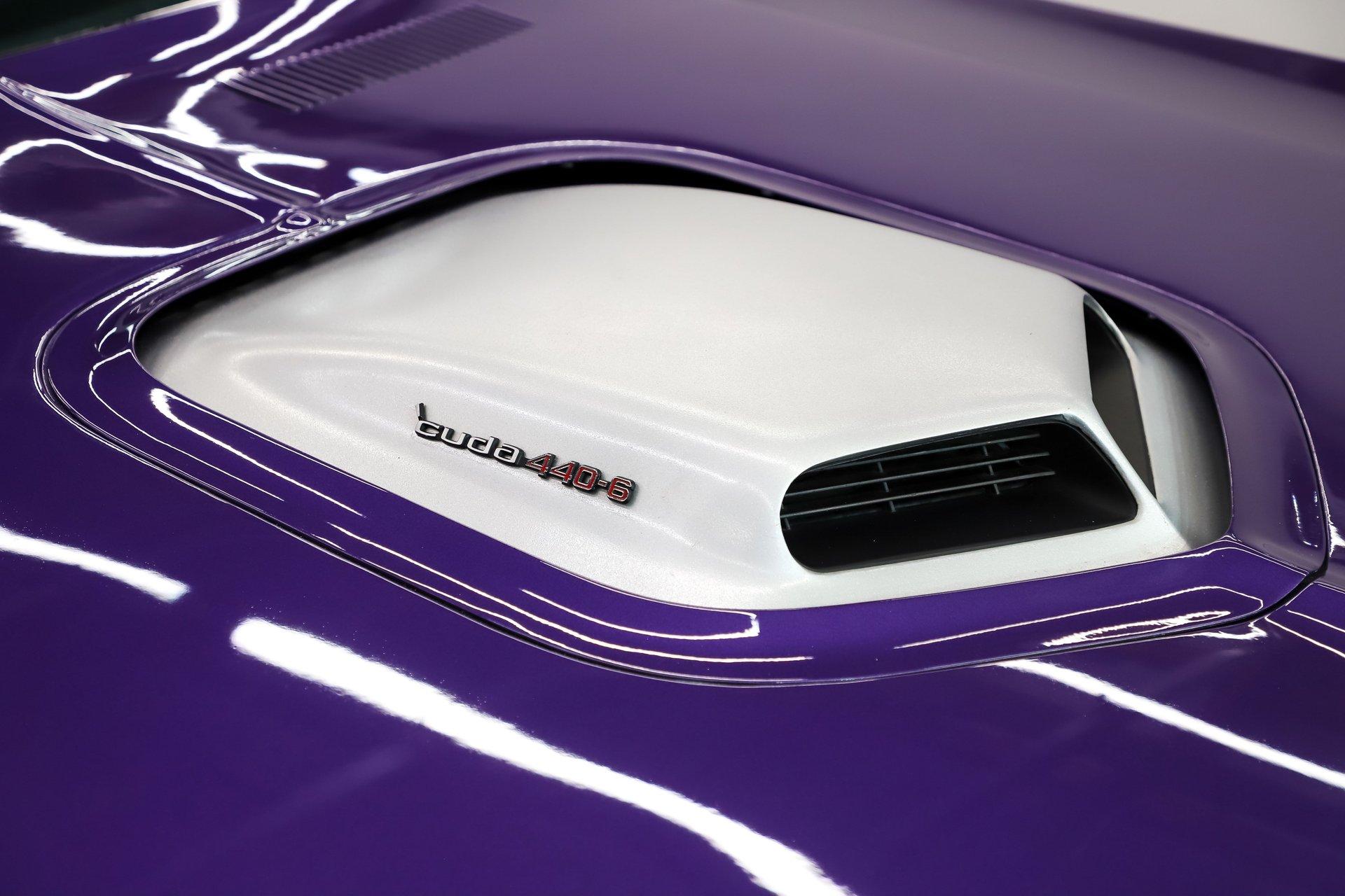 INTRODUCTION: This is the one! Rotisserie restored, numbers matching V-code 440 Six Barrel, pistol grip 4-speed, and Super Track Pak Dana 4.10, finished in factory High Impact FC7 In Violet! Only 902 built 6 pack, 4-speed coupes were made and this one is formerly from the prestigious Ted Lindsten Mopar collection.