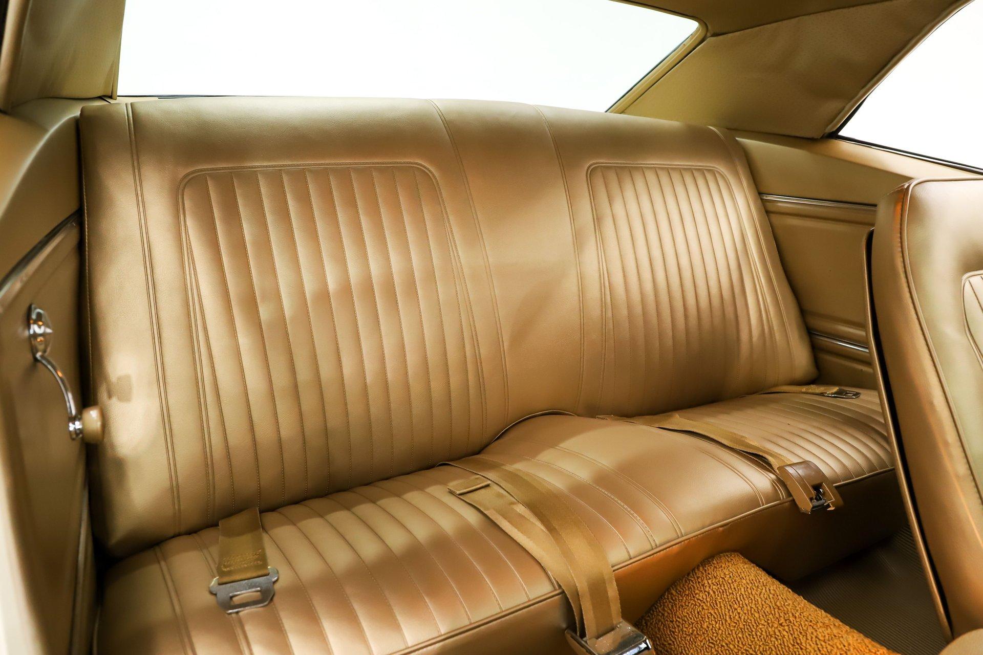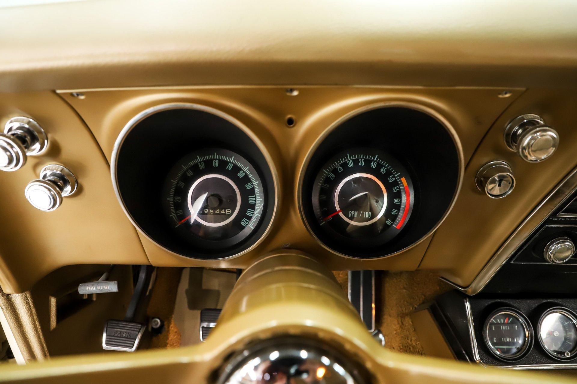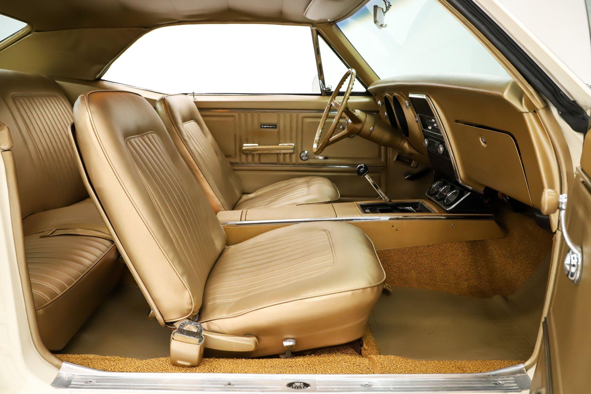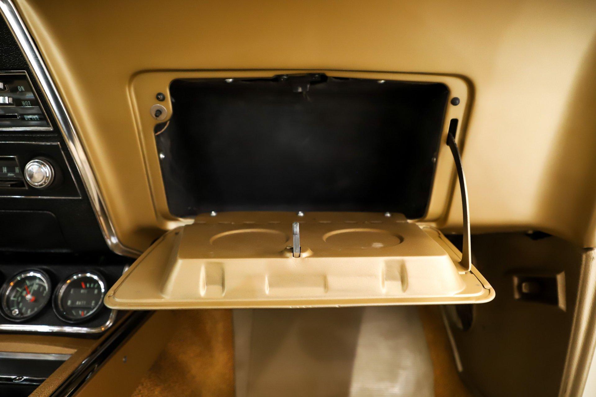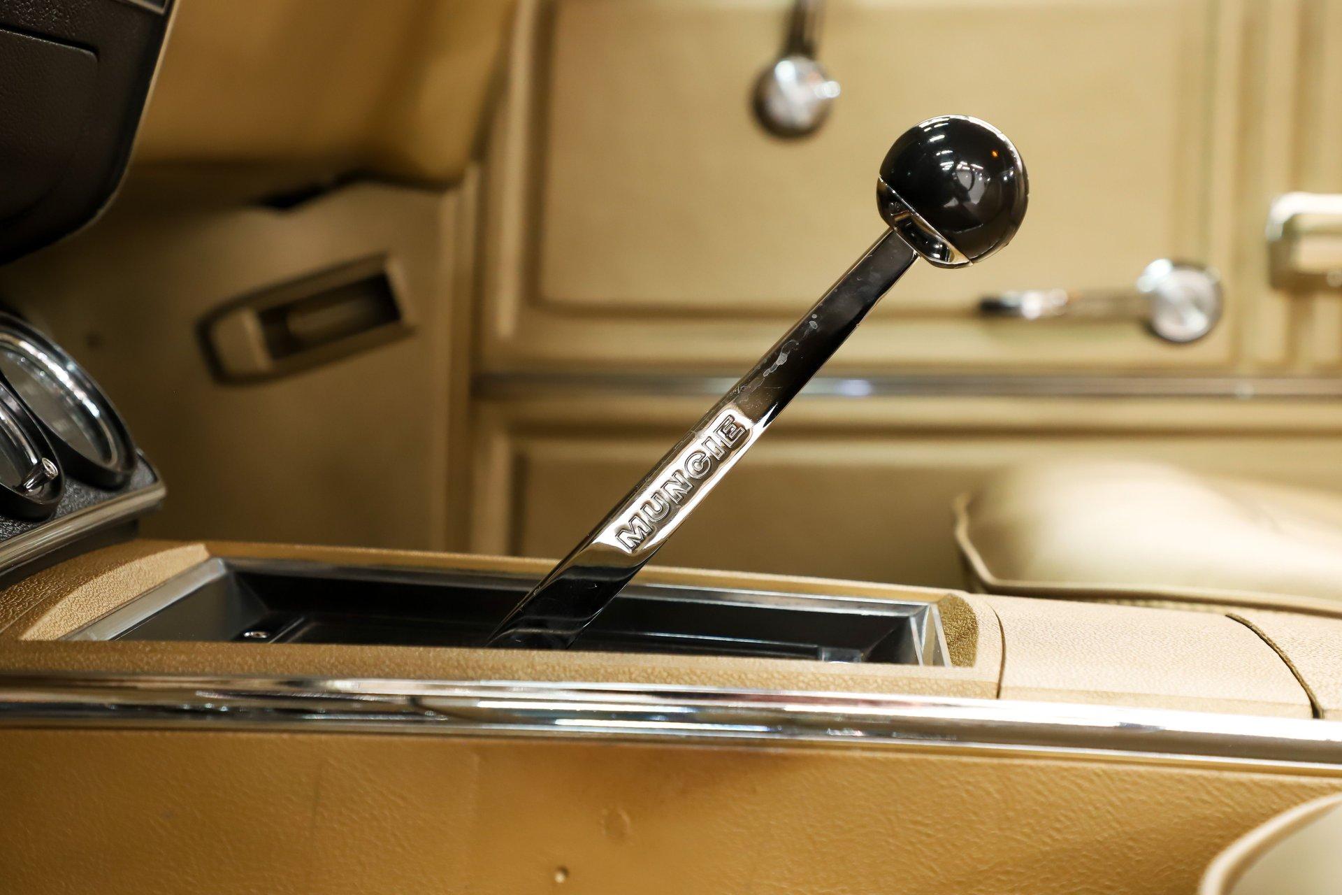 INTERIOR: It is excellent from carpet to headliner! Seats are reupholstered, door panels and armrests were replaced. Headliner looks new. Very clean dash area. It has the optional factory tachometer in the dash and gauge cluster down on the console. It even has the original Muncie shifter. Complete set of seat belts.