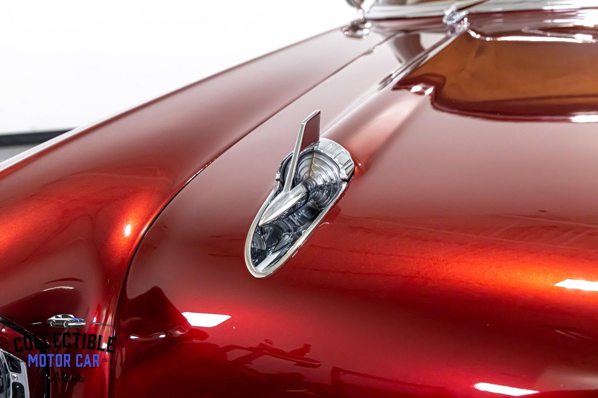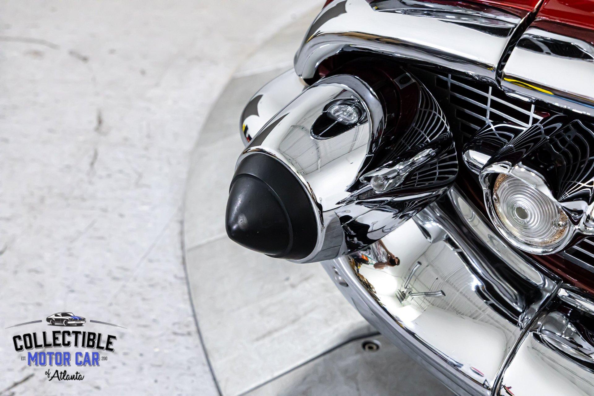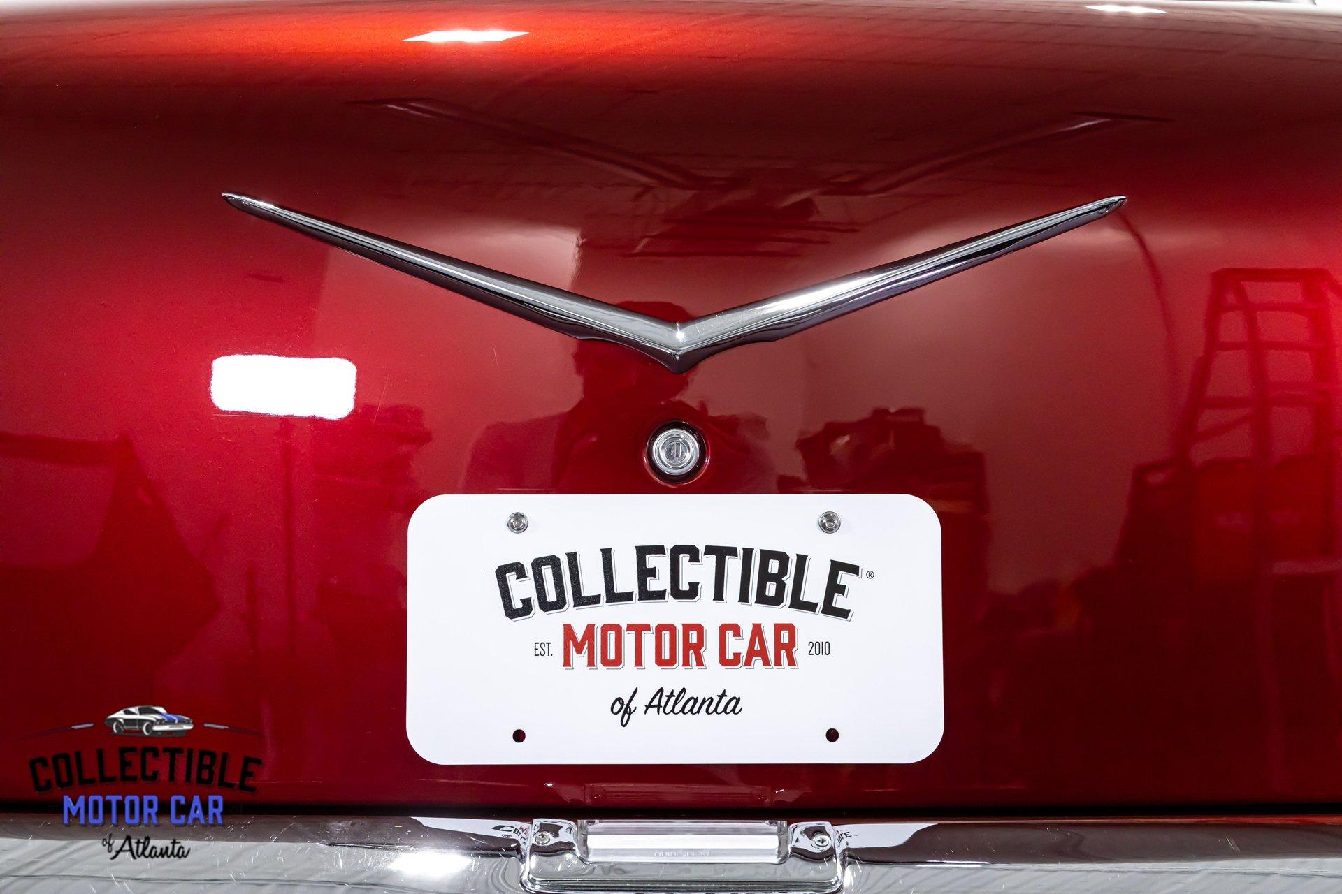 The first thing you notice is the color. This Bel Air wears a rich candy red finish that highlights every crease and contour of the legendary '57 body. The chrome and stainless trim contrast beautifully against the paint, and the classic side spears help preserve the unmistakable Bel Air identity. The car has a crisp, aggressive look without losing the elegance that made these cars icons in the first place. From the hood rockets to the sculpted rear quarters and signature tailfins, this Chevy delivers presence from every angle.