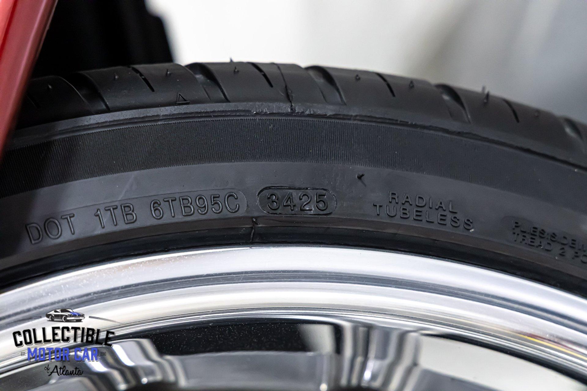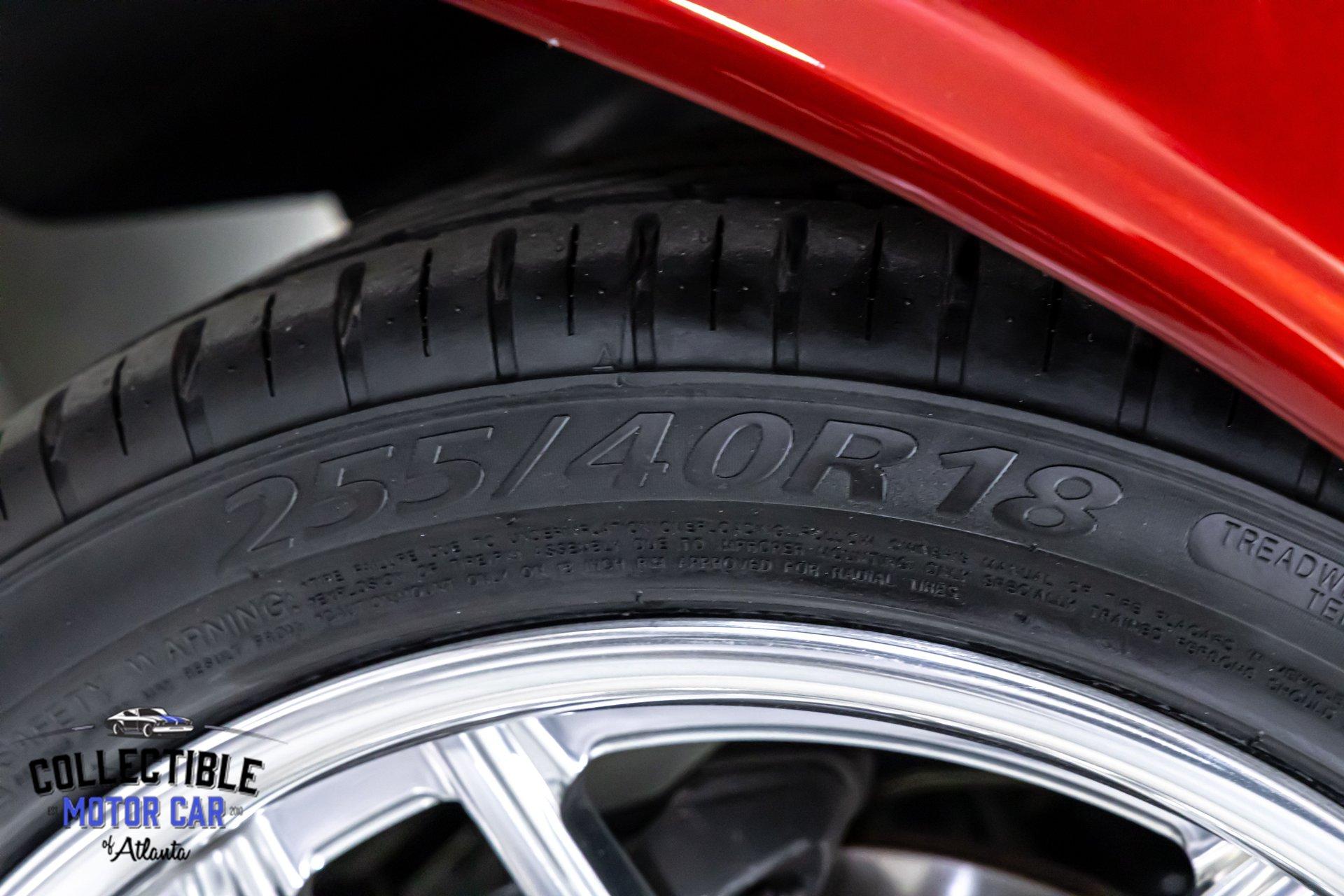 The stance is one of this car's strongest features. It sits low and purposeful with a modern wheel and tire package that fills the wheel openings perfectly. The polished multi-spoke wheels bring the look into the modern era while still working with the car's classic lines. Up front, the tires are marked 255/40R18, and the overall package gives the car a planted, muscular posture that immediately tells you this is more than just a stock cruiser.