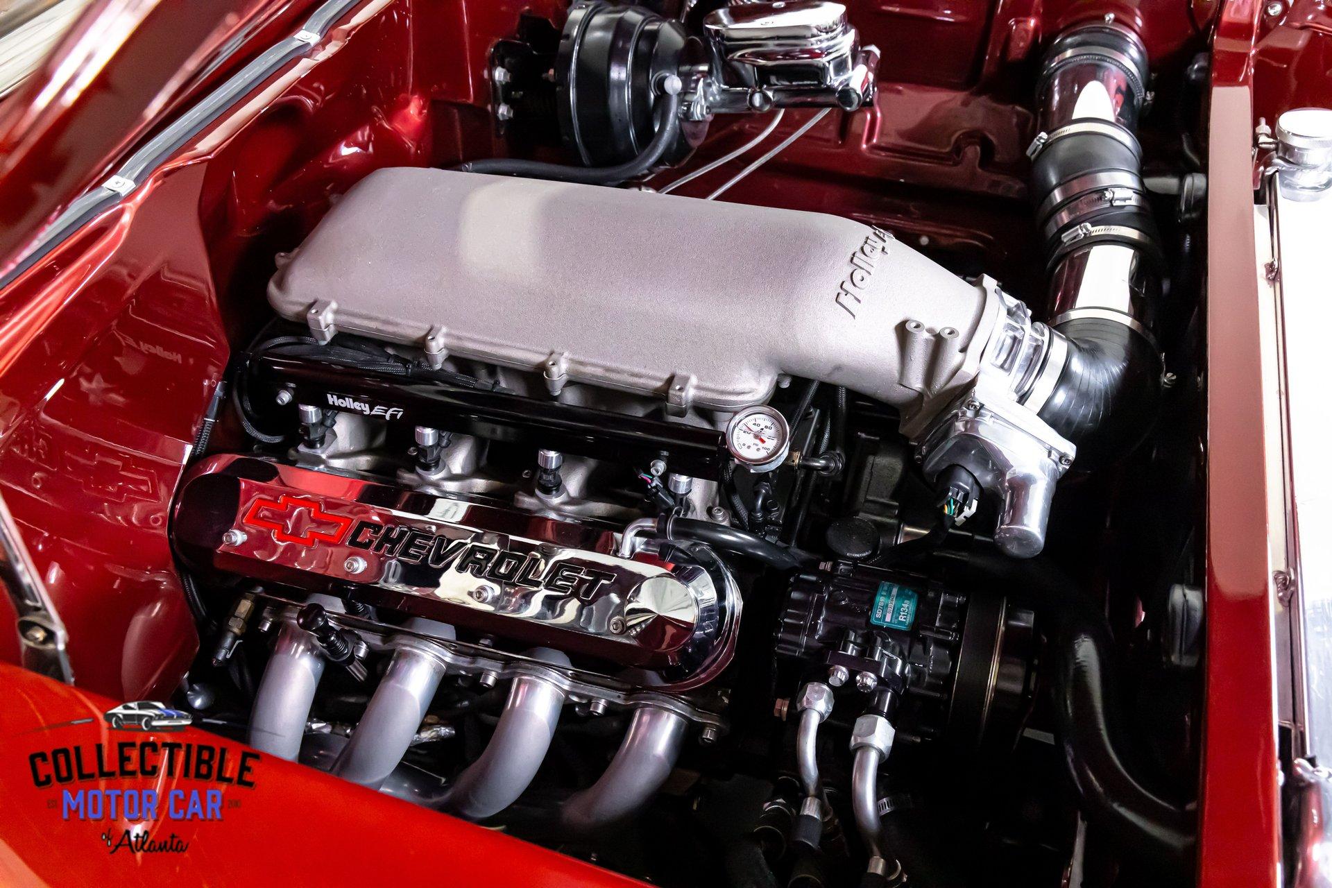 Under the hood is a 6.0L LS V8 backed by a 4L60E automatic transmission, giving this Bel Air the kind of easy-starting, reliable, modern powertrain that makes it far more enjoyable than a stock-era setup. The engine bay is clean, detailed, and thoughtfully finished, featuring a Holley intake, polished cold-air tubing, upgraded accessory drive, and a neat overall presentation that matches the quality of the rest of the build.