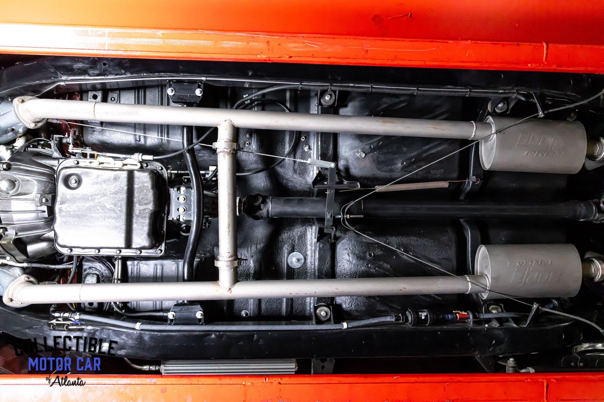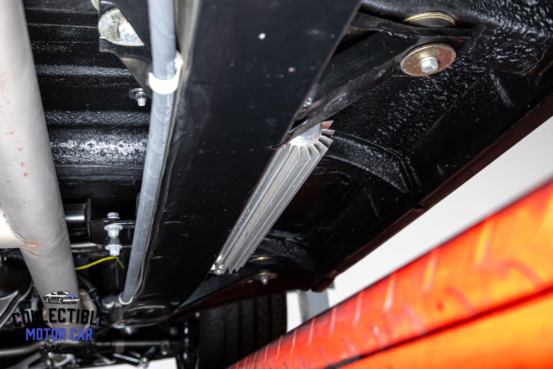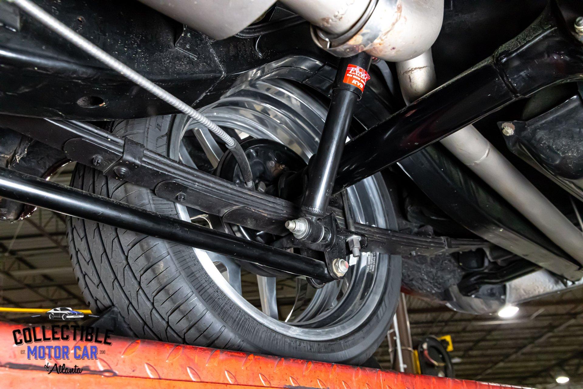 This Bel Air has been upgraded where it counts. Up front are tubular upper and lower A-arms with coilovers, a major improvement over original suspension geometry and ride control. Out back, it features lowering leaf springs, traction bars, and KYB shocks, giving the car a more planted stance and better control under acceleration. The undercarriage photos also show 4-wheel disc brakes, helping bring modern stopping confidence to go with the modern drivetrain. Altogether, it is a smart setup that improves handling, braking, and overall road feel without taking away from the character of the car.