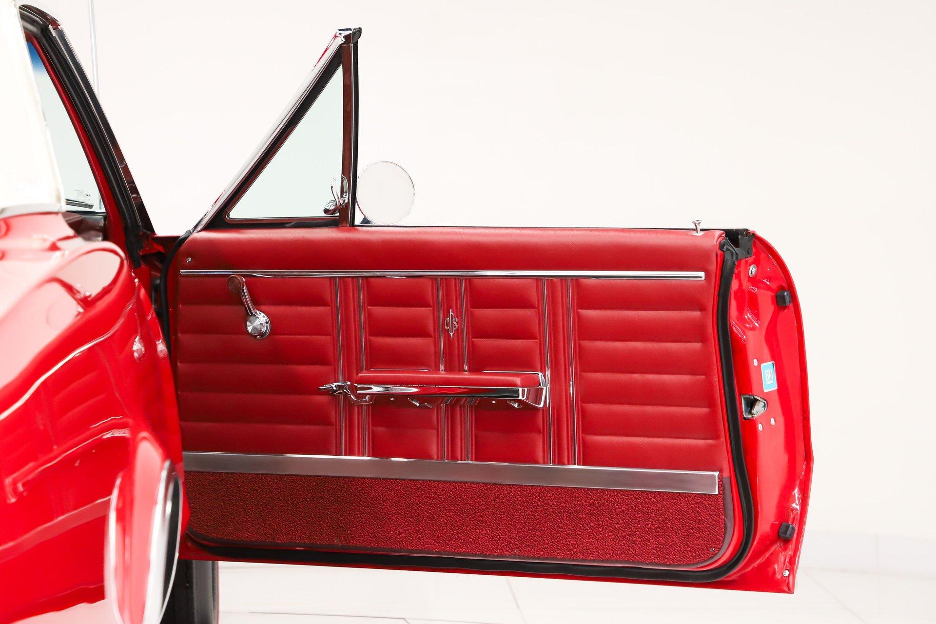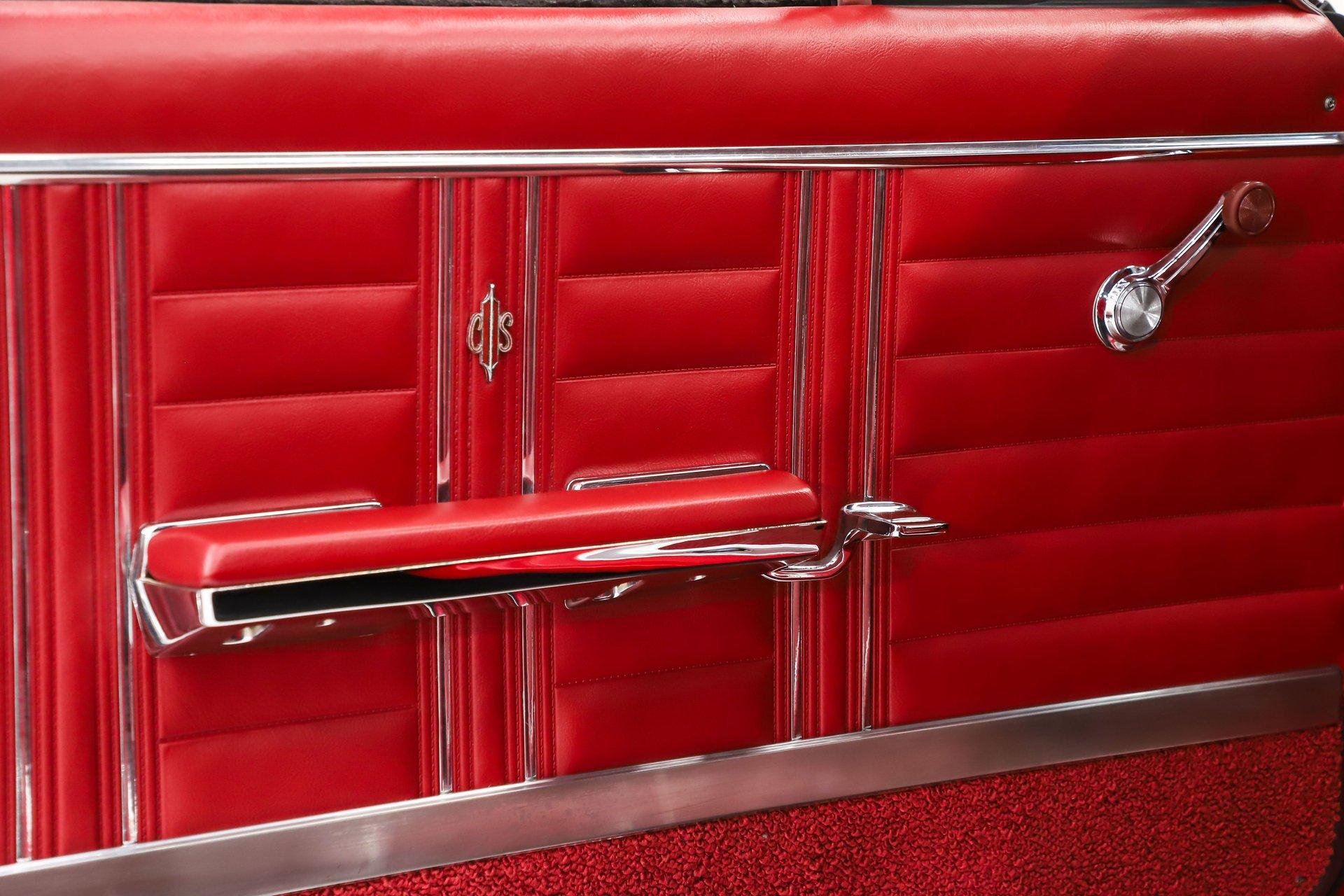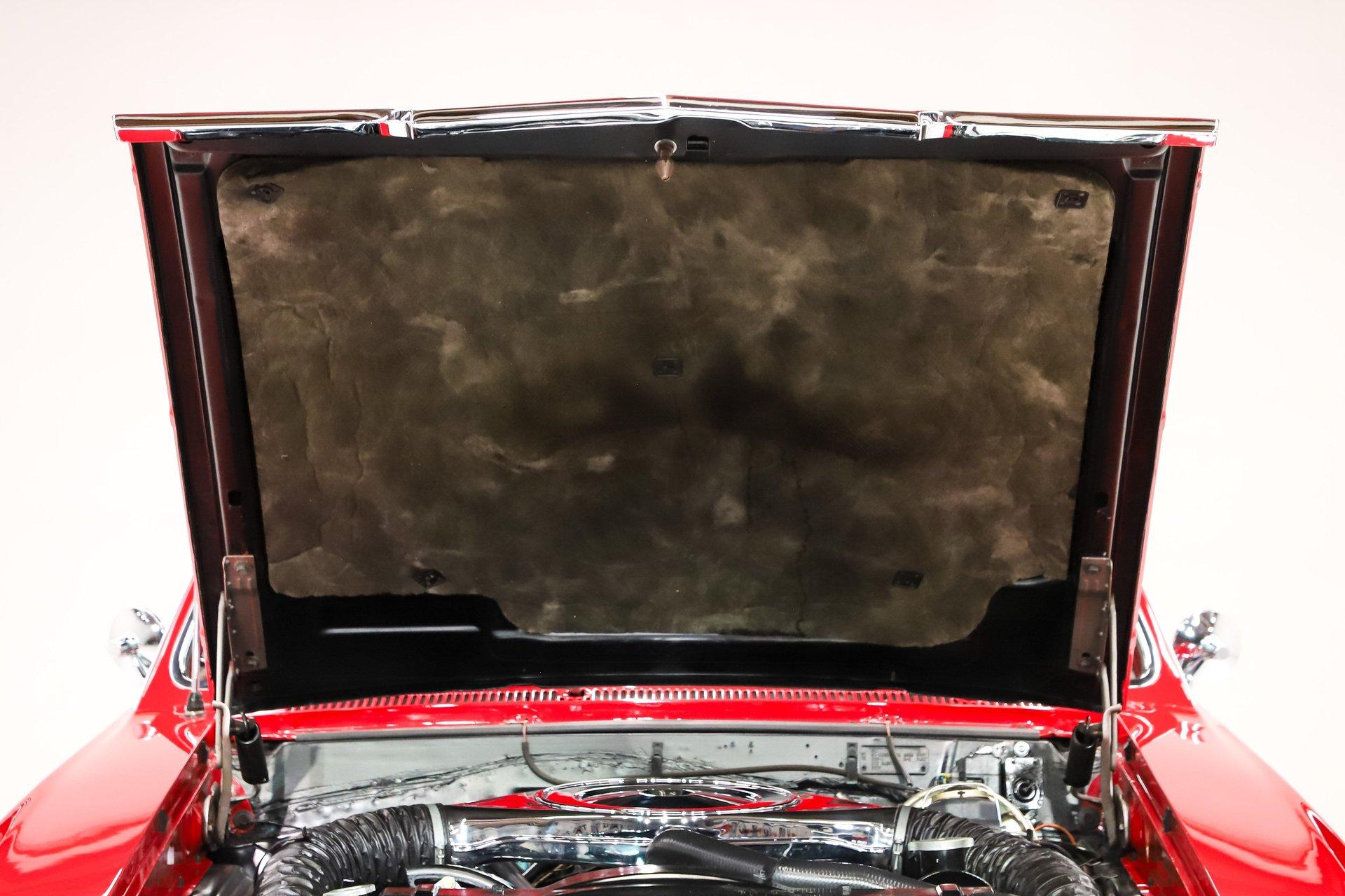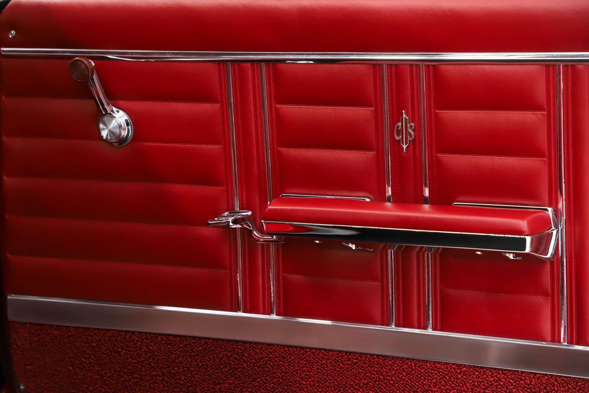 TRUNK COMPARTMENT: The trunk is fully restored and very complete. Under the lid is a glossy red finish with reproduction decals and a working trunk light. The jamb is clean with a new weatherstrip. Inside is solid metal, neatly finished with correct spatter paint and tidy wiring throughout. The restorer did not cut corners- this car is equipped with a fifth matching SS1 chrome wheel wrapped in a reproduction redline tire, a detail that really sets it apart. It's also complete with the jack, lug wrench, and correct trunk mat. The battery has been properly relocated to the trunk, just as the W30 was factory equipped.