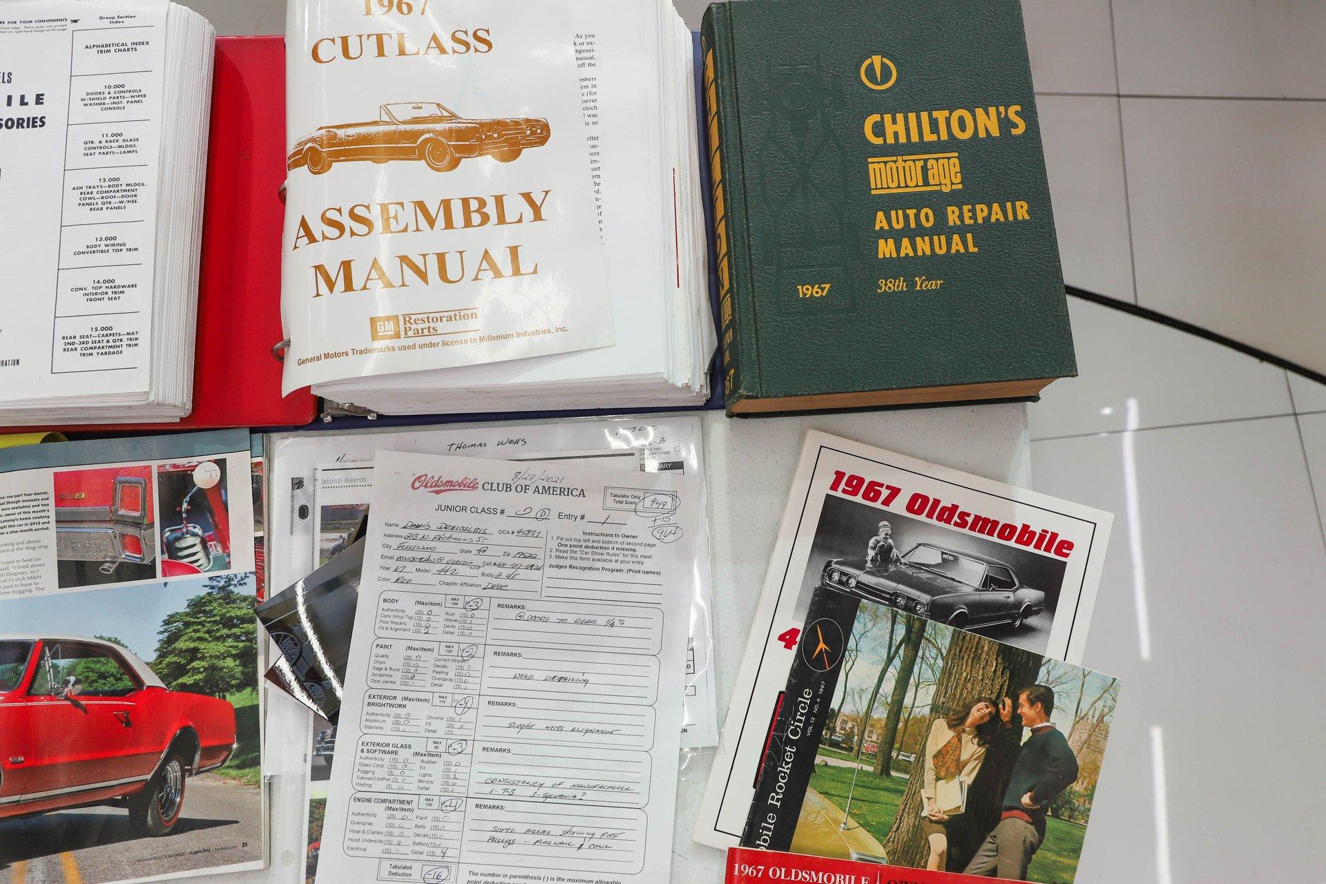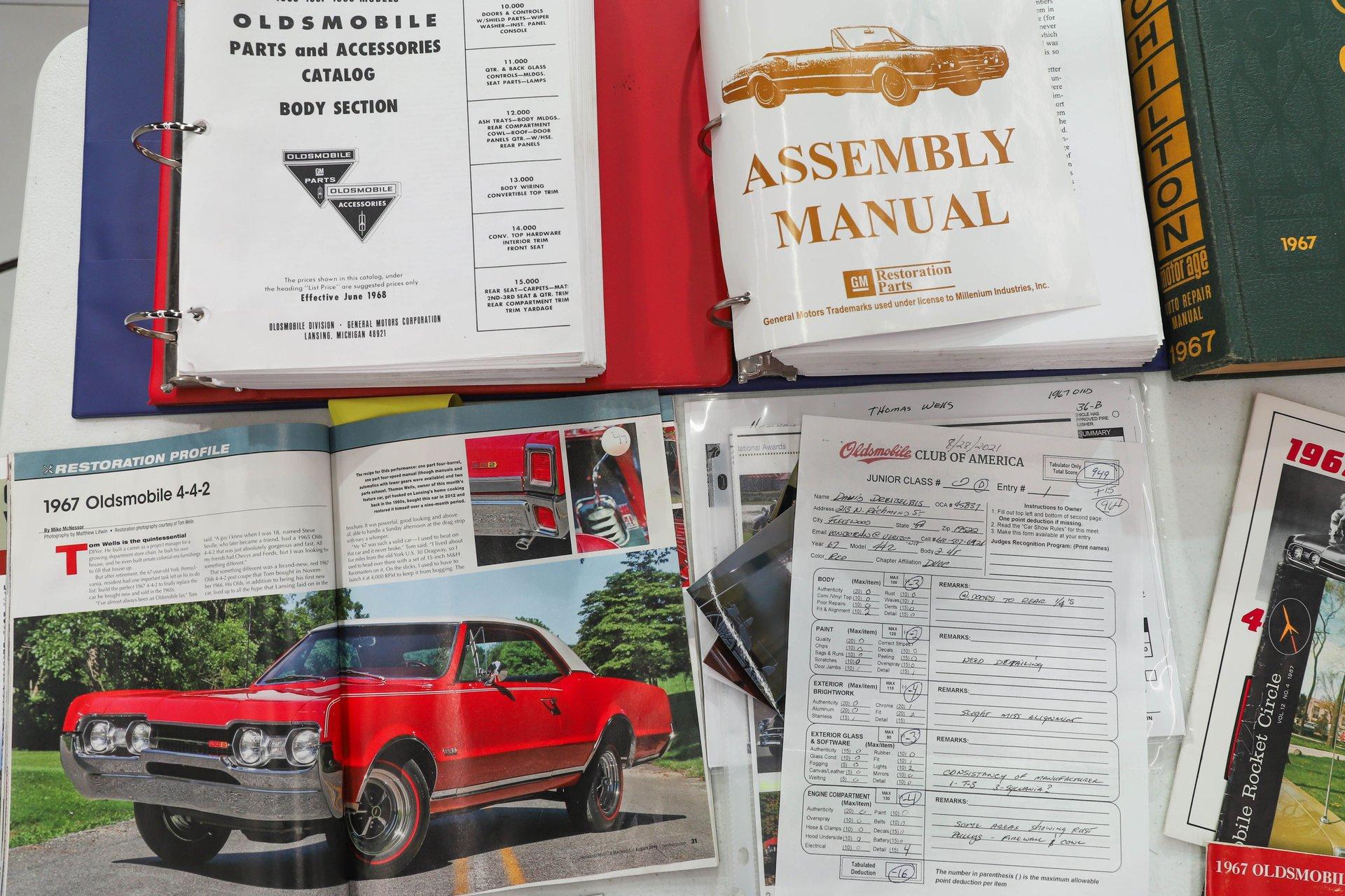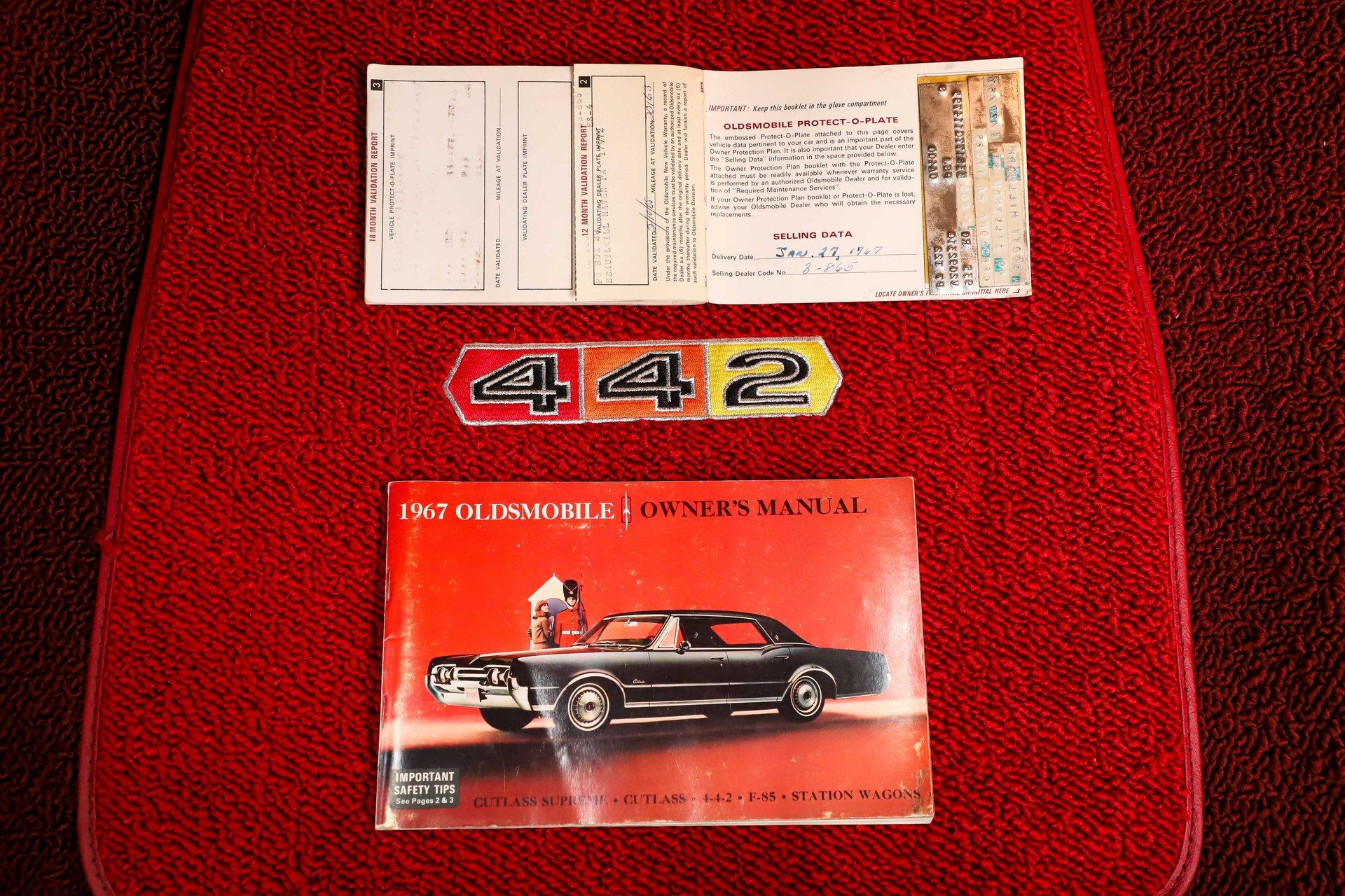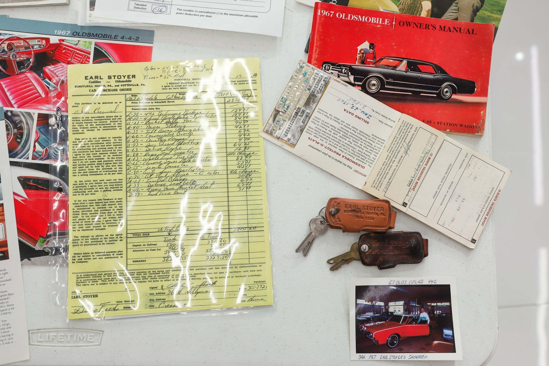 CONCLUSION: This 442 comes with an assortment of extras, including books, shop manuals, the original dealer issued leather key tag, 3 sets of keys, photos of the restoration, and copies of its magazine features. It's not only a highly restored example- it's also everything a muscle car should be with its 400 Ram Air engine, 4-speed, and 3.90 posi! Turn the key, grab a gear, and you'll quickly remember what it's all about.