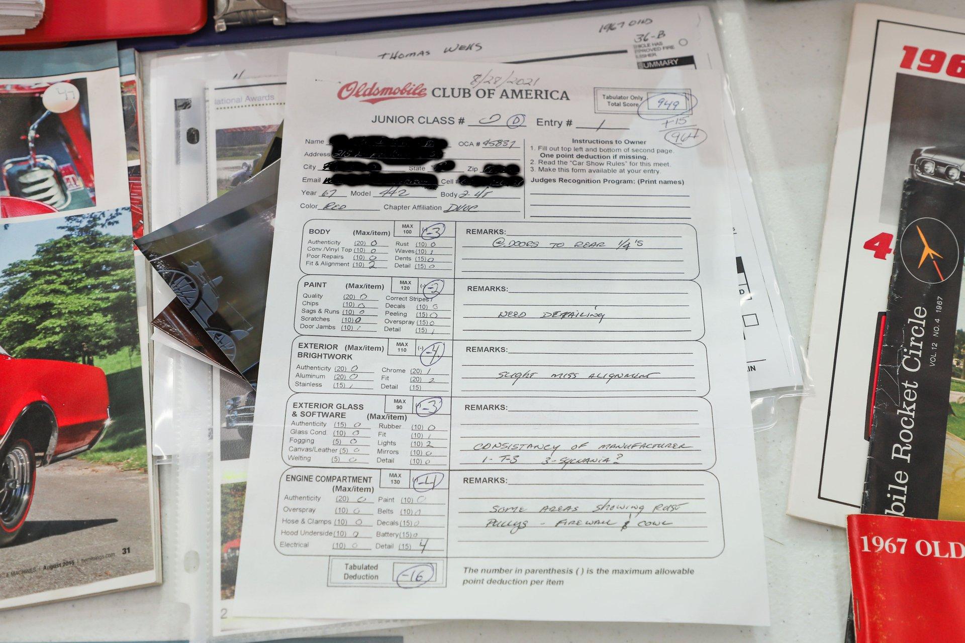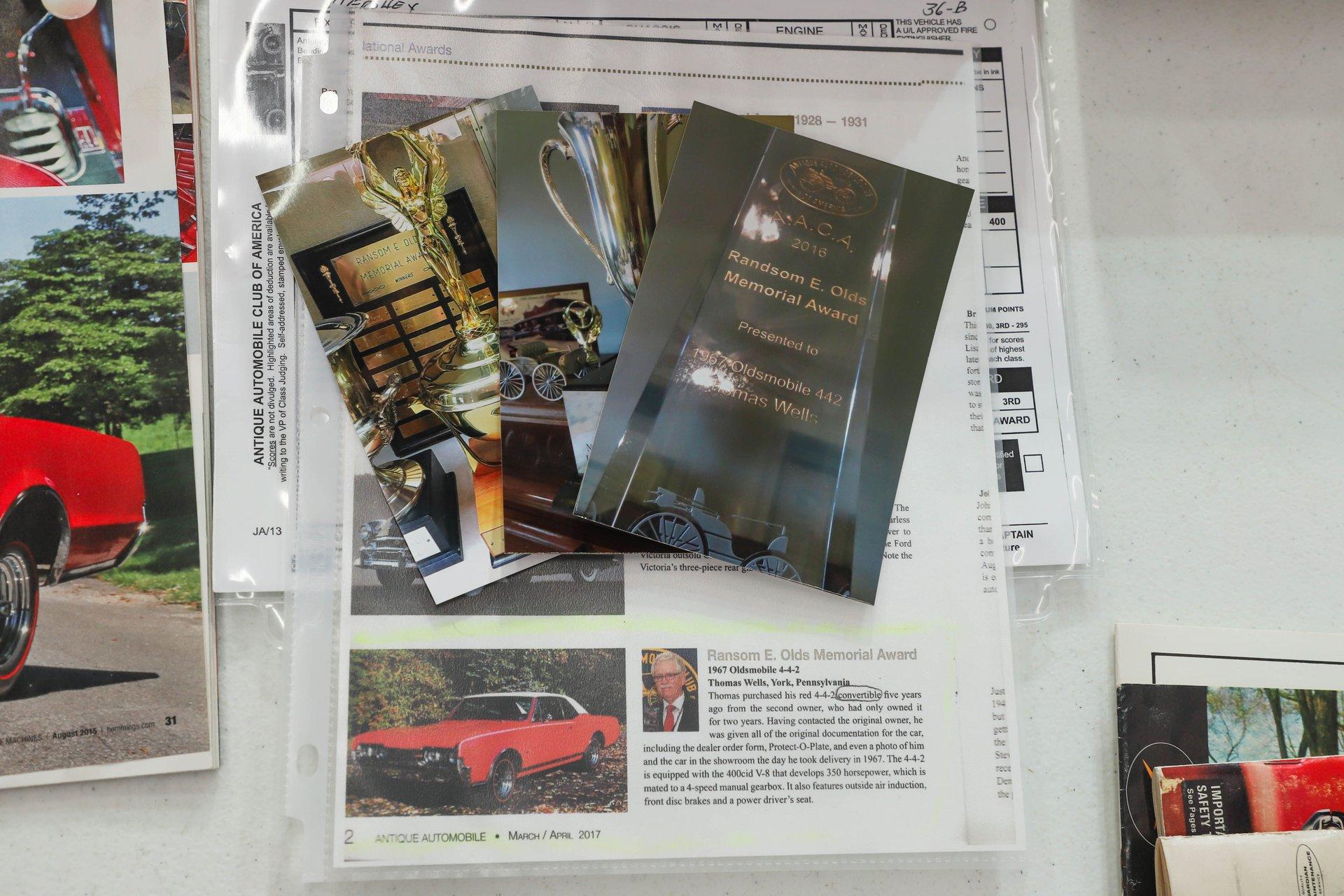 INTRODUCTION: True showstopper! This numbers-matching 442 was rotisserie restored and earned multiple concours awards. Backed by incredible documentation, including AACA judging sheets, Protect-O-Plate, original paperwork, and even a photo of its original owner in the showroom by the car on delivery day. Featured in Muscle Machines and Hemmings Motor News, this is a blue-chip collector piece.