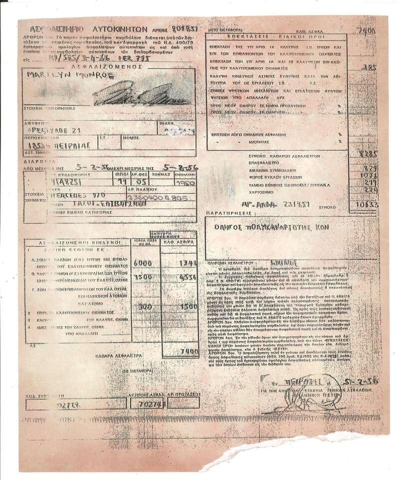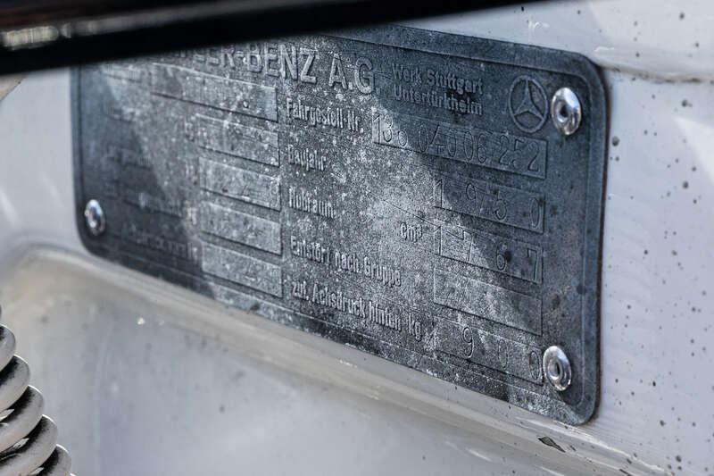Accompanying the car is a substantial history file including restoration invoices, a Mercedes-Benz data card confirming matching numbers, the Greek insurance certificate signed by Marilyn Monroe, official apostille and notarisation documents, supporting correspondence from the Mercedes-Benz Owners’ Club, and photographic records of both the restoration and reference vehicle.