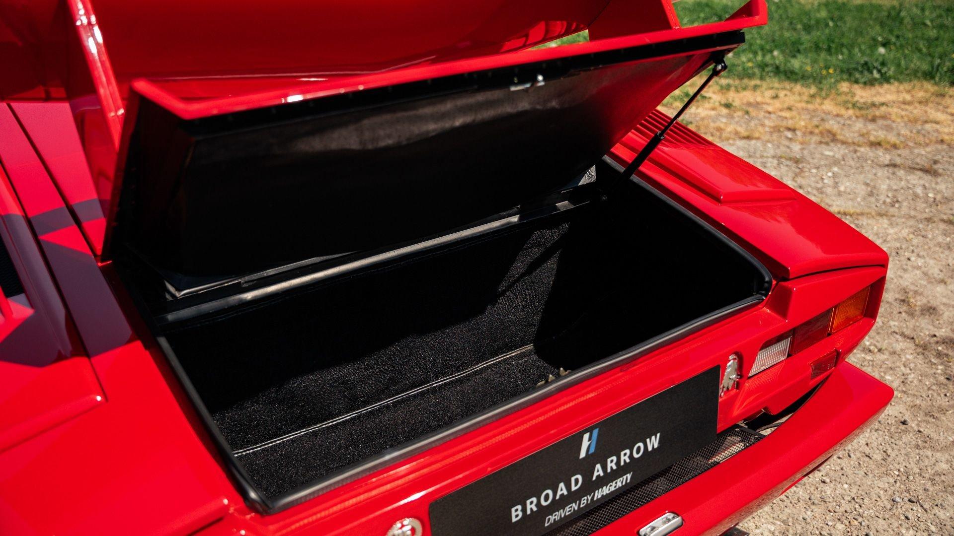 Beneath the Countach's inviting scissor doors, the interior was broadened, modernized and ready for the Dot-com Decade. The door sills were redesigned and now featured covered storage bins. The seats were now plusher and could be electronically reclined. Window cranks were removed in favor of electric window switches centralized behind the gear lever. Better sound insulation was added, as was a more potent air conditioning system.