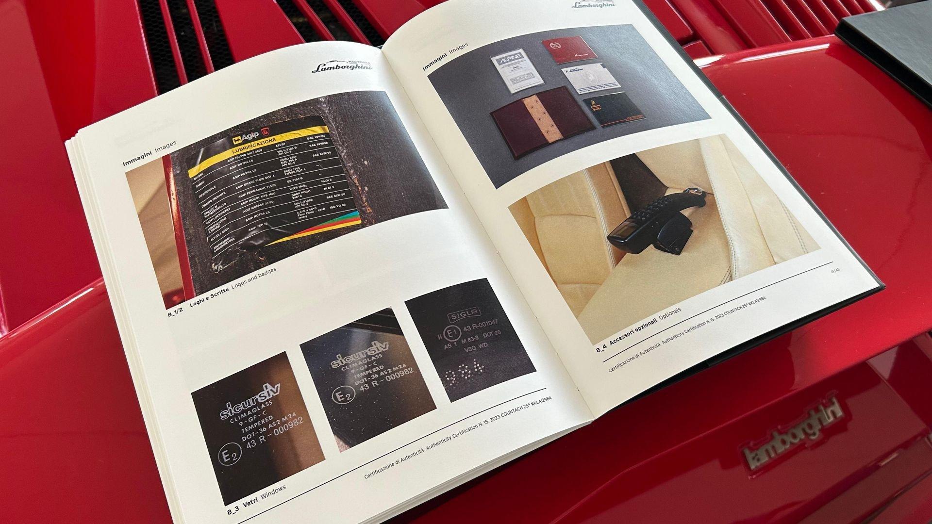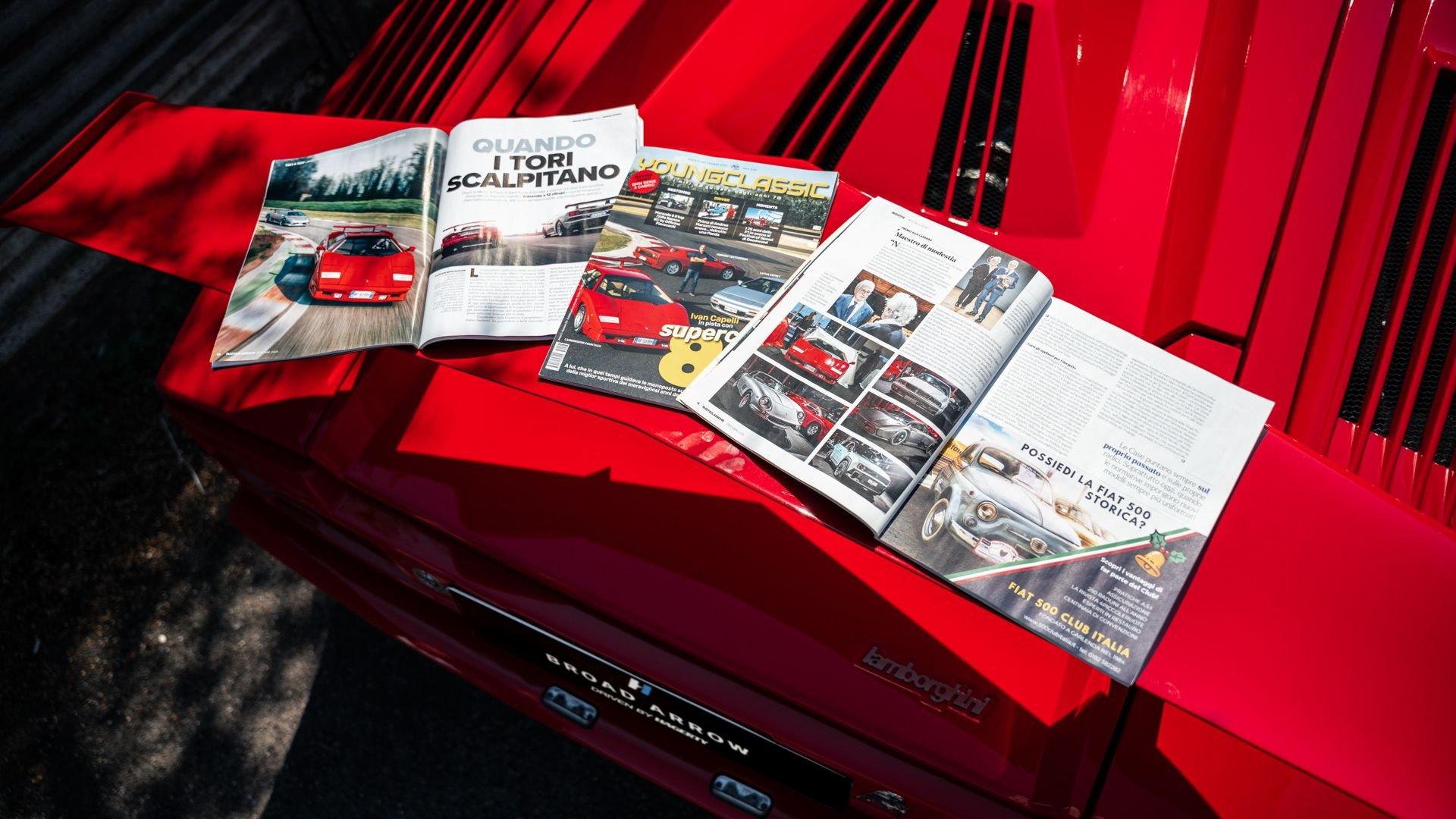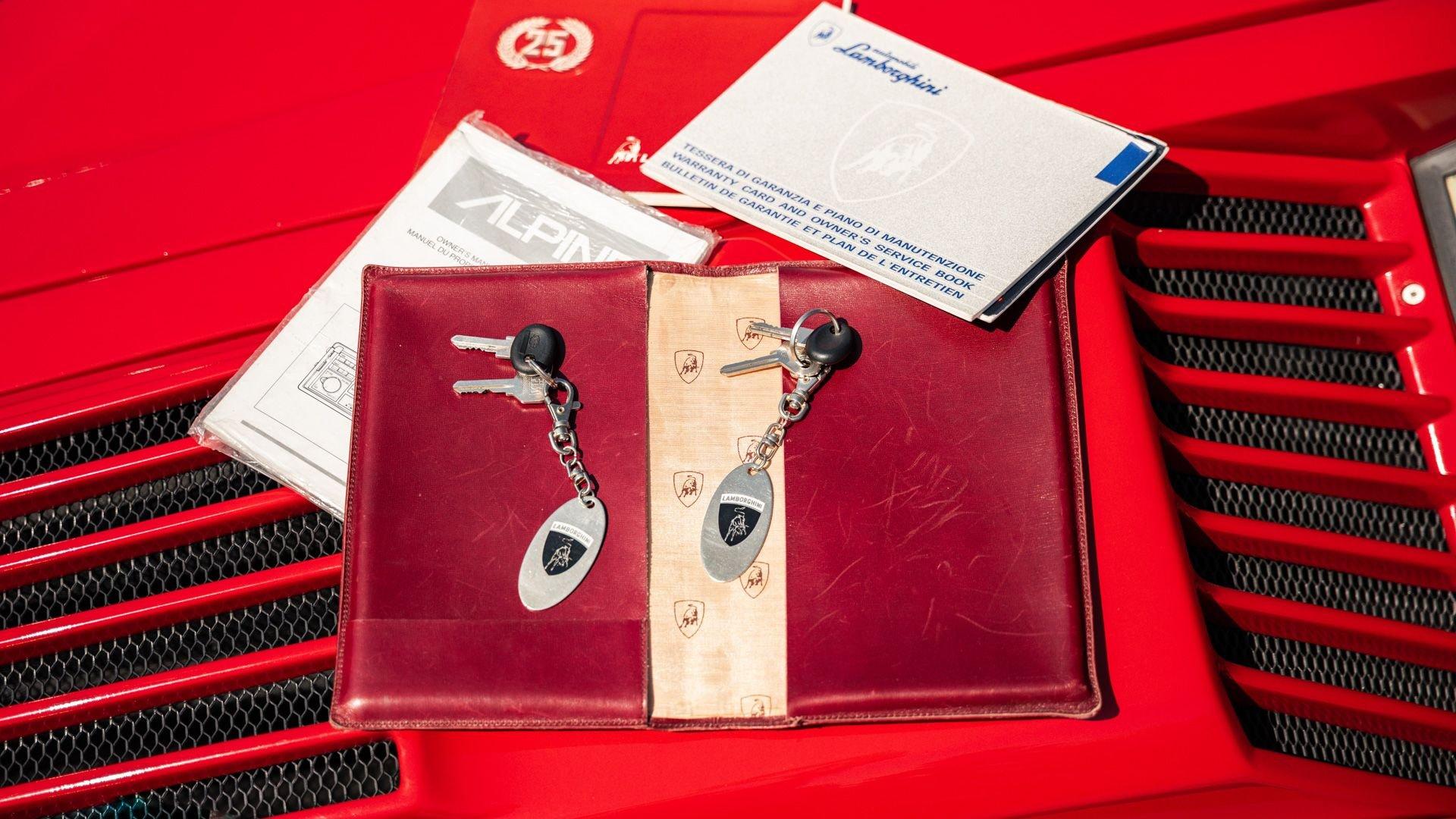 Factory-certified and award-winning, this 1990 Lamborghini Countach 25th Anniversario is now offered with just 22,616 kilometers at cataloging. It is furnished with its essential Polo Storico certificate, two keys, owner's manuals plus maintenance guide in leather pouch, trophies, and copies of the Ruoteclassiche, Youngclassic, and Classic Club Italia magazines it has been featured in.