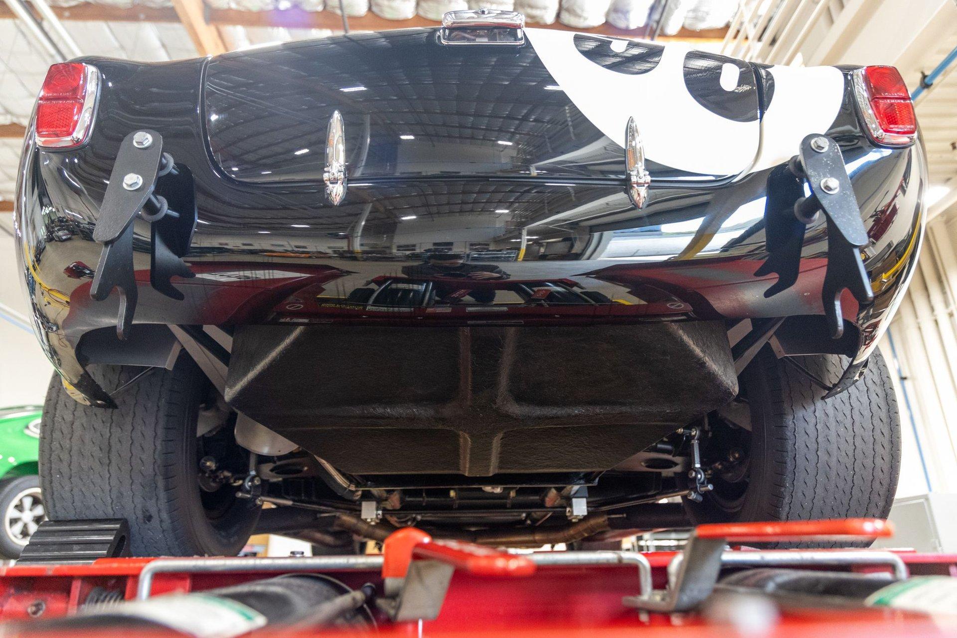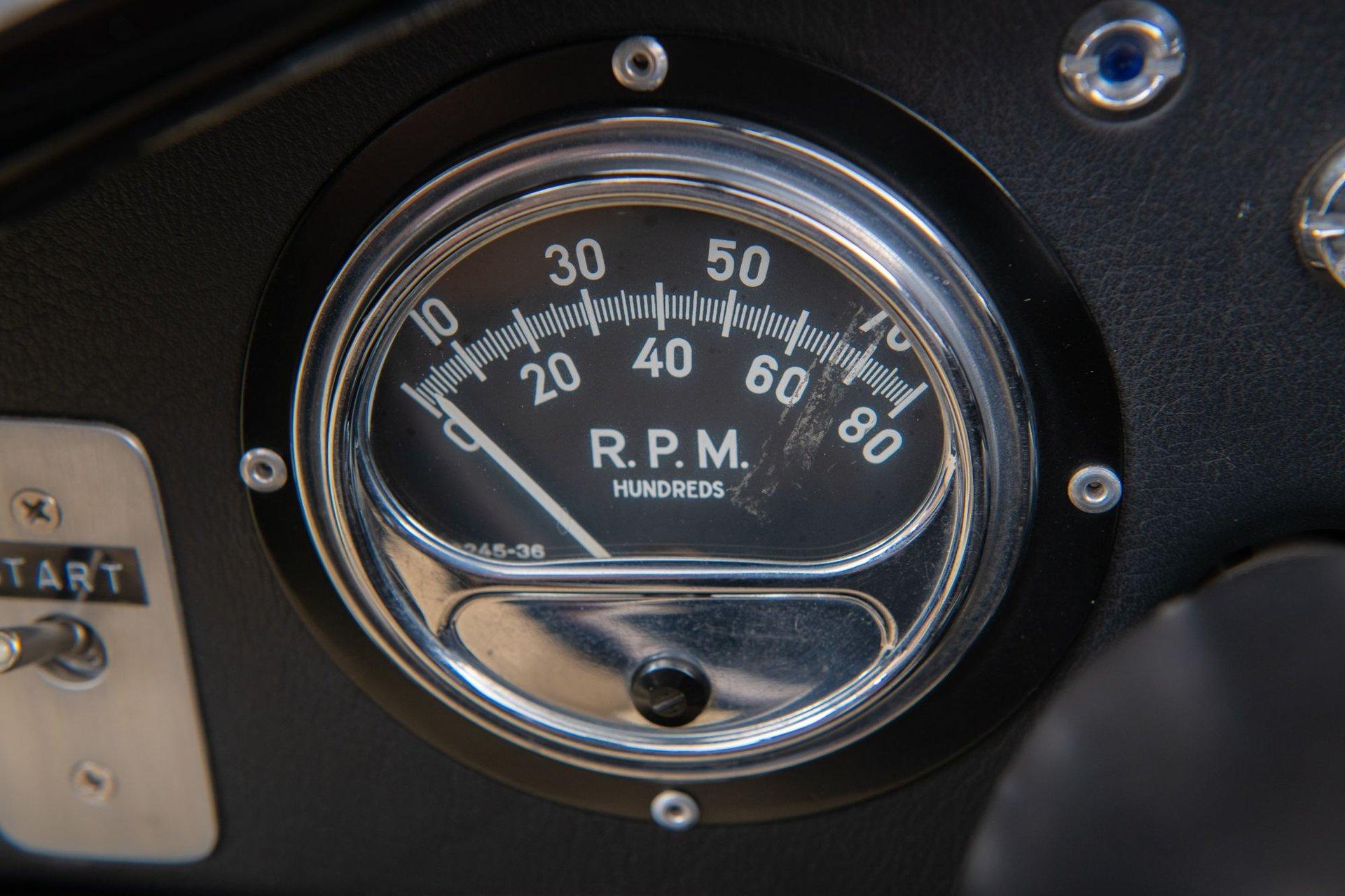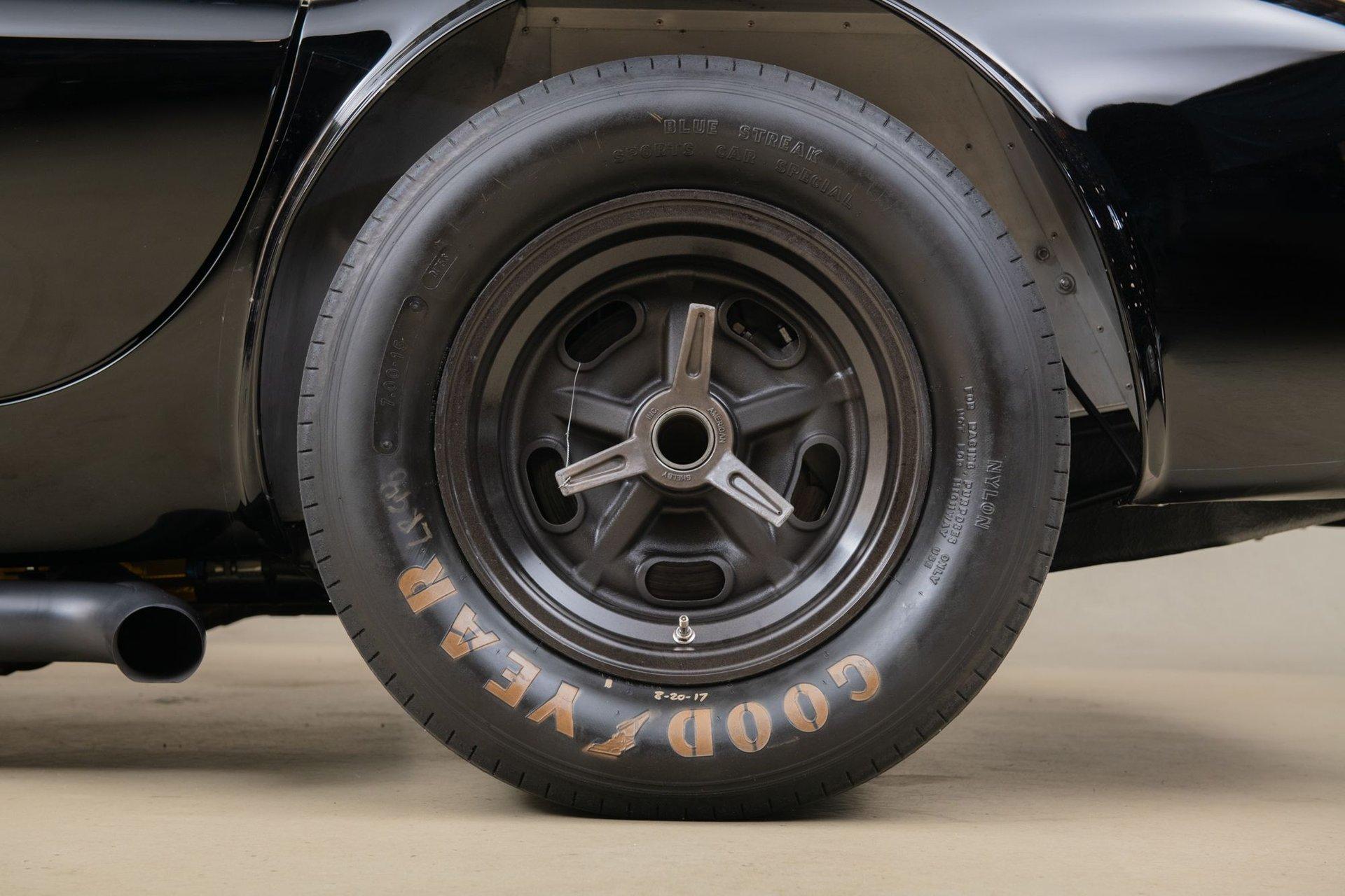 At Shelby, the car was modified to compete in domestic SCCA/USRRC road racing events. It was outfitted with a high-output 289 V8, four 48 IDM Weber carburetors, a “Nassau” exhaust system, electric fuel pump, oil and differential coolers, front and rear sway bars, Konis, kidney-bean Halibrands, Goodyear racing tires, additional instrumentation, and more.