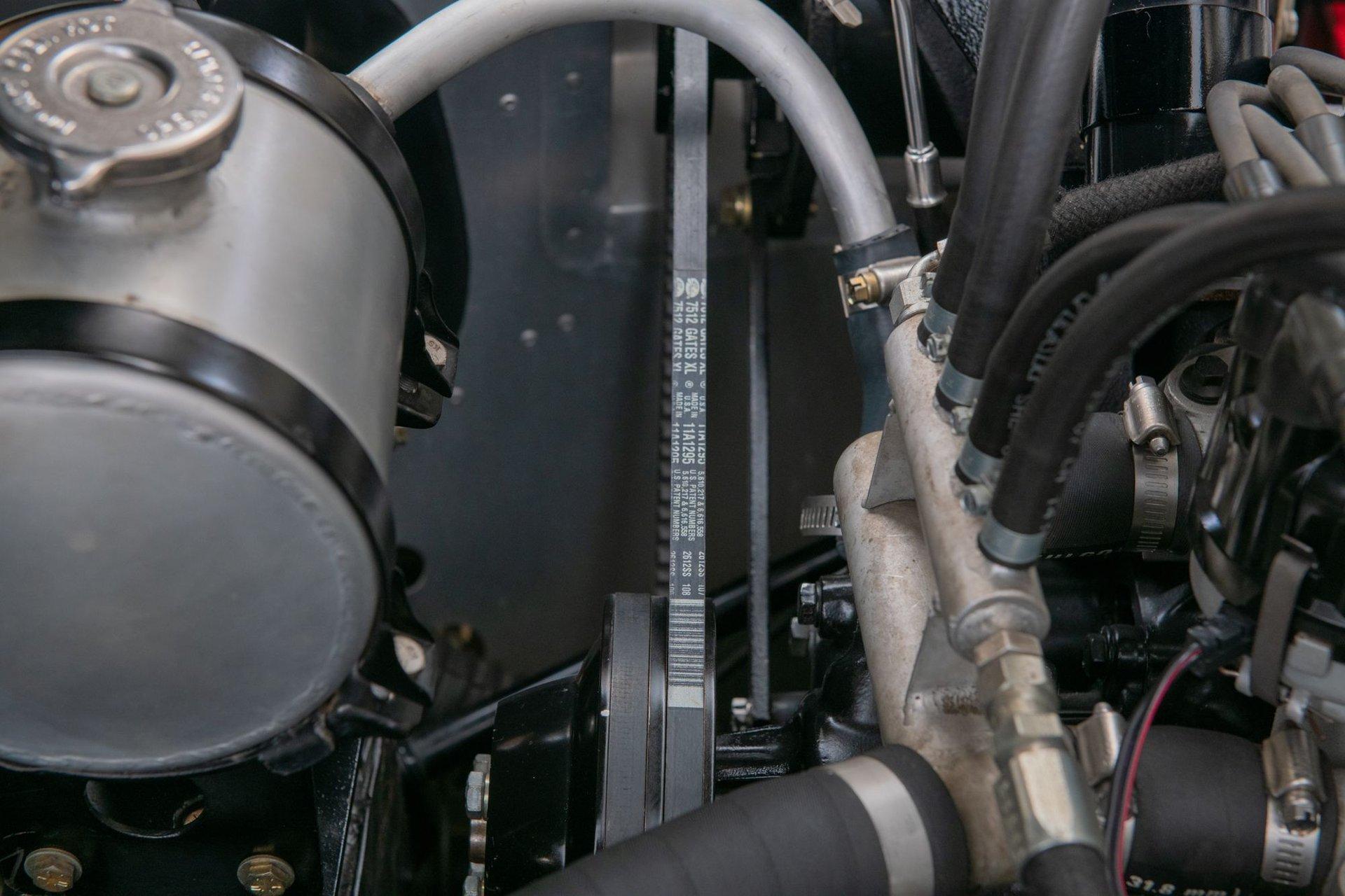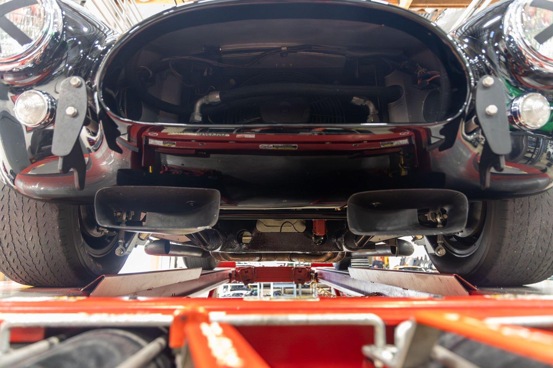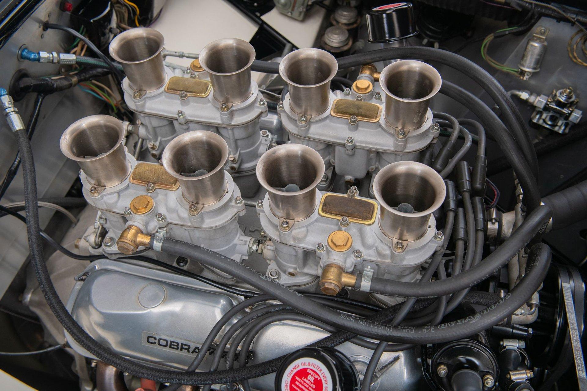At Shelby, the car was modified to compete in domestic SCCA/USRRC road racing events. It was outfitted with a high-output 289 V8, four 48 IDM Weber carburetors, a “Nassau” exhaust system, electric fuel pump, oil and differential coolers, front and rear sway bars, Konis, kidney-bean Halibrands, Goodyear racing tires, additional instrumentation, and more.