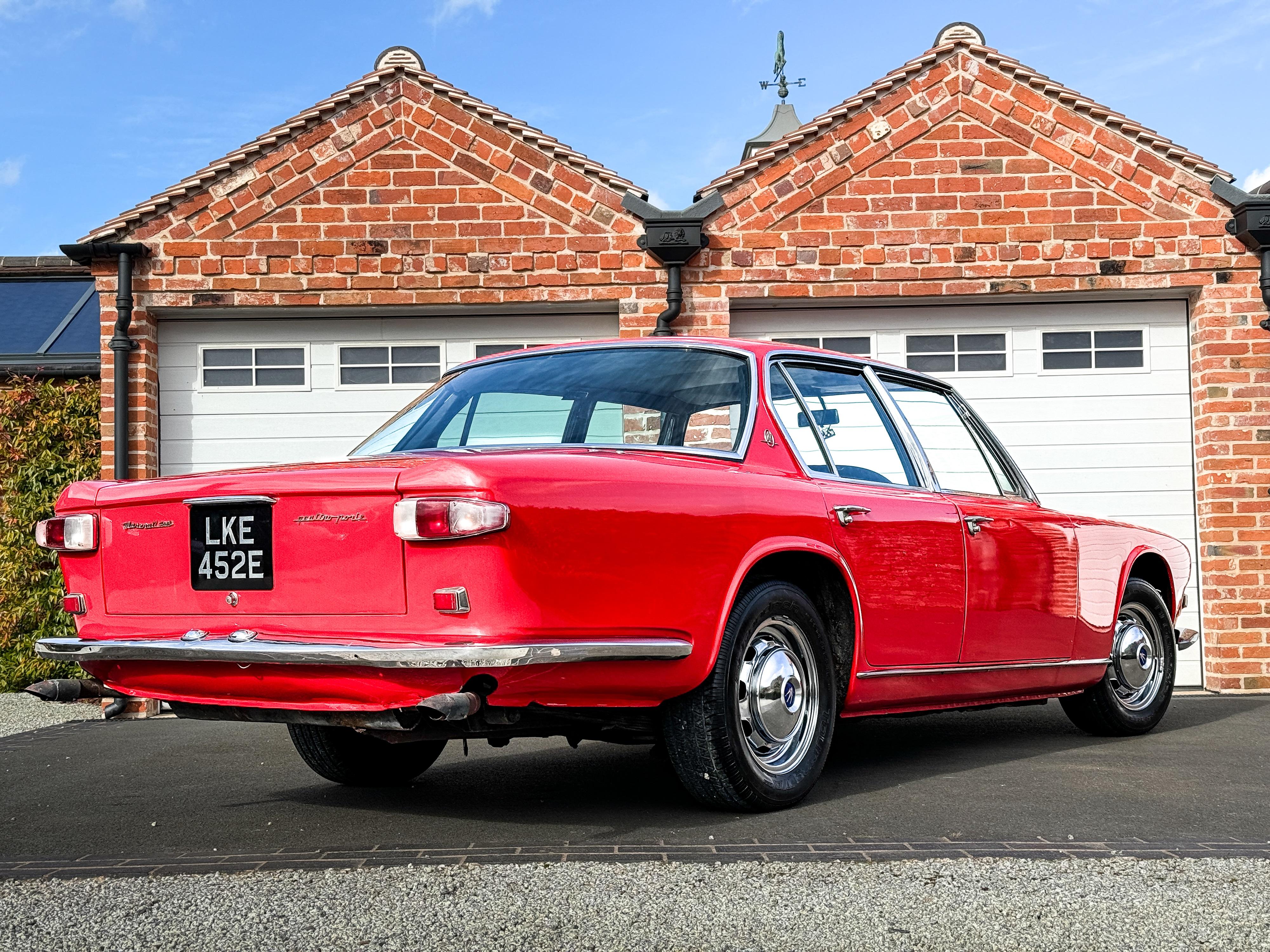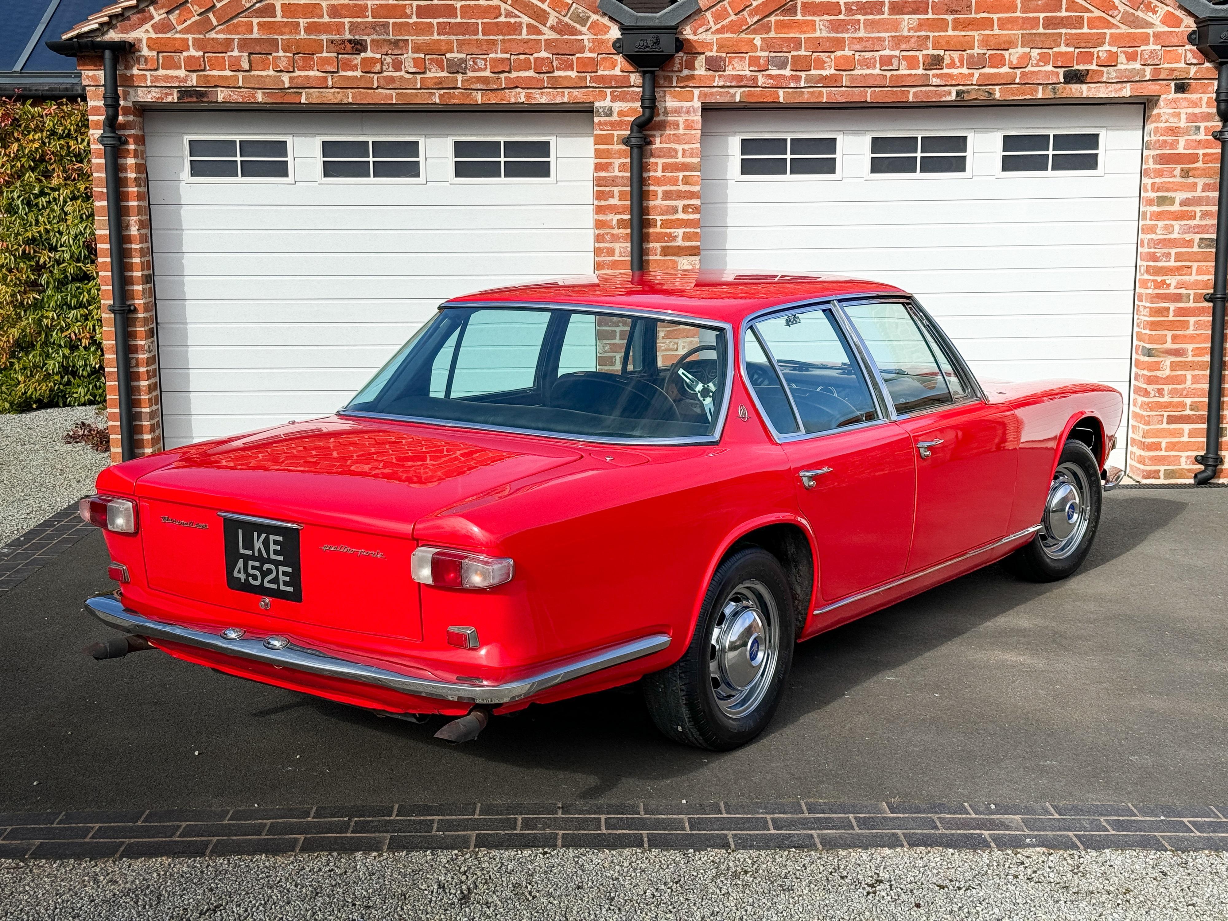 This 1967 example represents the more developed iteration of the Quattroporte and is fitted with the highly desirable 4.7 litre engine. The vehicle was originally imported from the United States and is now UK registered as LKE 452E. It currently displays 41,315 kilometres. The vendor advises that the speedometer was previously replaced; at the time of the change, it recorded 53,077 kilometres. A correct Smiths gauge was fitted, and the current reading reflects this adjustment. The car presents as a well-maintained example and is becoming increasingly collectable.