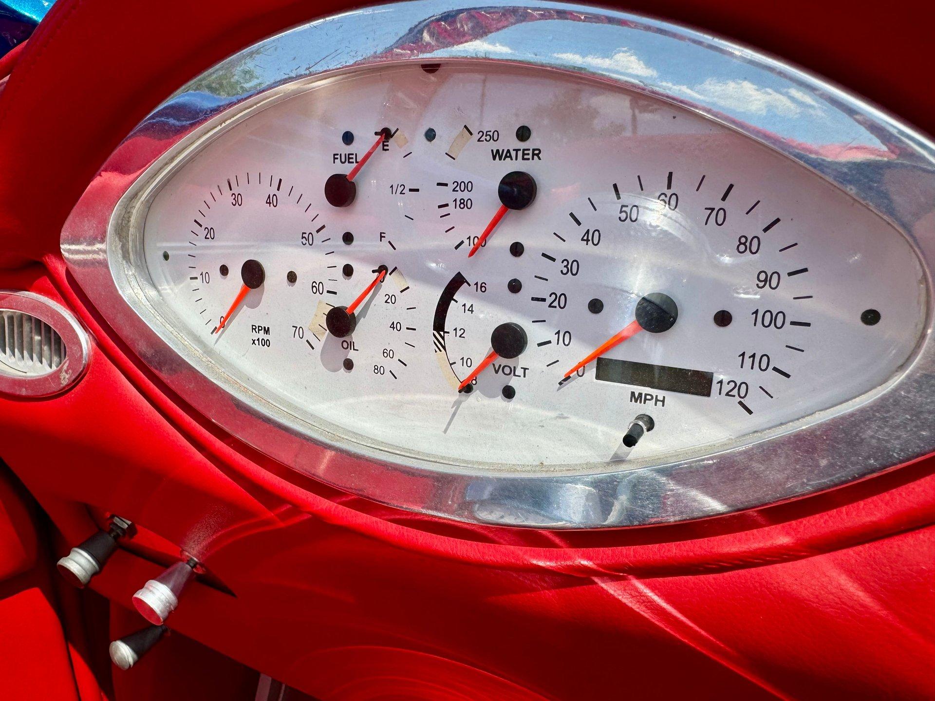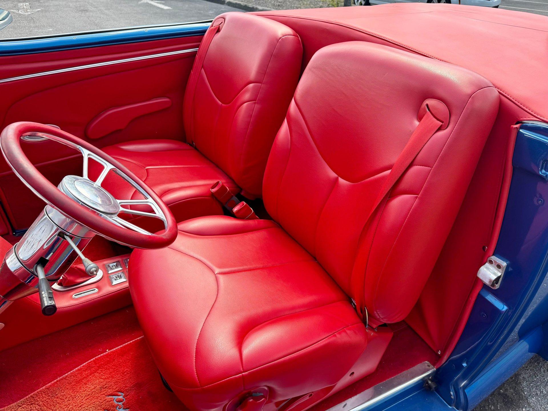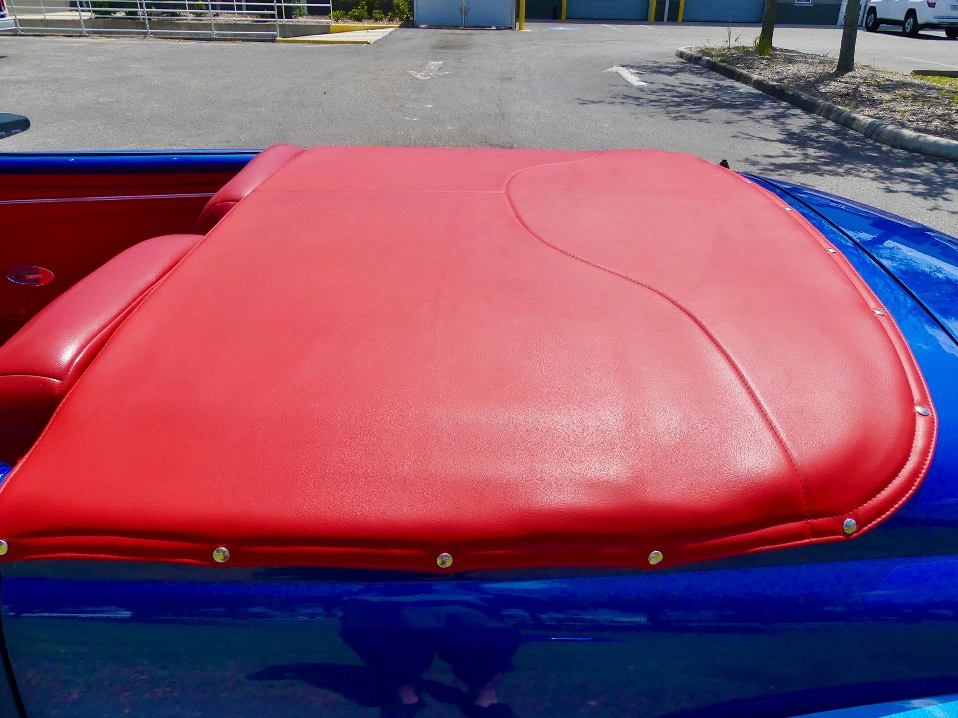 Red ultra leather custom interior, power seats, with power windows the hard top make this one cool custom street rod. Vintage Air is installed to keep you cool when the roof is on as well. The interior also features bucket seats, billet tilt steering column, custom center console, aftermarket white faced gauges and a JVC CD stereo. This is a real show stopper of a car and is sure to get you a trophy at your local cruise in. It is a cool piece of automotive history. With no expense spared, never driven in rain, Florida ownership car with a clean and clear title.