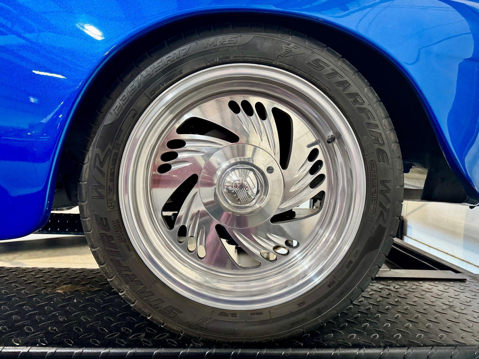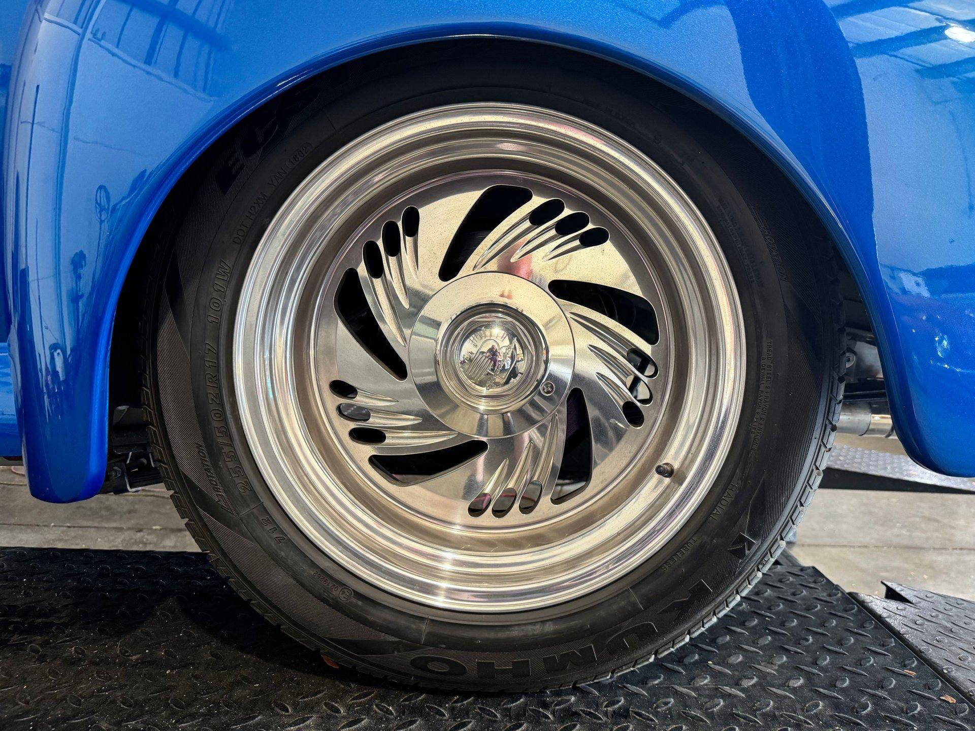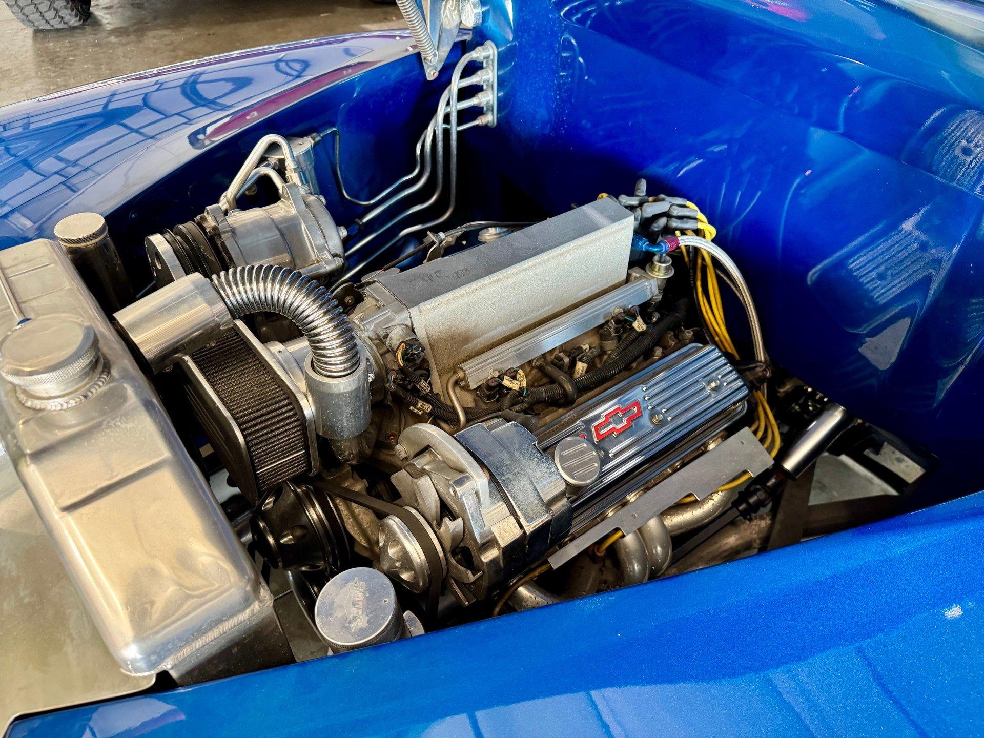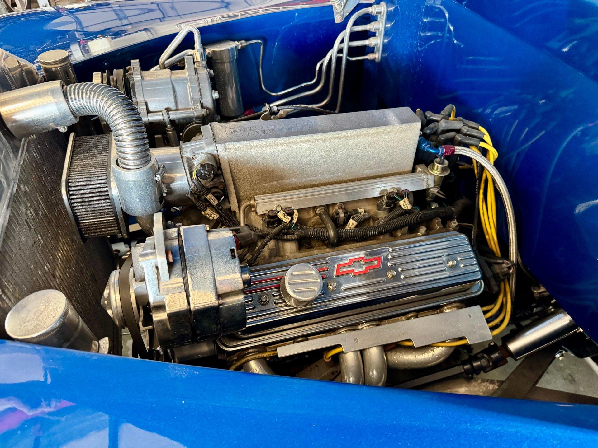 Plenty of power is generated from a peppy Chevy Ram Jet fuel injected 350 CID V8. The engine is dressed up with polished aluminum belt system and lots of chrome on the accessories and valve covers. Upgraded chrome A/C Compressor with modern R134A refrigerant. Stainless steel headers and a clean custom dual exhaust system gives it a sound to match its appearance! Aluminum radiator, 700R4 transmission with overdrive, power steering and power disc brakes make this Hot Rod ready for the streets. 17in Billet Specialties wheels wrapped in radial tires tie everything together and keep you rolling comfortably.