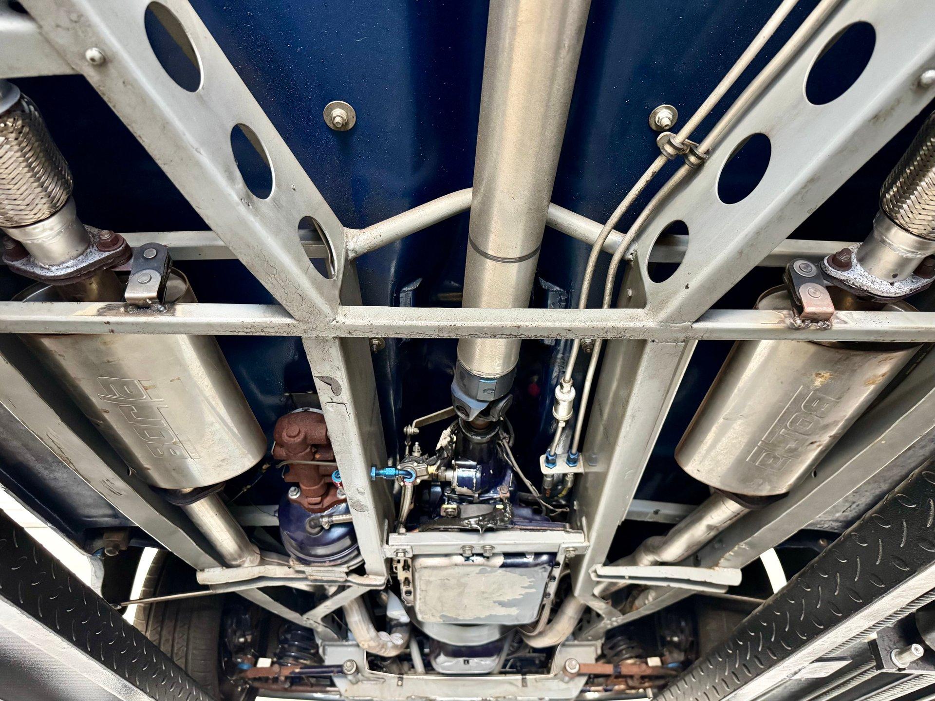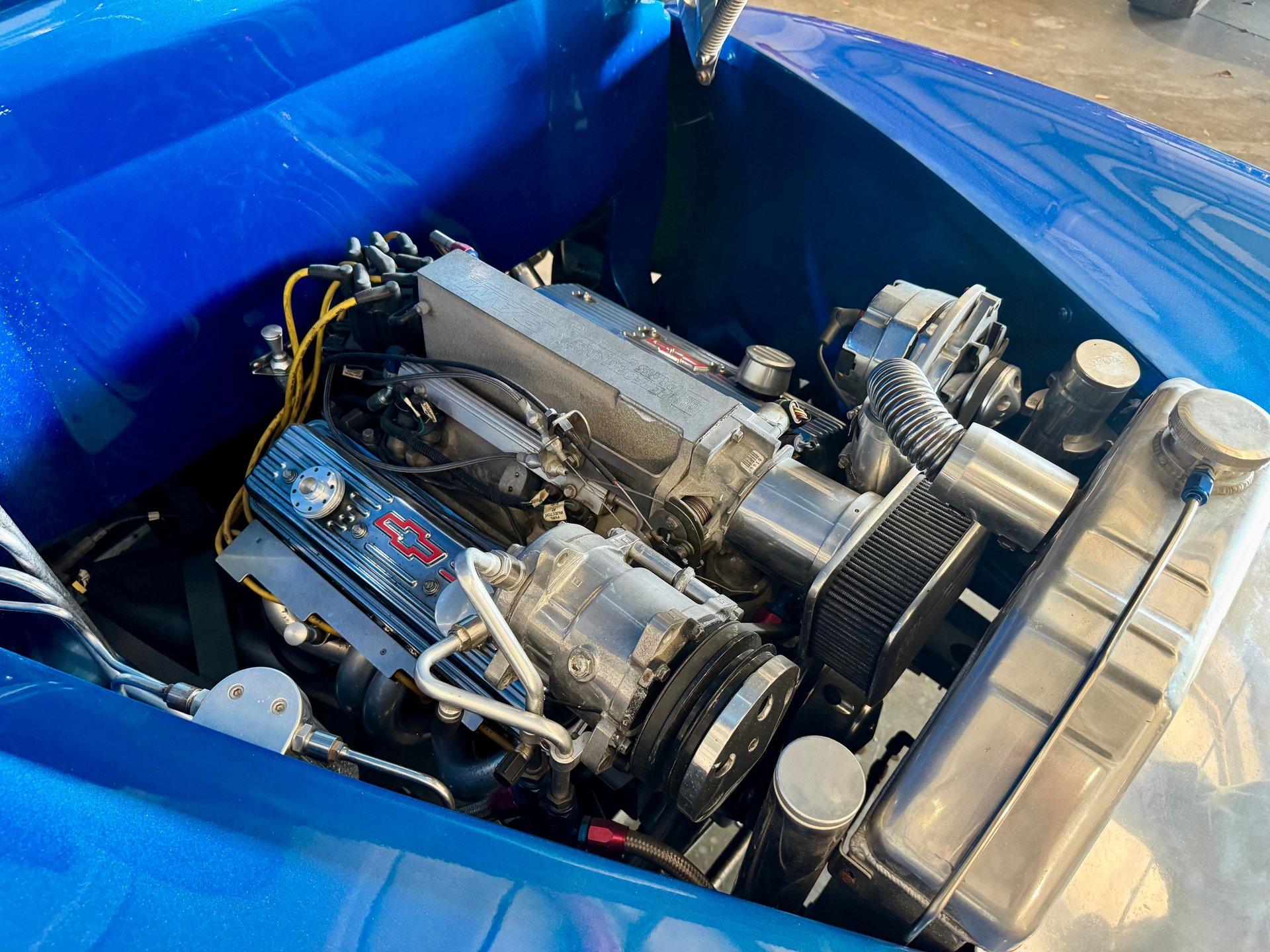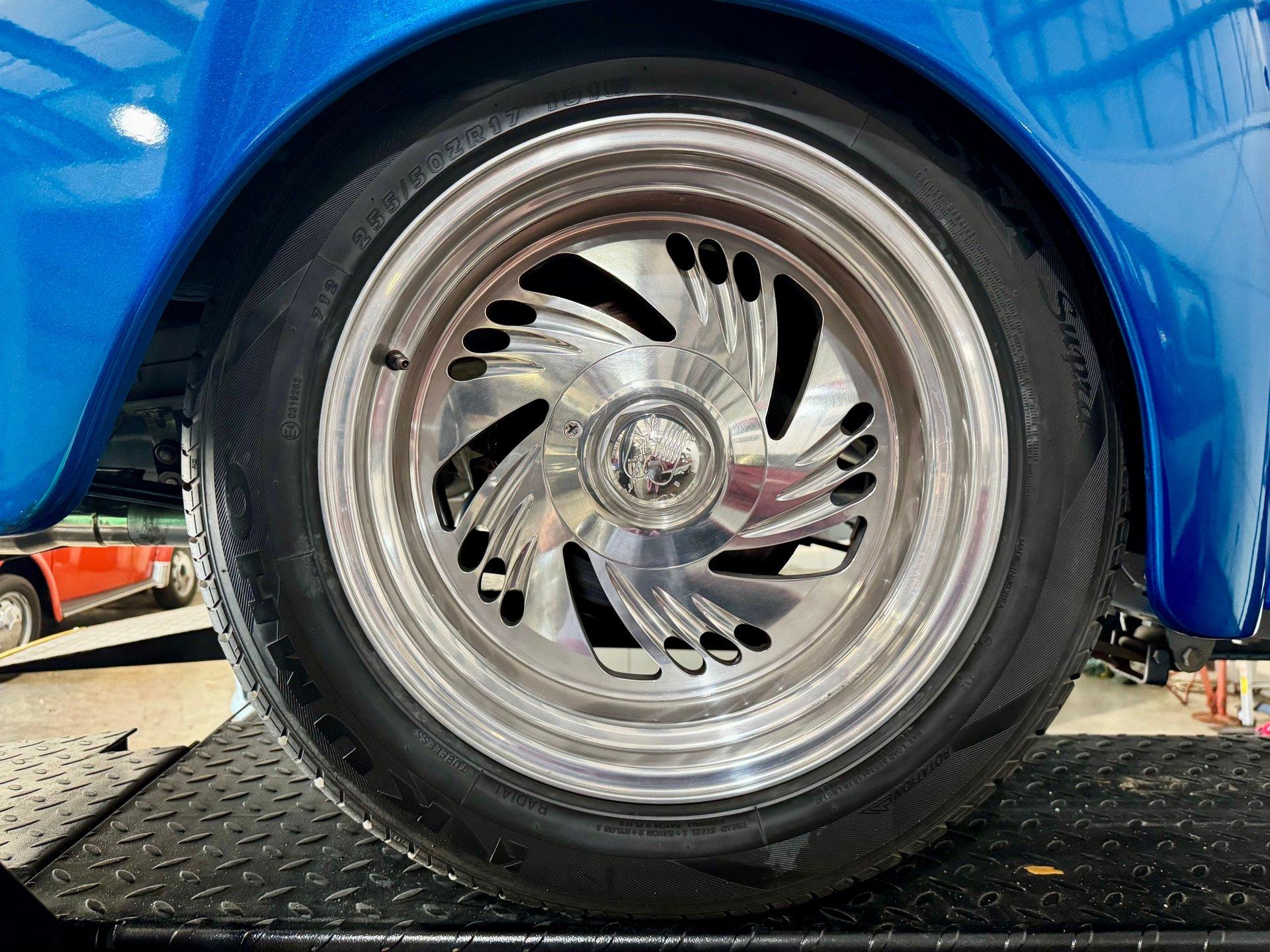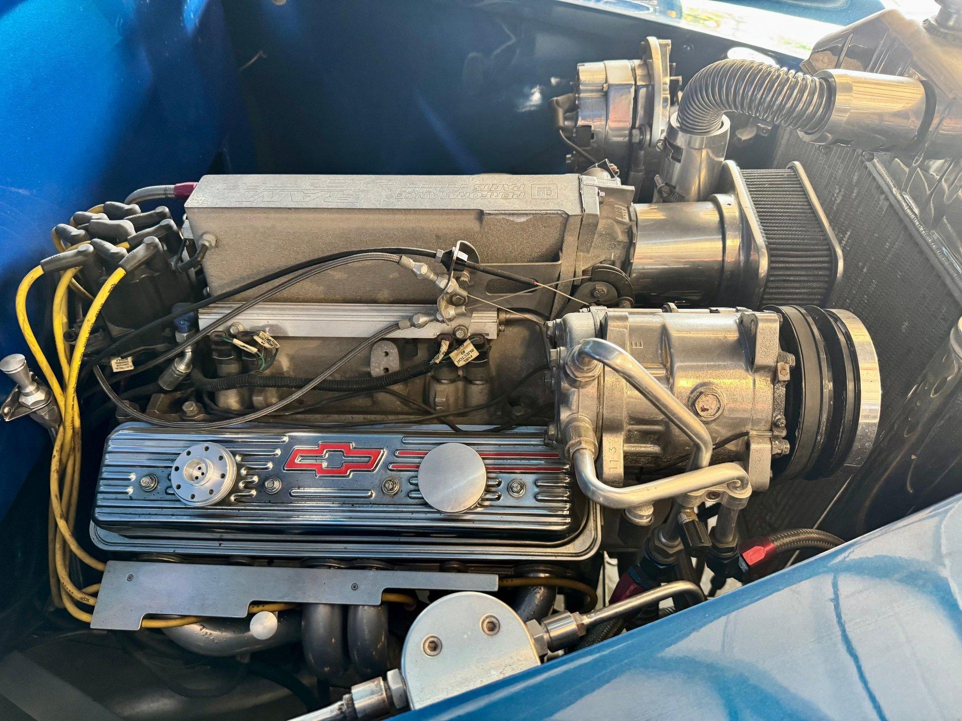 Plenty of power is generated from a peppy Chevy Ram Jet fuel injected 350 CID V8. The engine is dressed up with polished aluminum belt system and lots of chrome on the accessories and valve covers. Upgraded chrome A/C Compressor with modern R134A refrigerant. Stainless steel headers and a clean custom dual exhaust system gives it a sound to match its appearance! Aluminum radiator, 700R4 transmission with overdrive, power steering and power disc brakes make this Hot Rod ready for the streets. 17in Billet Specialties wheels wrapped in radial tires tie everything together and keep you rolling comfortably.