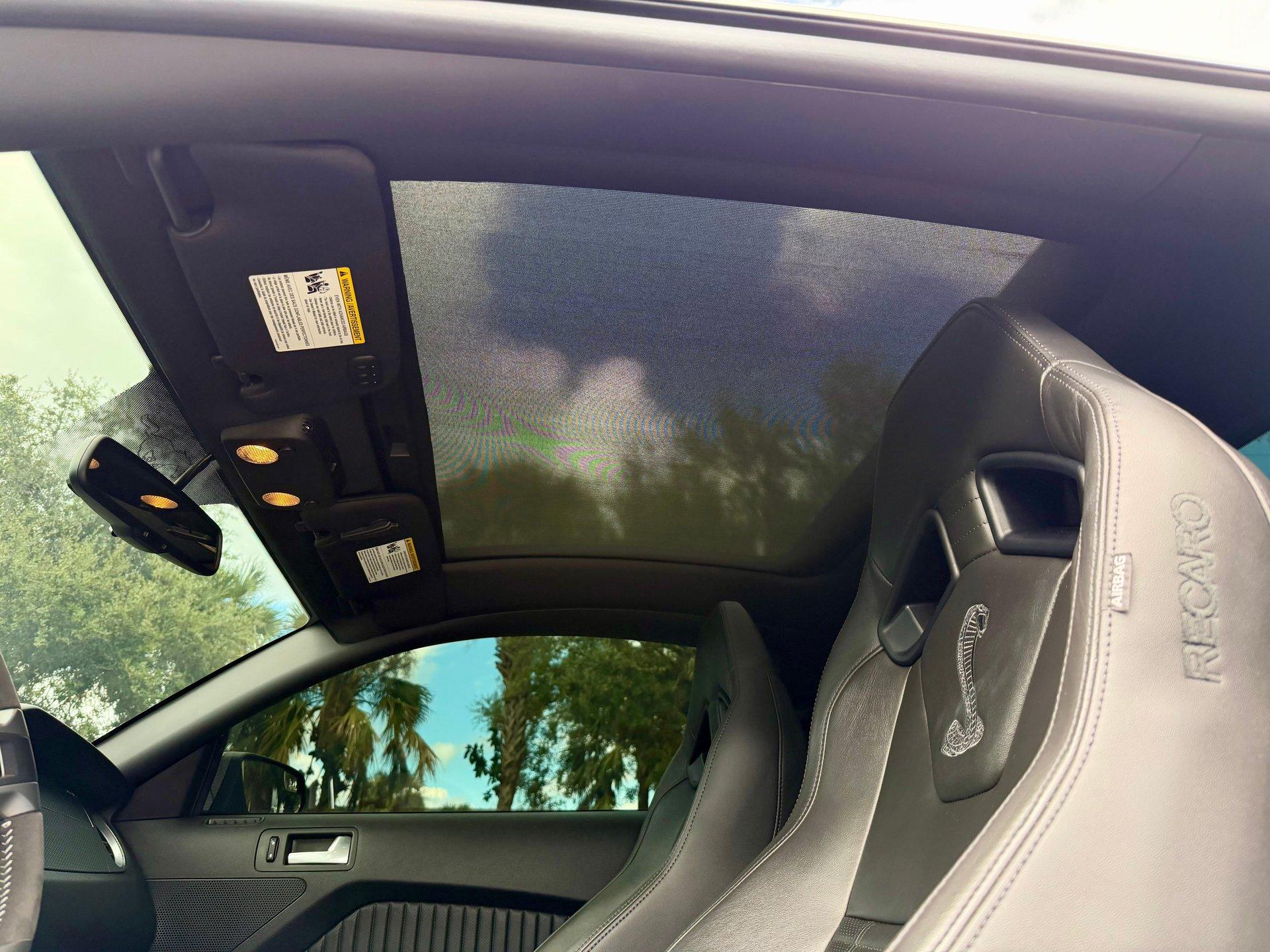 This is 1 of only 1669 GT500 coupes in this color combination, what a rare treat! You also get a perfect view of the sun or the stars when you pull back the shade on the full cockpit glass roof! It is a truly unique feature and is sure to be a conversation starter!