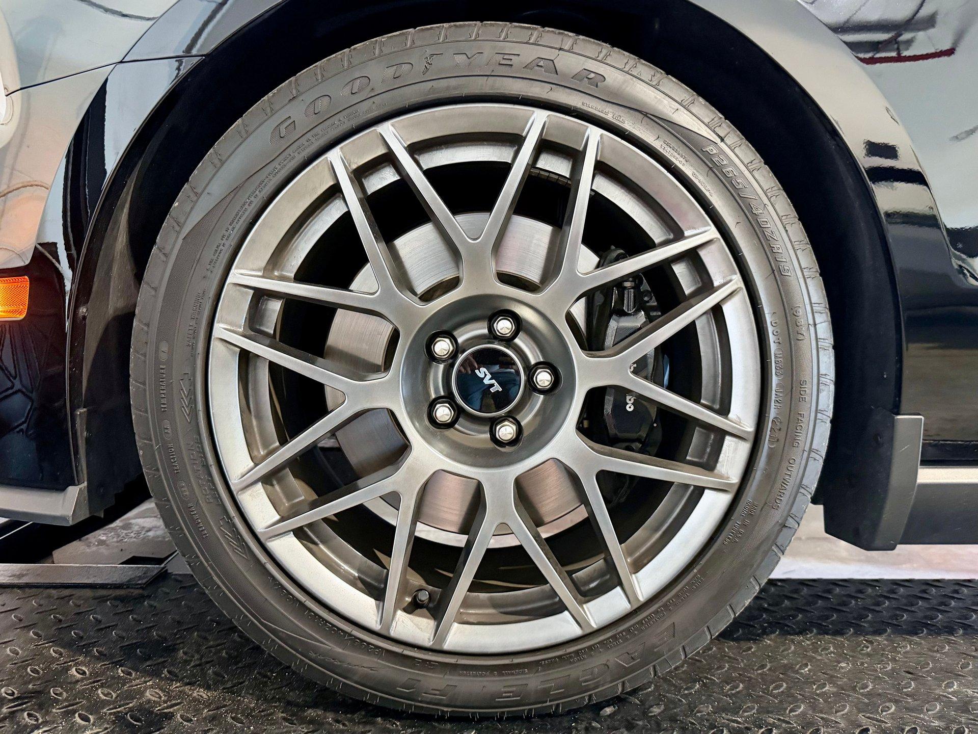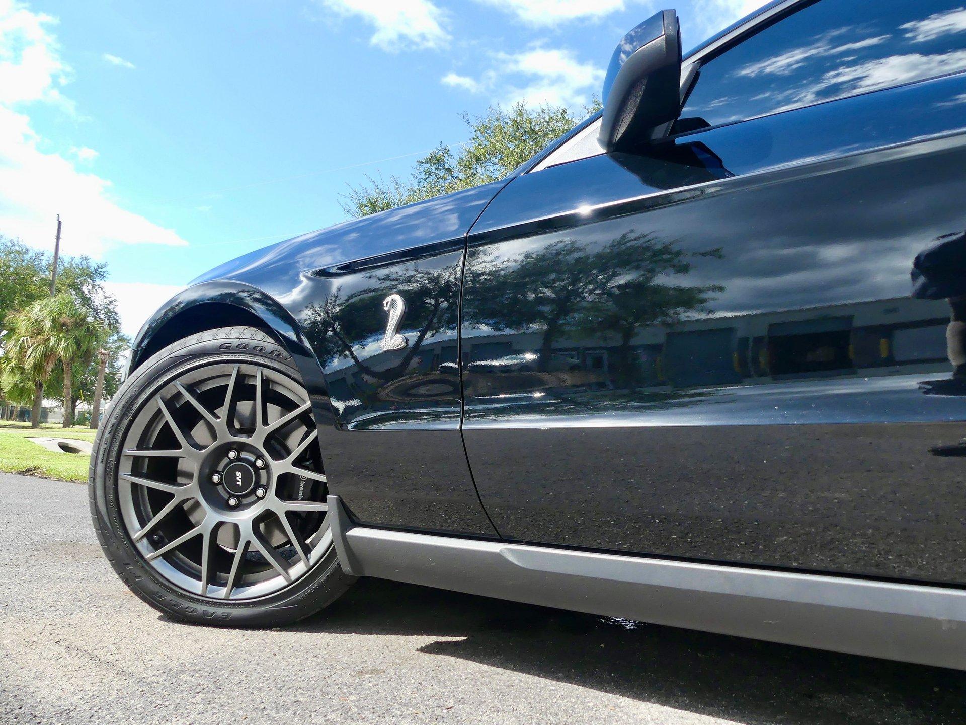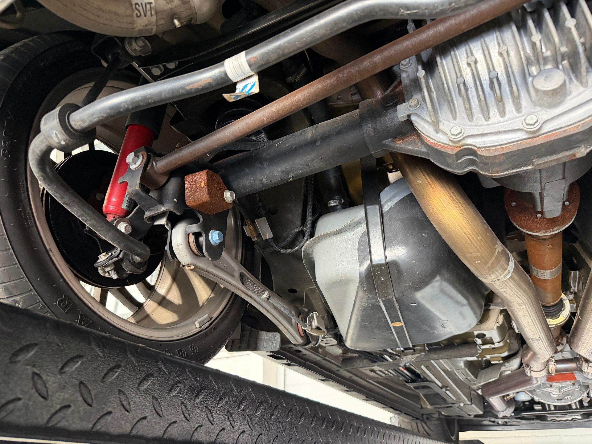 This modern muscle car is also loaded with options like Recaro seats, leather upholstery, cold factory air conditioning, power 4-wheel disc brakes, power steering, tilt, cruise control, Shaker stereo, AM/FM/CD/Navigation, alarm system, alloy wheels, radial tires, and more!The slick Black paint is set off by a spoiler, and Shelby specific hood and front end treatment. Rocker panel stripes and Shelby emblems complete the look. The factory SVT gunmetal staggered fit wheels wrapped in Supercar tires give it a sinister stance!