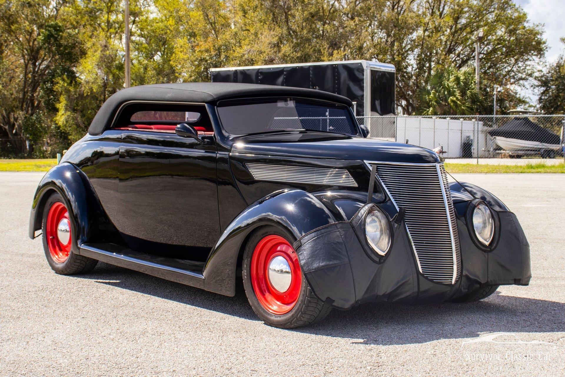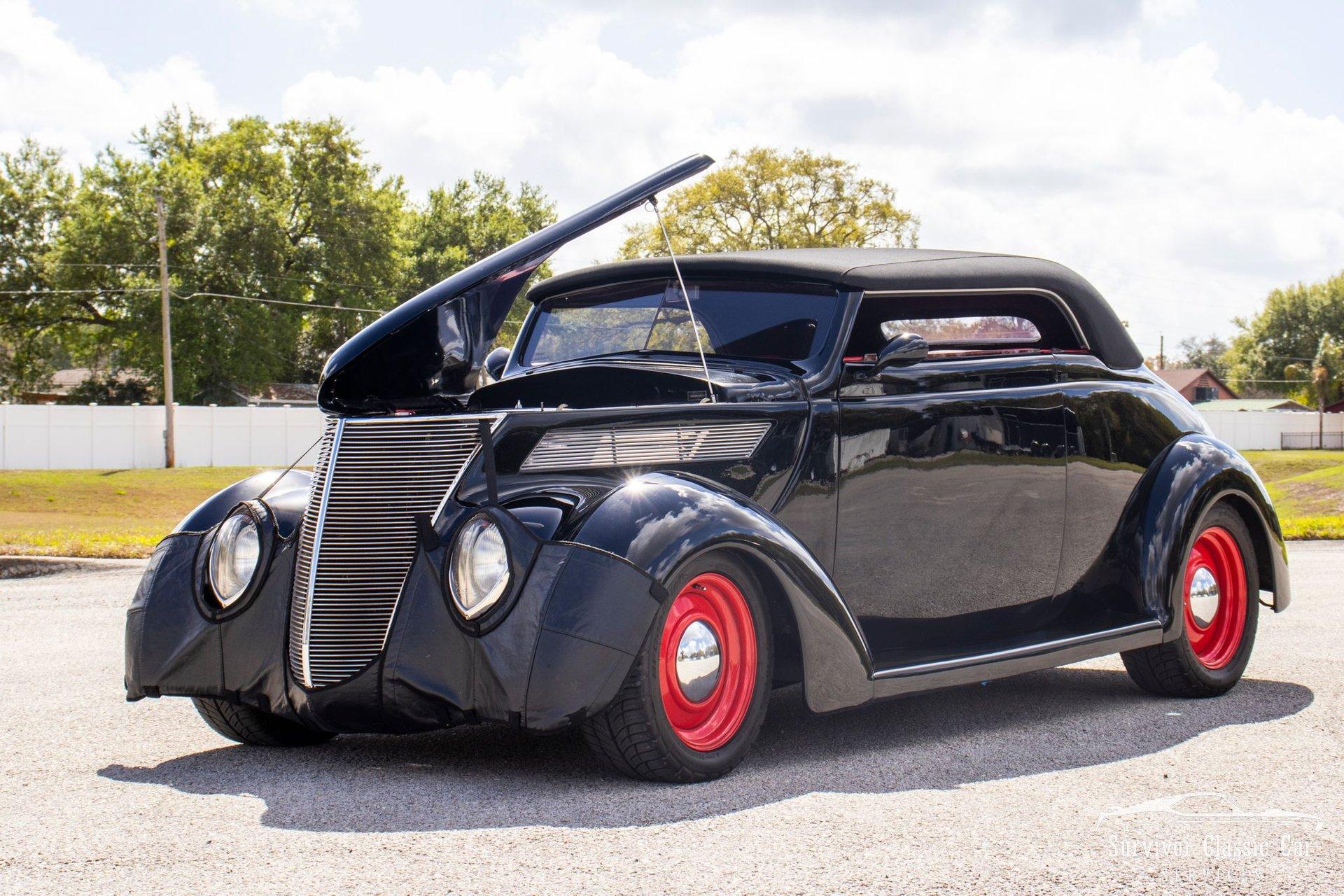 This particular Down's '37 Ford Cabriolet is a beautifully built and show-presented Street-Rod with Resto-Mod Styling & Modification. Originally bought over 15yrs ago in Indianapolis, the owner took this cabriolet and transformed everything about it & moved it to his winter home here in sunny Florida. This '37 Ford has won numerous best of show awards, one being the StreetRod Magazine Pick of the year.
