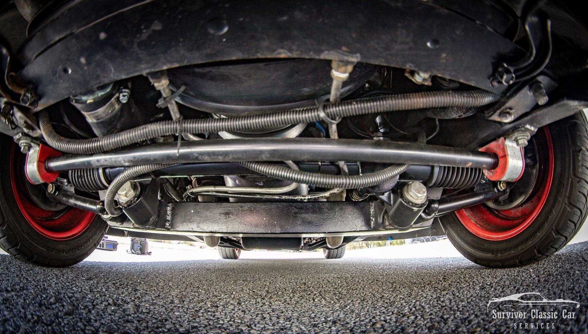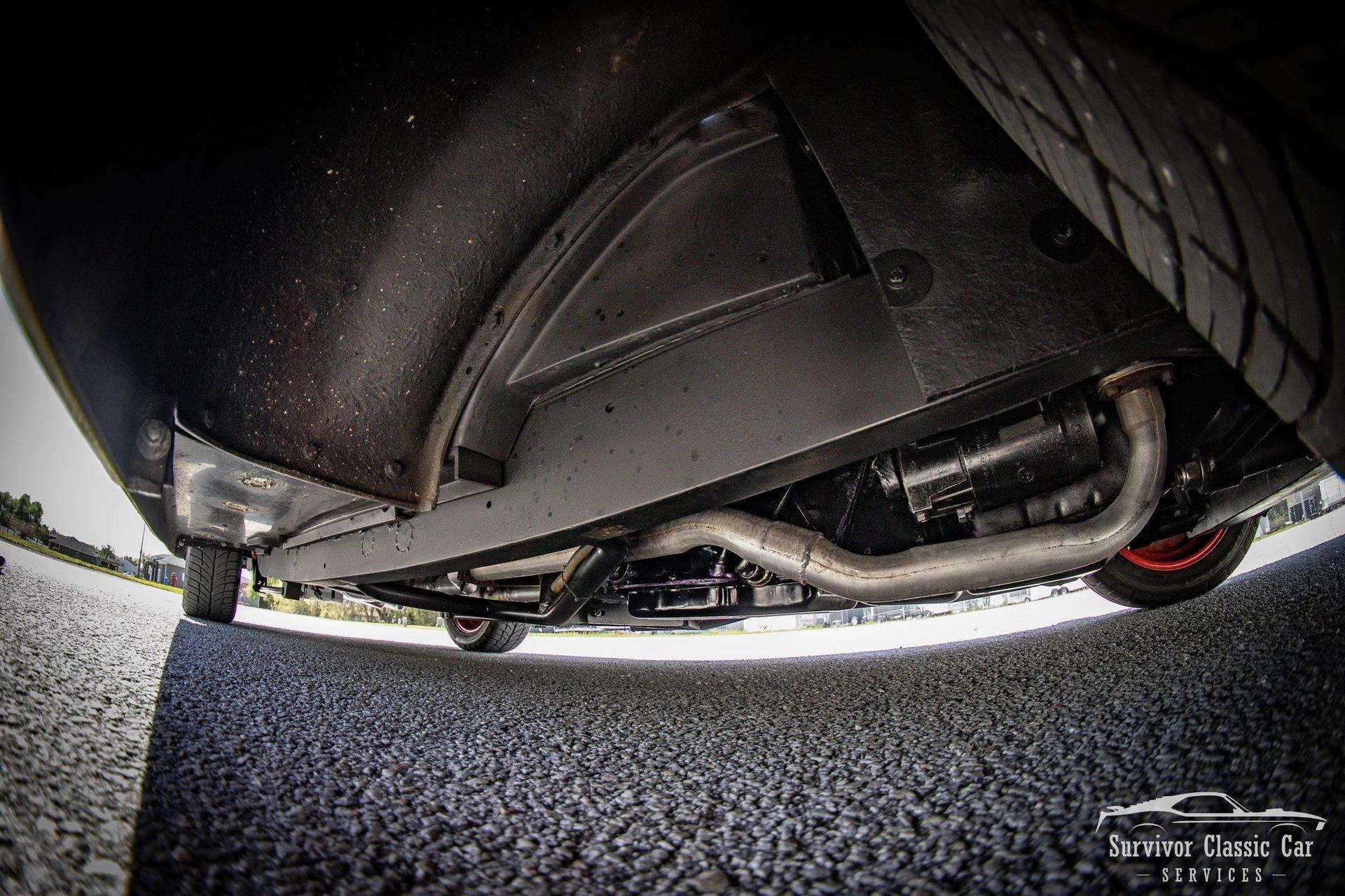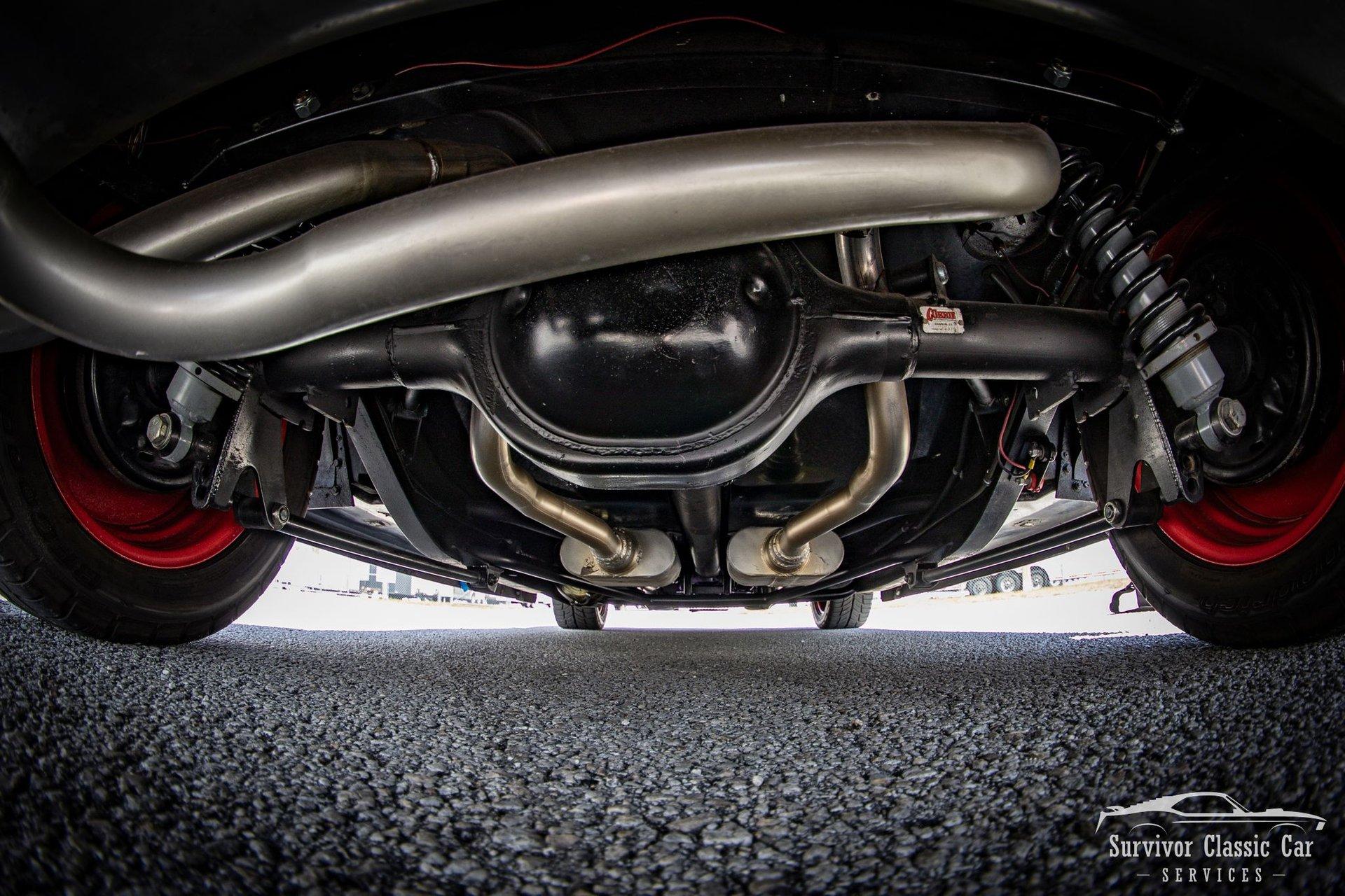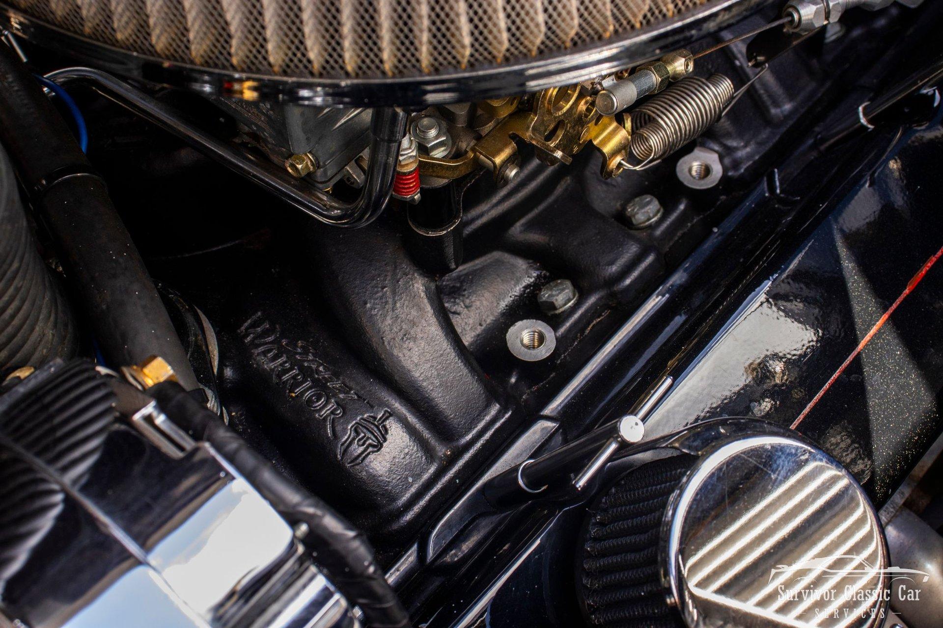 Now under the hood is a rebuilt 5.7L 350 V8. Fitted with a Holley 4BBL Carburetor, a Street Warrior Intake Manifold & polished Ceramic Coated Headers. Cooling provided by Walker Radiator & Electric Fans. The Transmission is a TH400 3-Speed Automatic the flows to a Currie Ford 9in in the Rear.The Chassis is a custom built Tube Steel Chassis with a Powered Rack-n-Pinion Steering & Front Powered Disc Brakes.