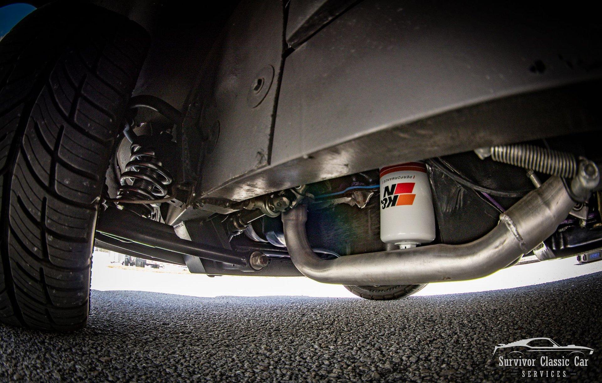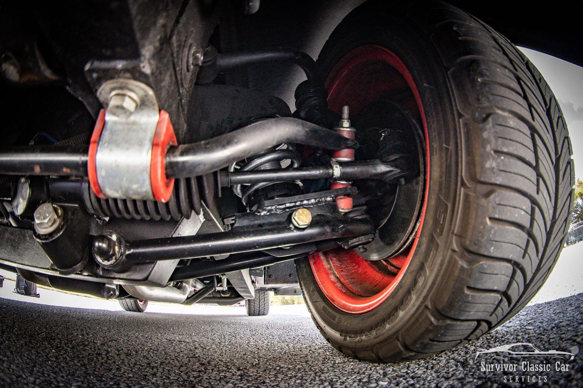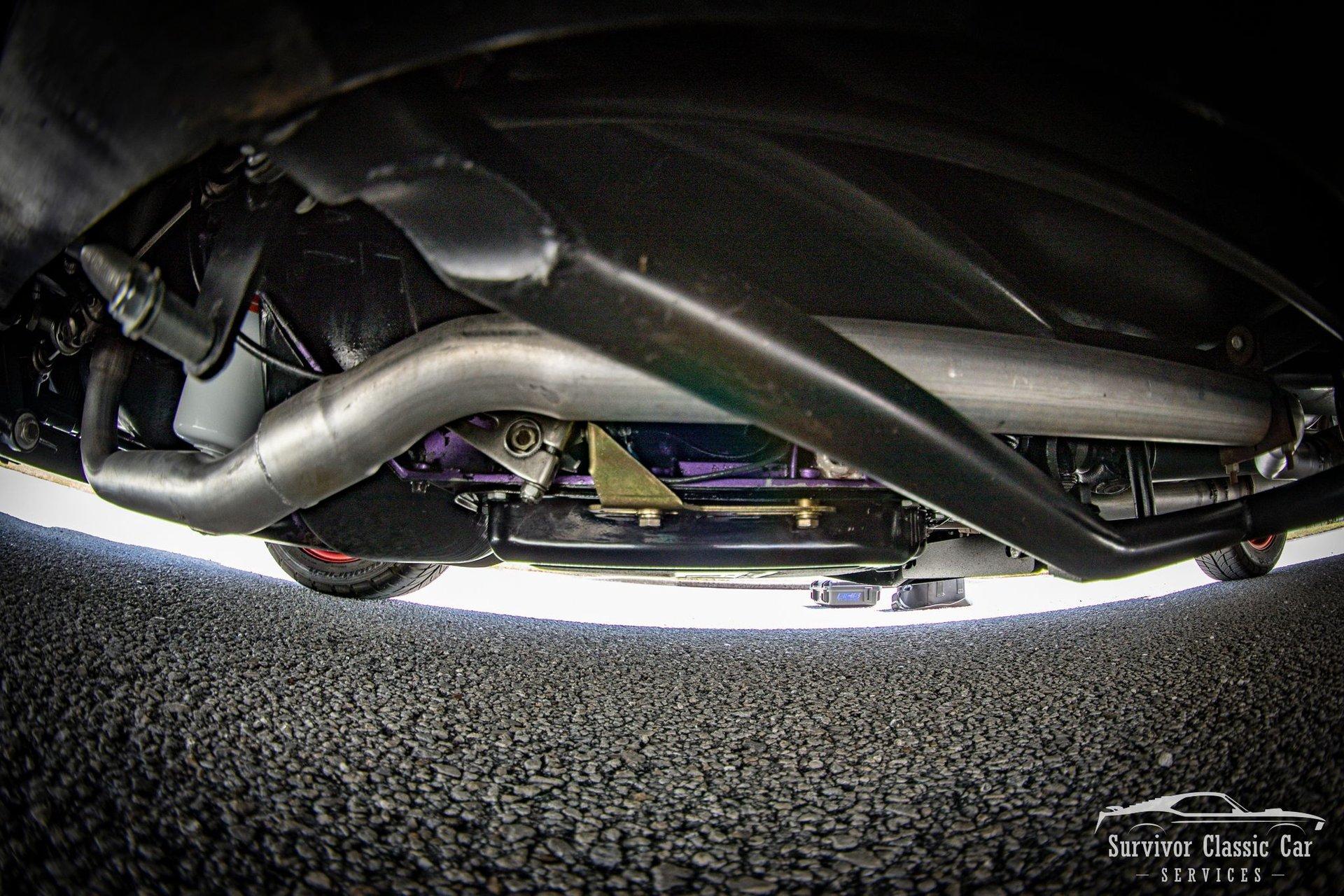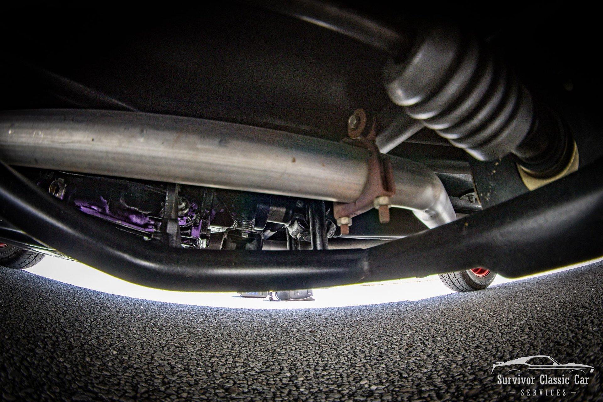 Now under the hood is a rebuilt 5.7L 350 V8. Fitted with a Holley 4BBL Carburetor, a Street Warrior Intake Manifold & polished Ceramic Coated Headers. Cooling provided by Walker Radiator & Electric Fans. The Transmission is a TH400 3-Speed Automatic the flows to a Currie Ford 9in in the Rear.The Chassis is a custom built Tube Steel Chassis with a Powered Rack-n-Pinion Steering & Front Powered Disc Brakes.