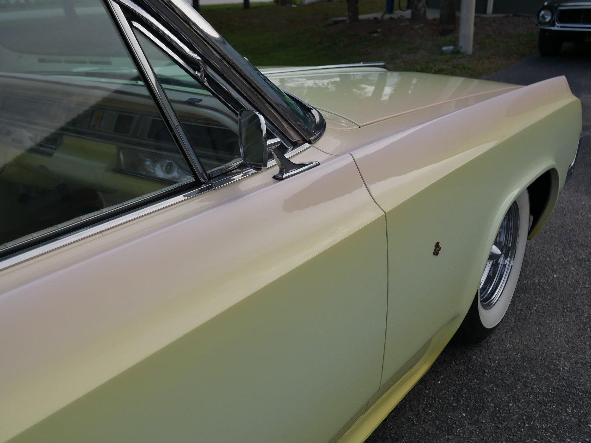 The '64 was handed over to bodyman and painter John Cardinalle in Antioch, California, shortly after being purchased from the original owner. In the interest of accentuating the car's crisp styling and giving it a longer look, the front fenders were peaked and the rear quarter-panel peaks were extended to create small fins. The rocker panels were also extended, and all seams welded and filled. After frenching the stock taillight lenses and shaving off virtually all of the trim and emblems, John sprayed a bright finish of PPG Lemon Chiffon Pearl paint with Peach Pearl highlights.