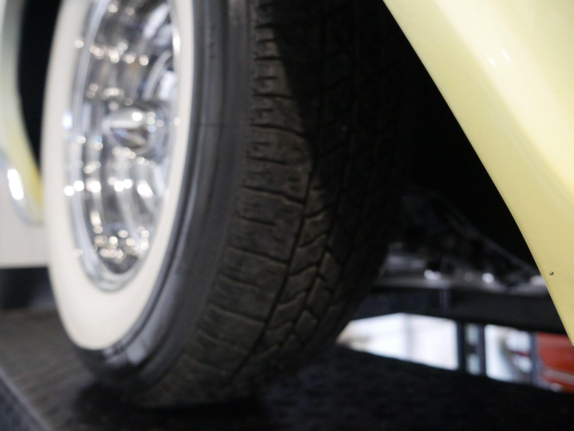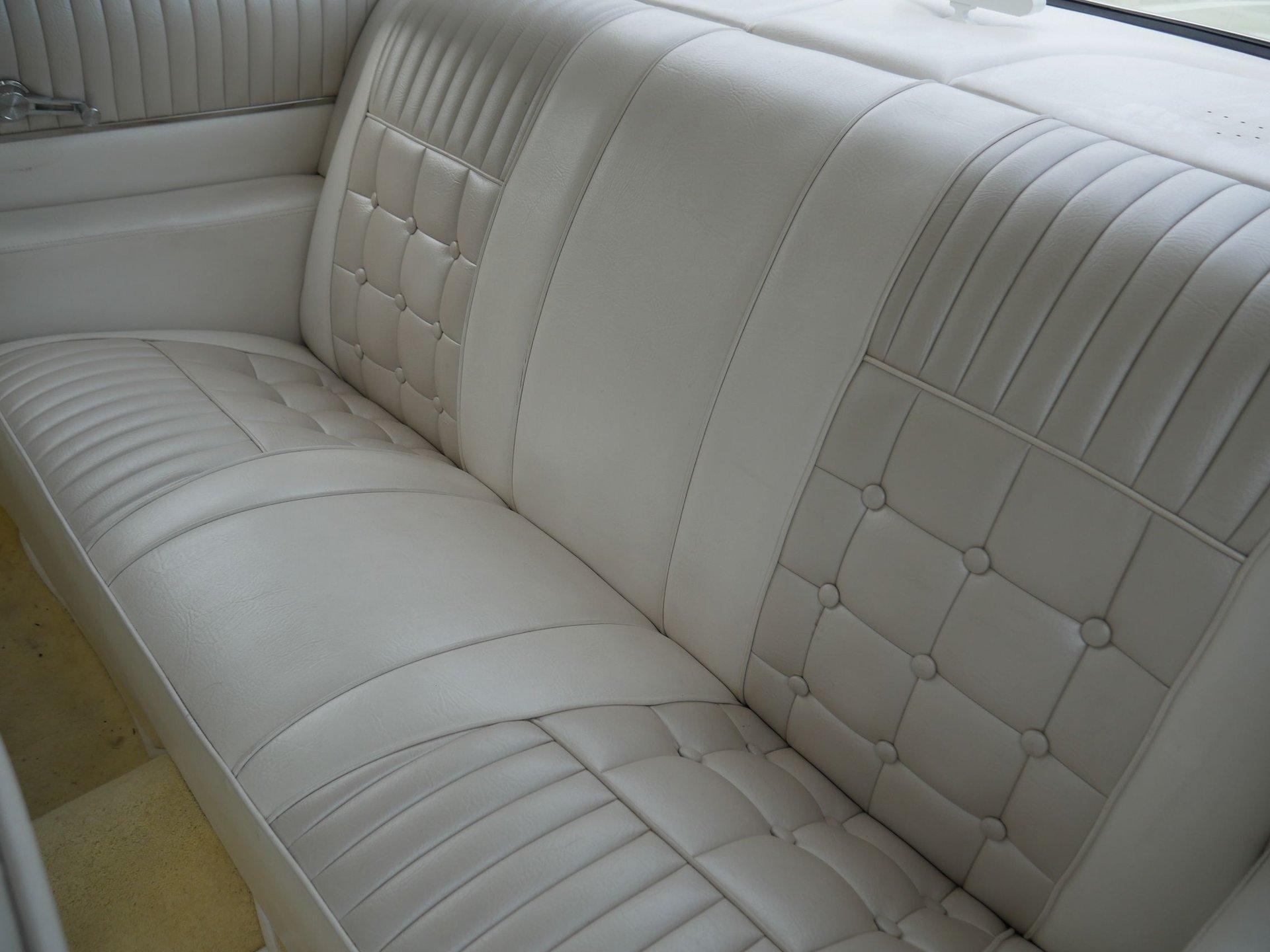 Just as he's done many times in the past, D'Agostino called on Bob Divine to stitch pearl white upholstery in a manner evoking the look of the early '60s. Divine responded with rolls, pleats, and biscuit inserts on modified late-model bucket front seats, a stock rear bench, and a custom console. Naturally, the trunk was upholstered to match. Yellow carpet was laid down to coordinate with the lemon and peach paint on the dash, while a Pioneer stereo was stashed in the glovebox to provide cruise-worthy tunes.