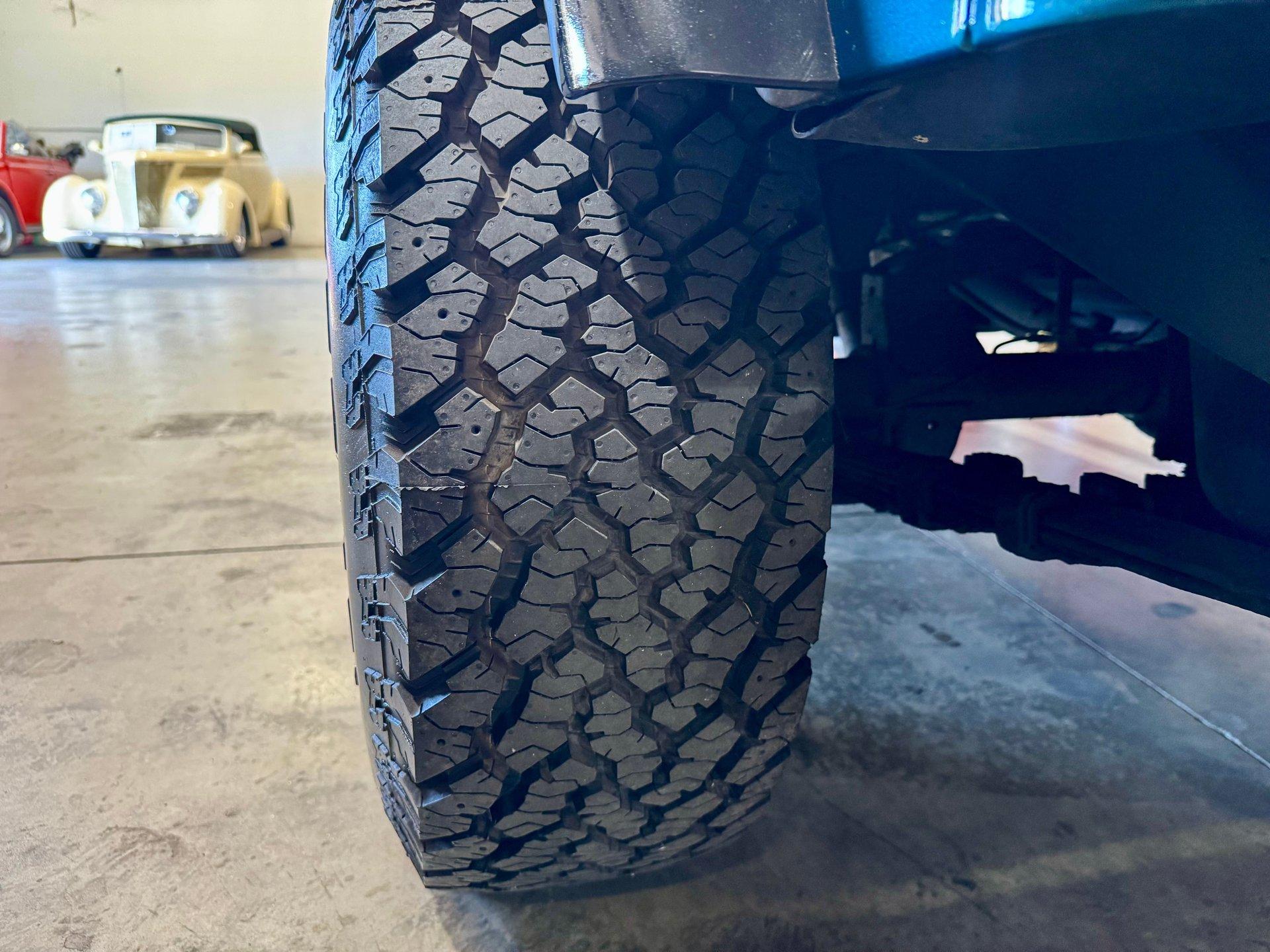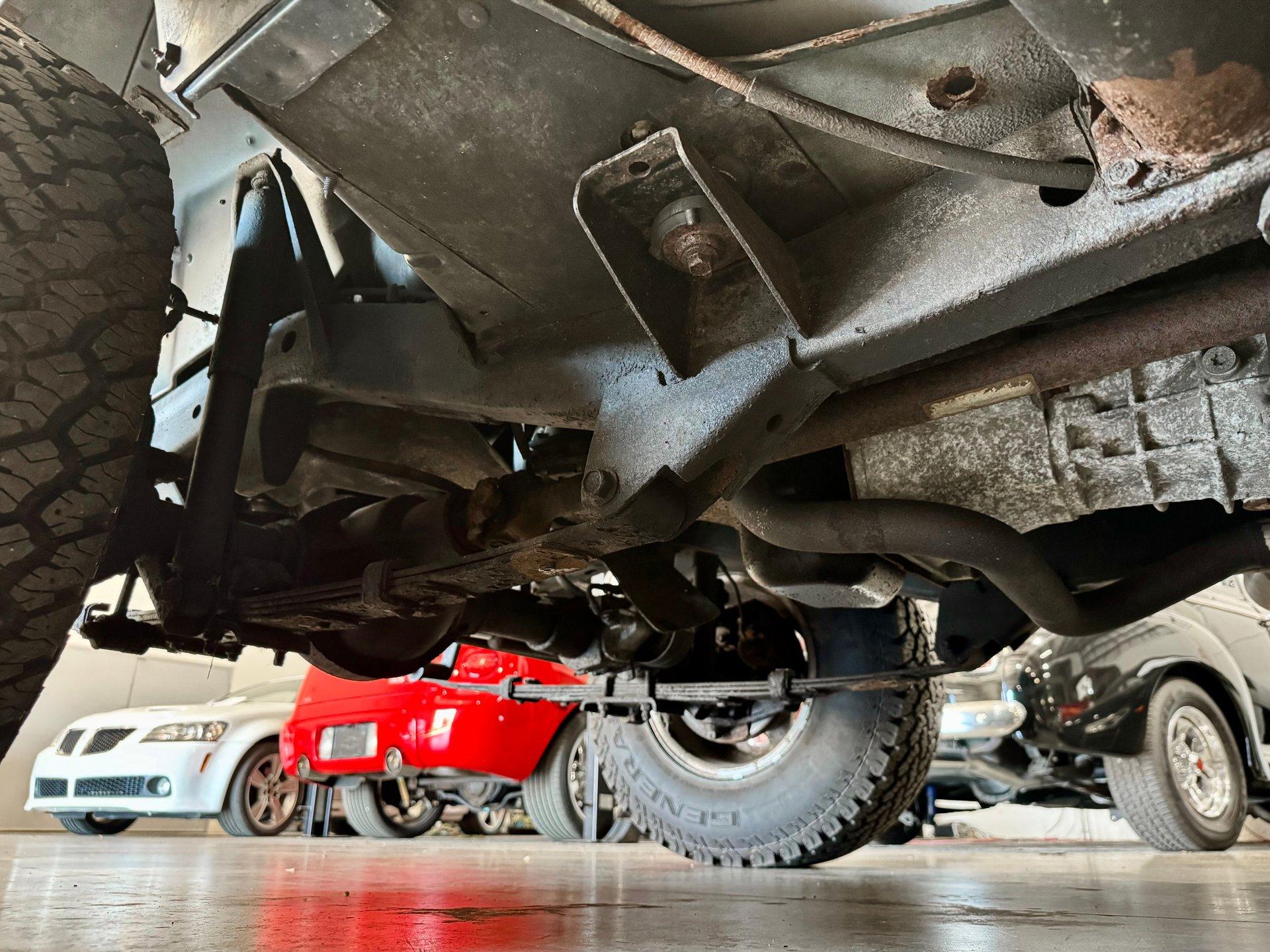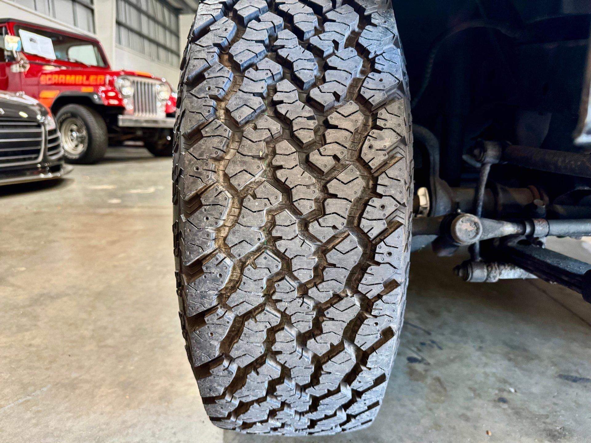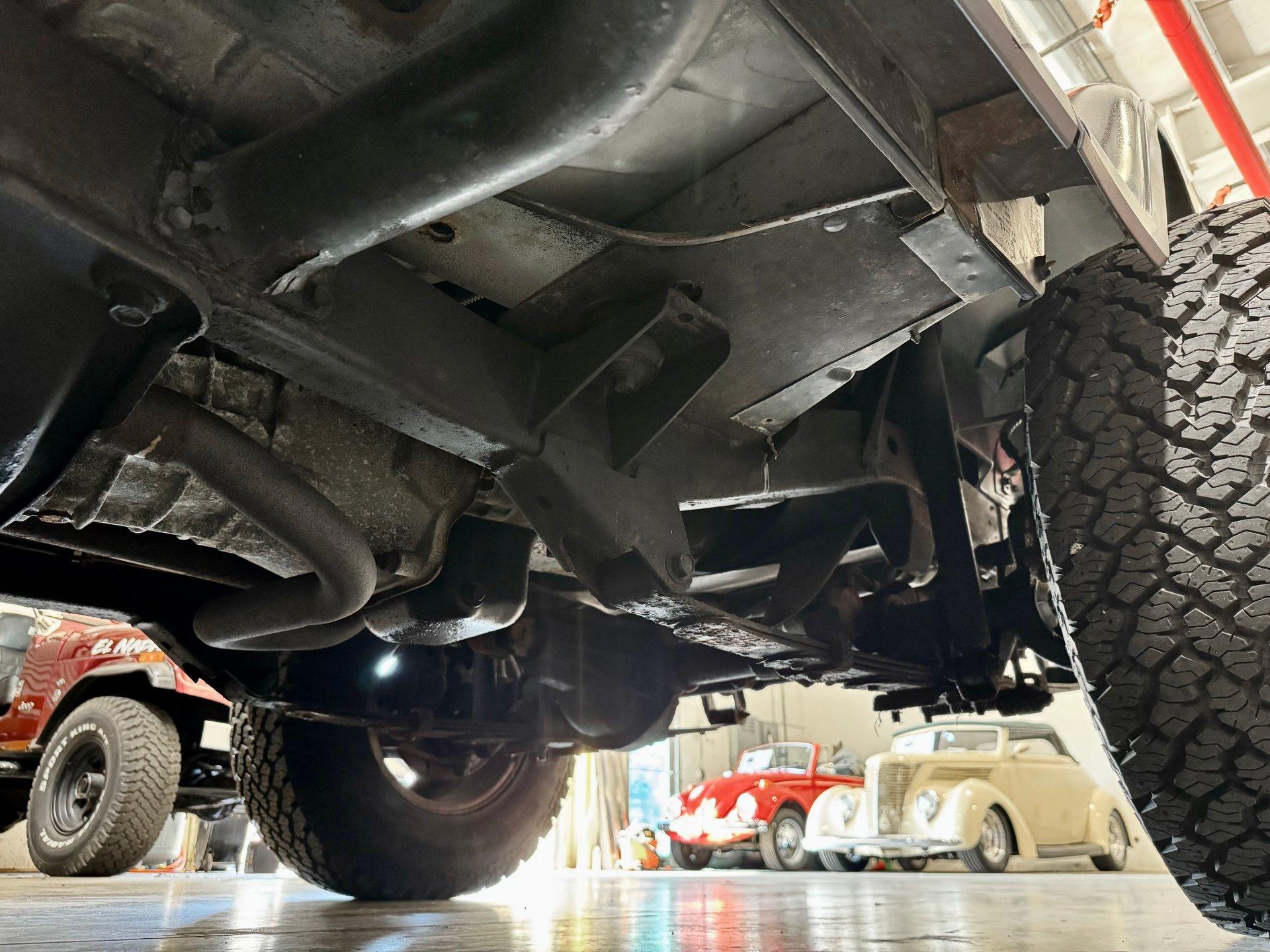 The solid exterior is finished in a beautiful Emerald Green Metallic that changes based on sun/shade exposure and compliments the black hardtop. Black nerf bars and 31X10.5'' General Grabber AT2 tires wrap around vintage Centerline Alloys for an appearance that's both on and off road ready. There is even a hitch for a small trailer to be towed with you!