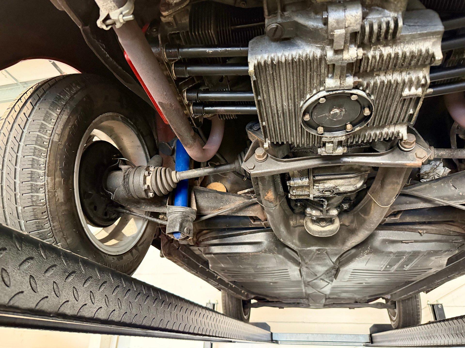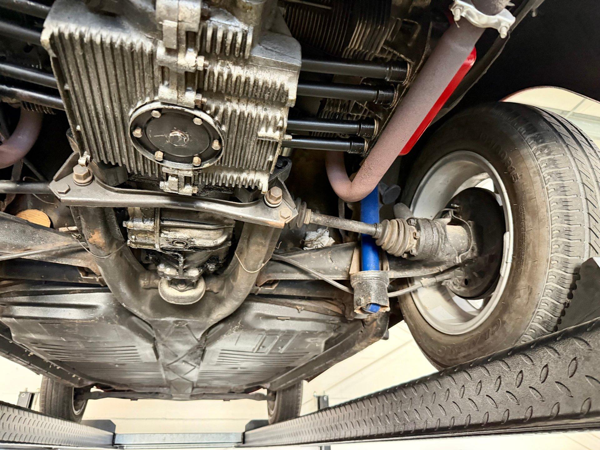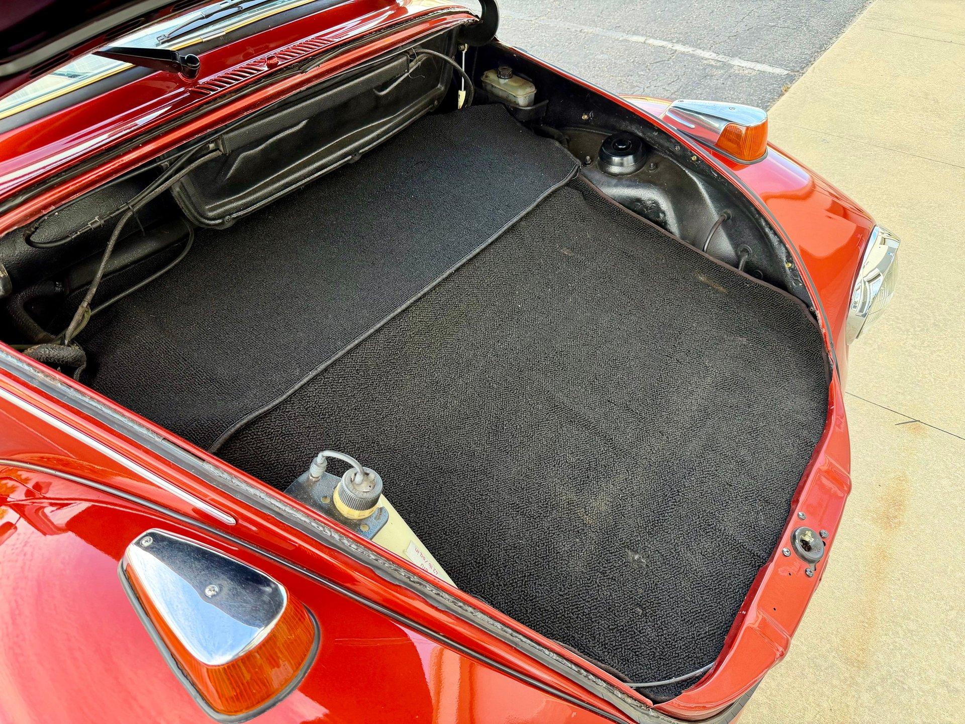 The engine is a 1,600 CC 4-cylinder mated to a 4-speed manual transmission. This is the Super Beetle so it has McPherson struts in the front for a tighter turning radius and better ride quality than the standard beetle. The convertible top drops easily and gets tucked away under the top boot to protect it and give a more buttoned up look.