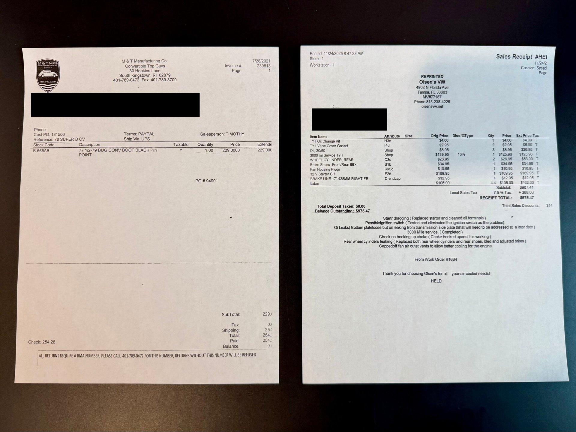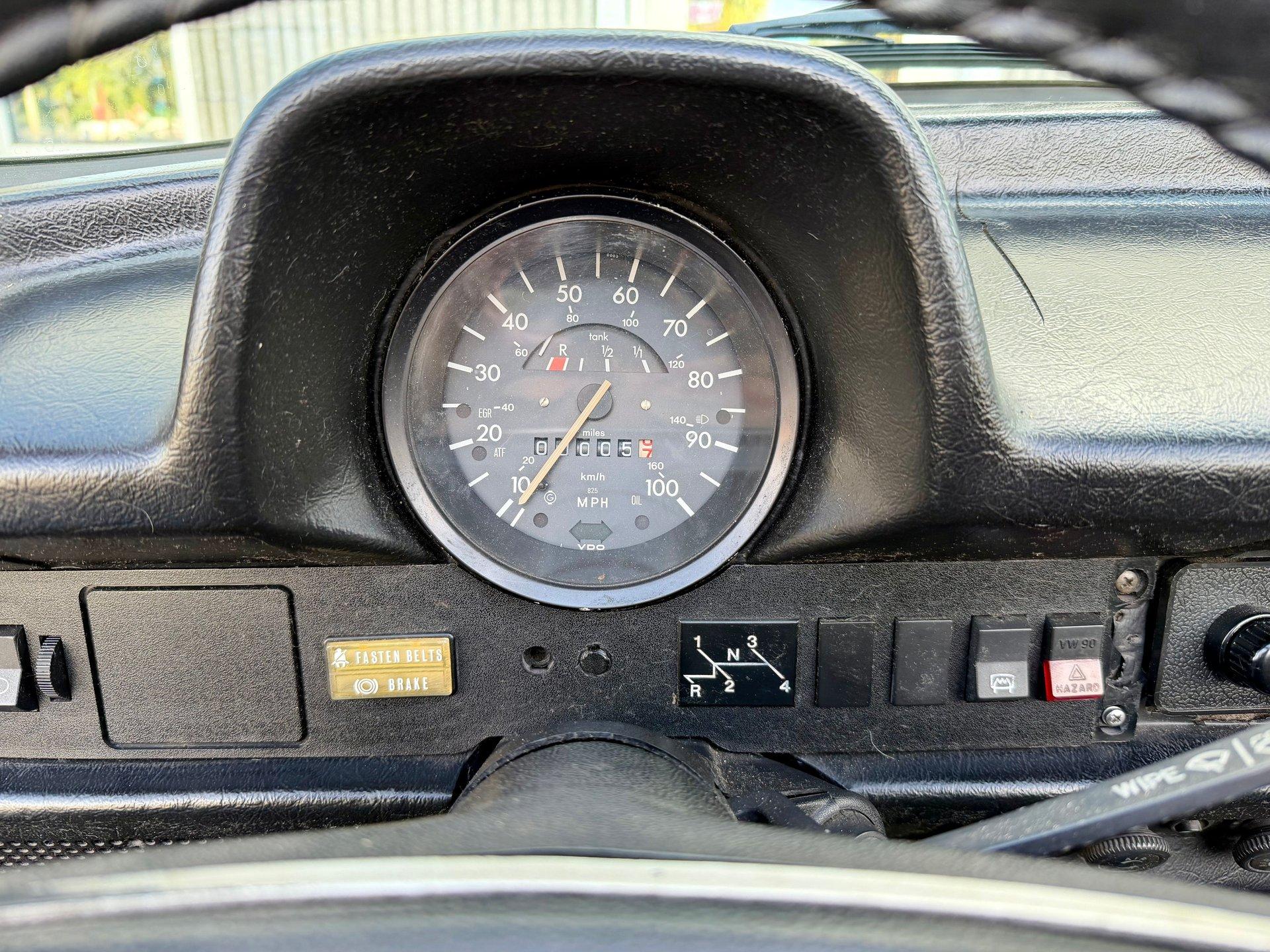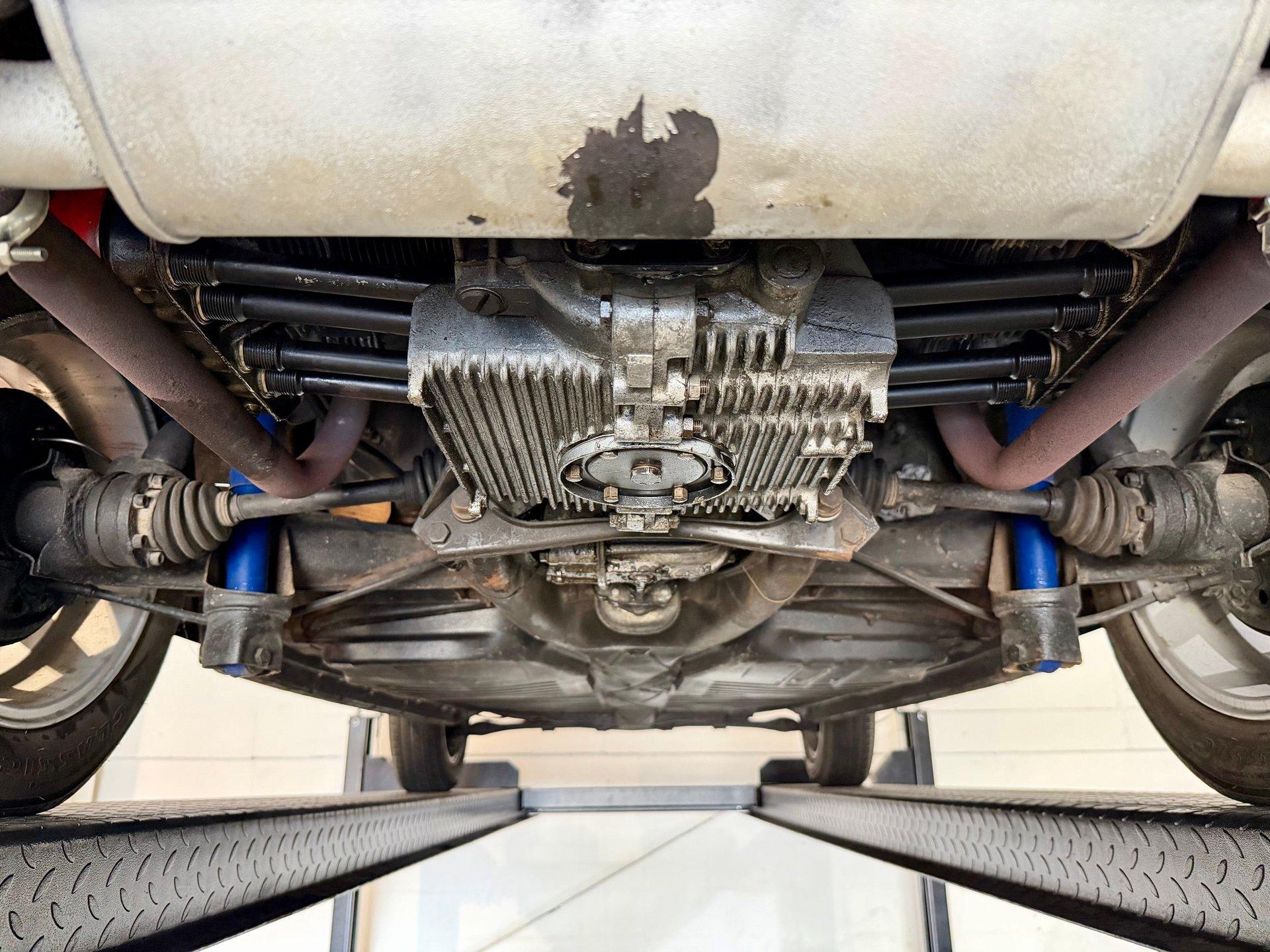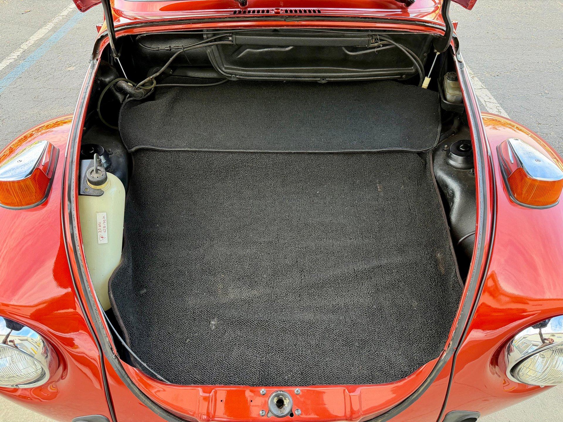 The engine is a 1,600 CC 4-cylinder mated to a 4-speed manual transmission. This is the Super Beetle so it has McPherson struts in the front for a tighter turning radius and better ride quality than the standard beetle. The convertible top drops easily and gets tucked away under the top boot to protect it and give a more buttoned up look.
