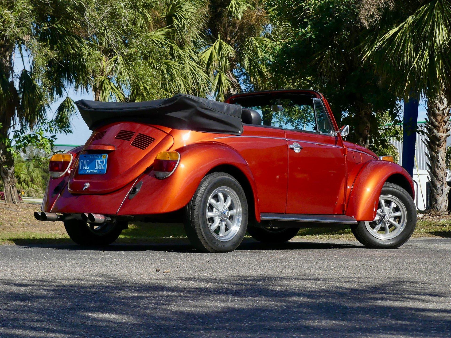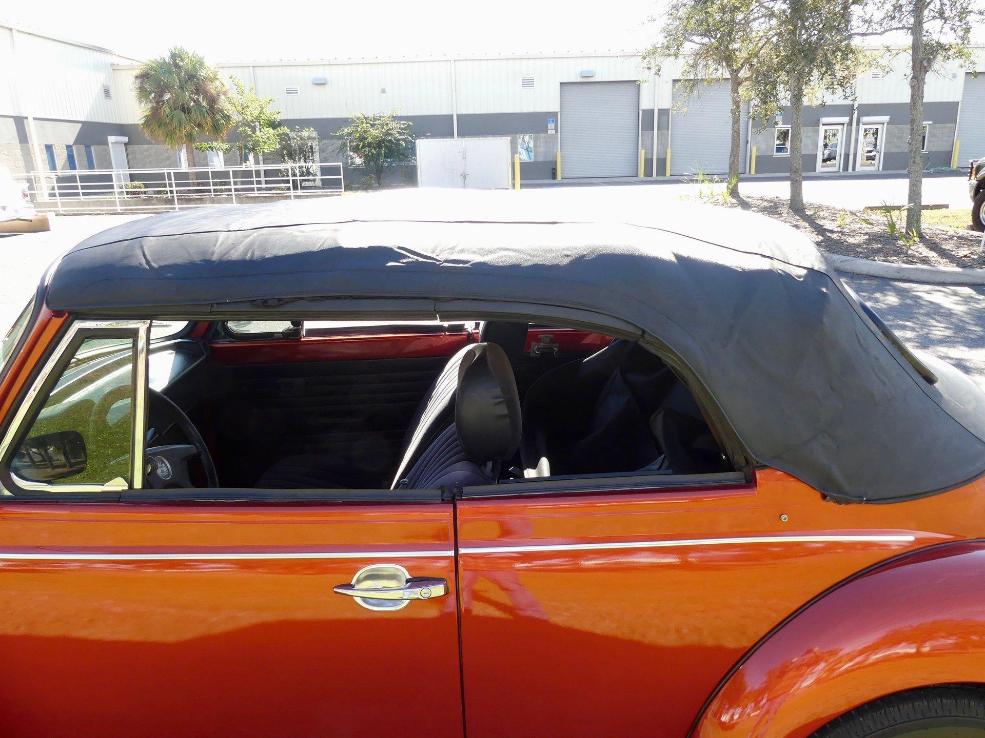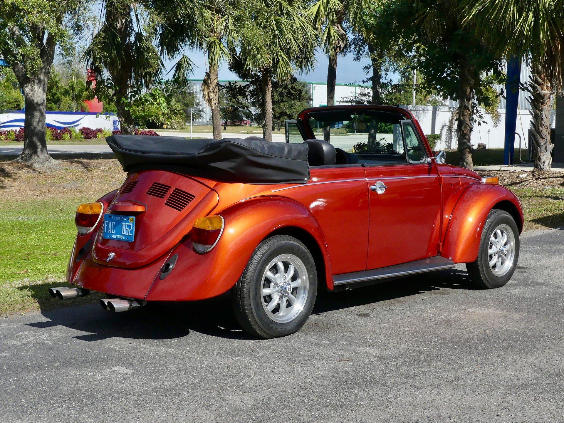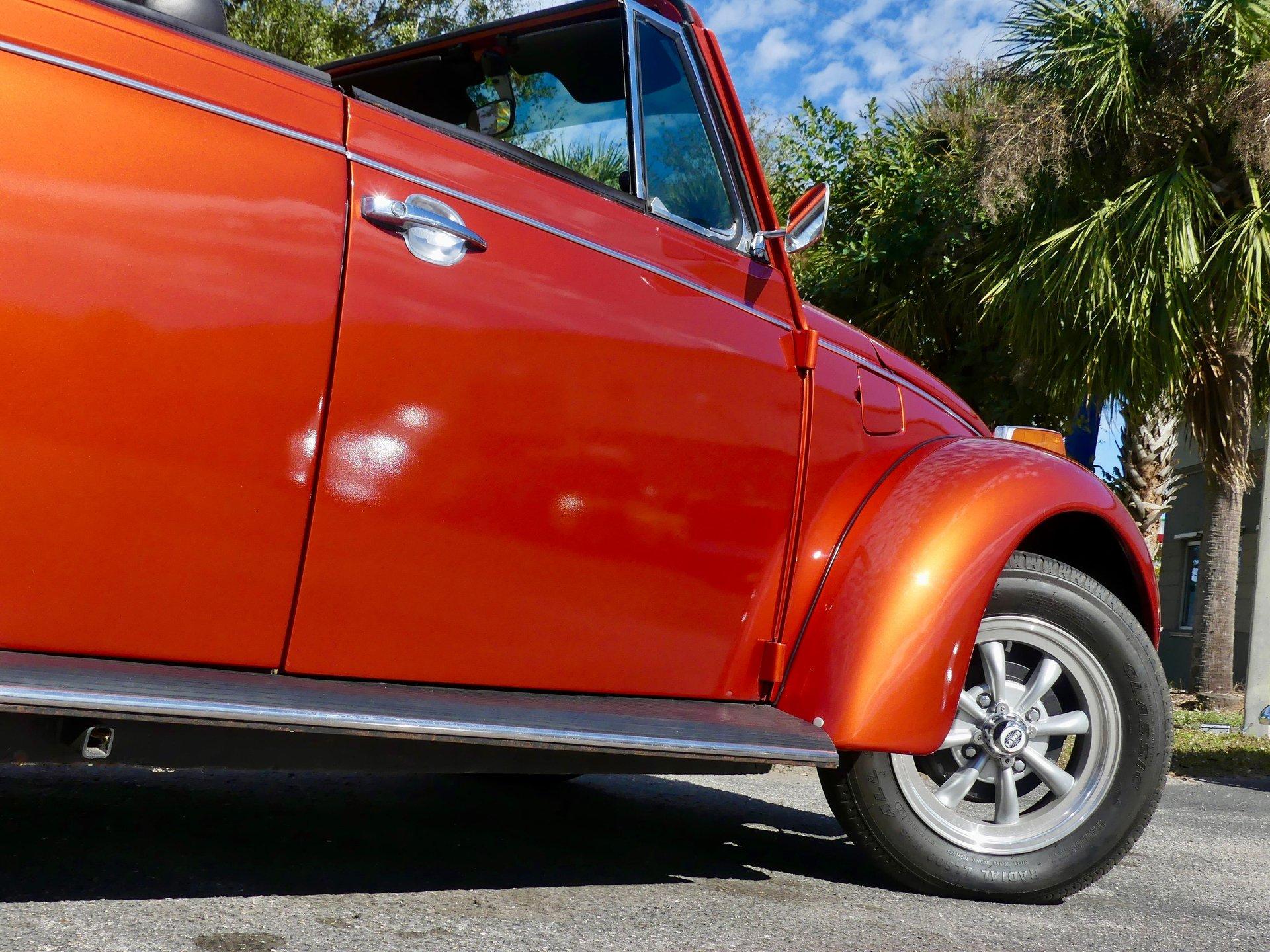 This one features a custom paint color of Burnt Orange Metallic. Paired with EMPI wheels and black convertible top, it is a real show stopper.