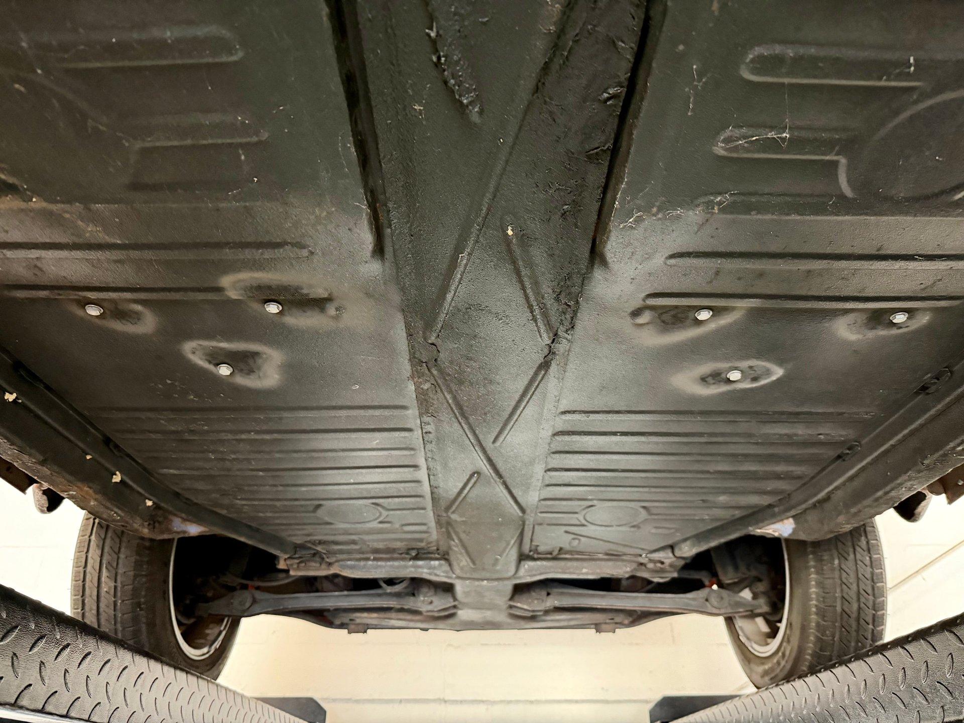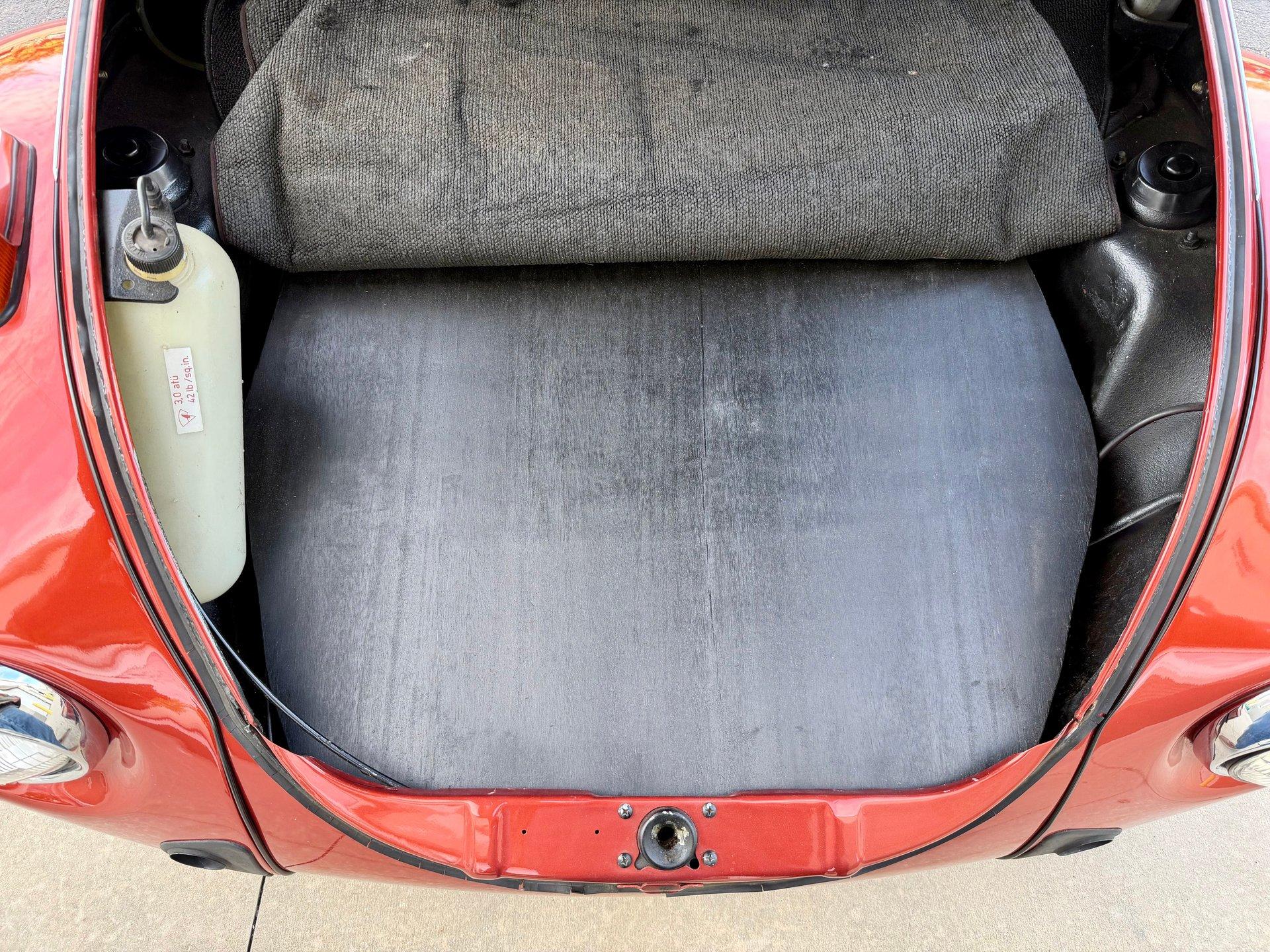 The trunk is very clean with a nice carpet mat and the spare tire in place.