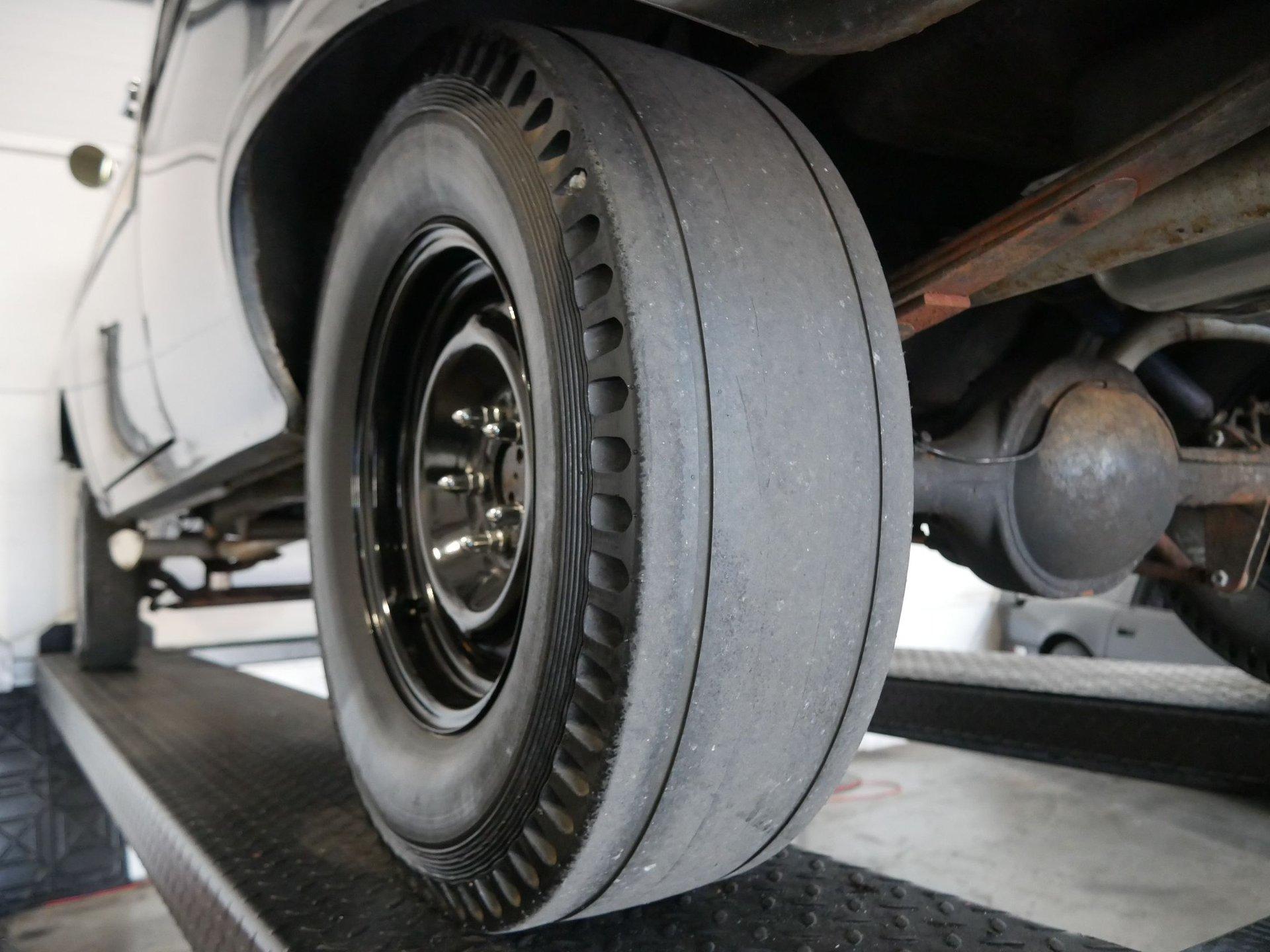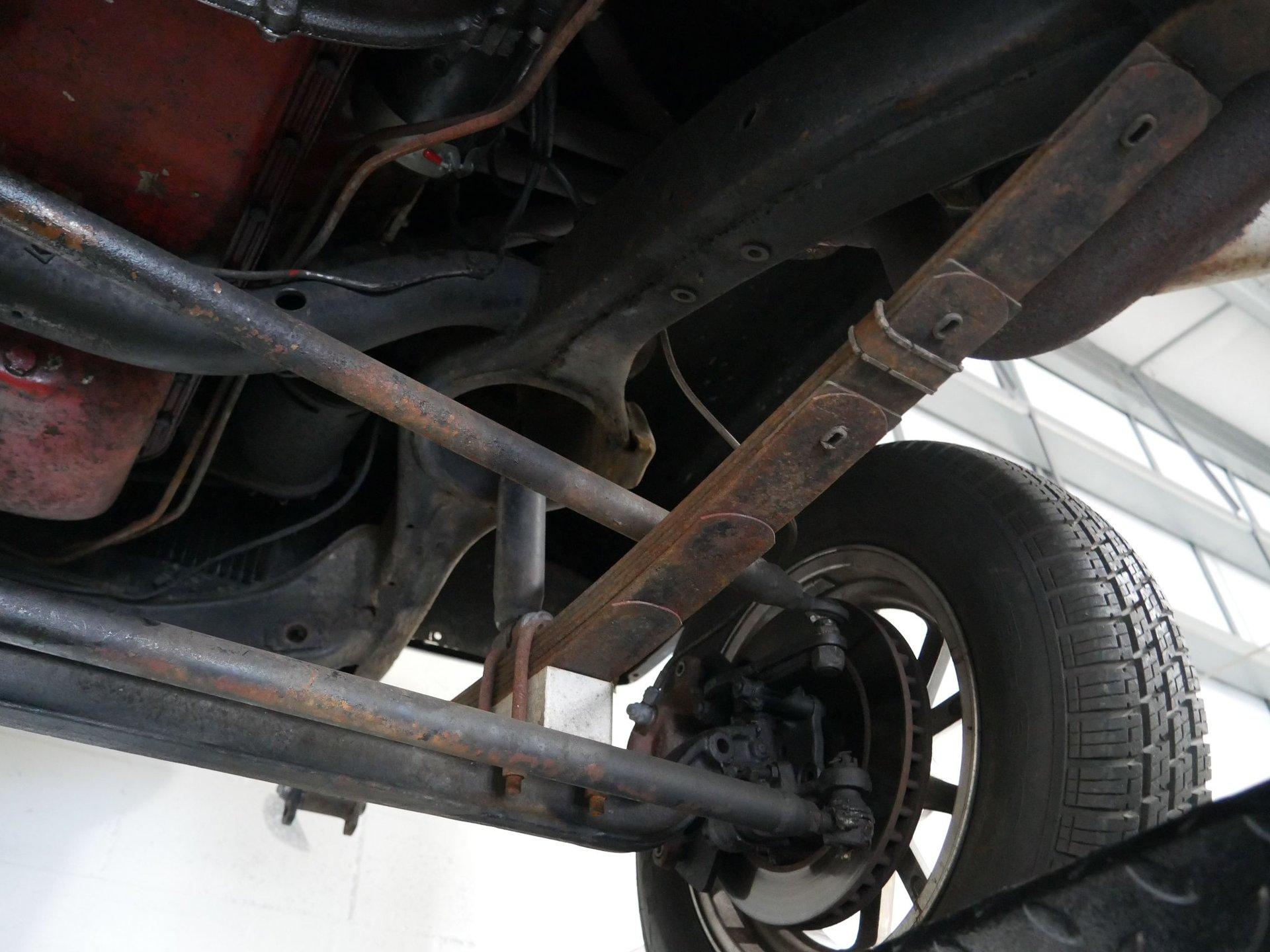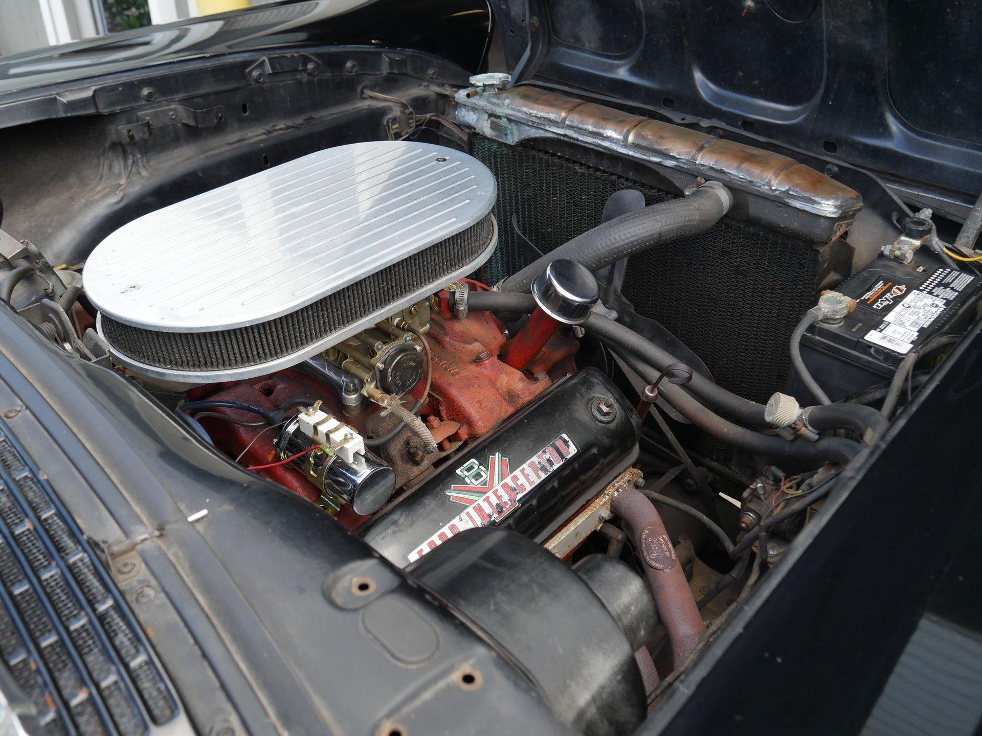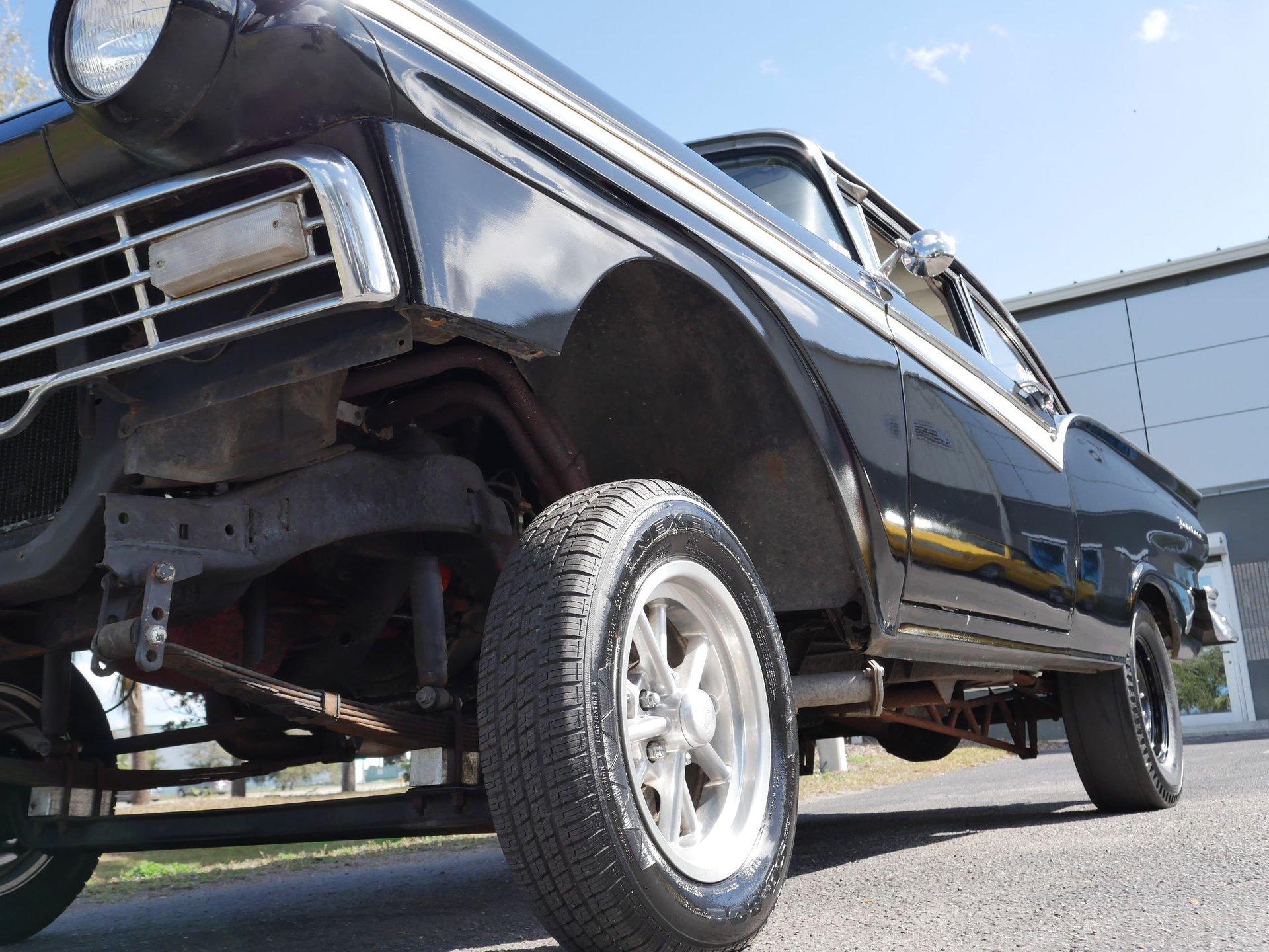 Under the hood is a 312 CID Y-Block V8 engine with Holley carburetor and full-length headers. Those headers run to true dual exhaust with glass packs for a classic hot rod rumble! Ladder bars in the rear get that power to the ground without axle hop!
