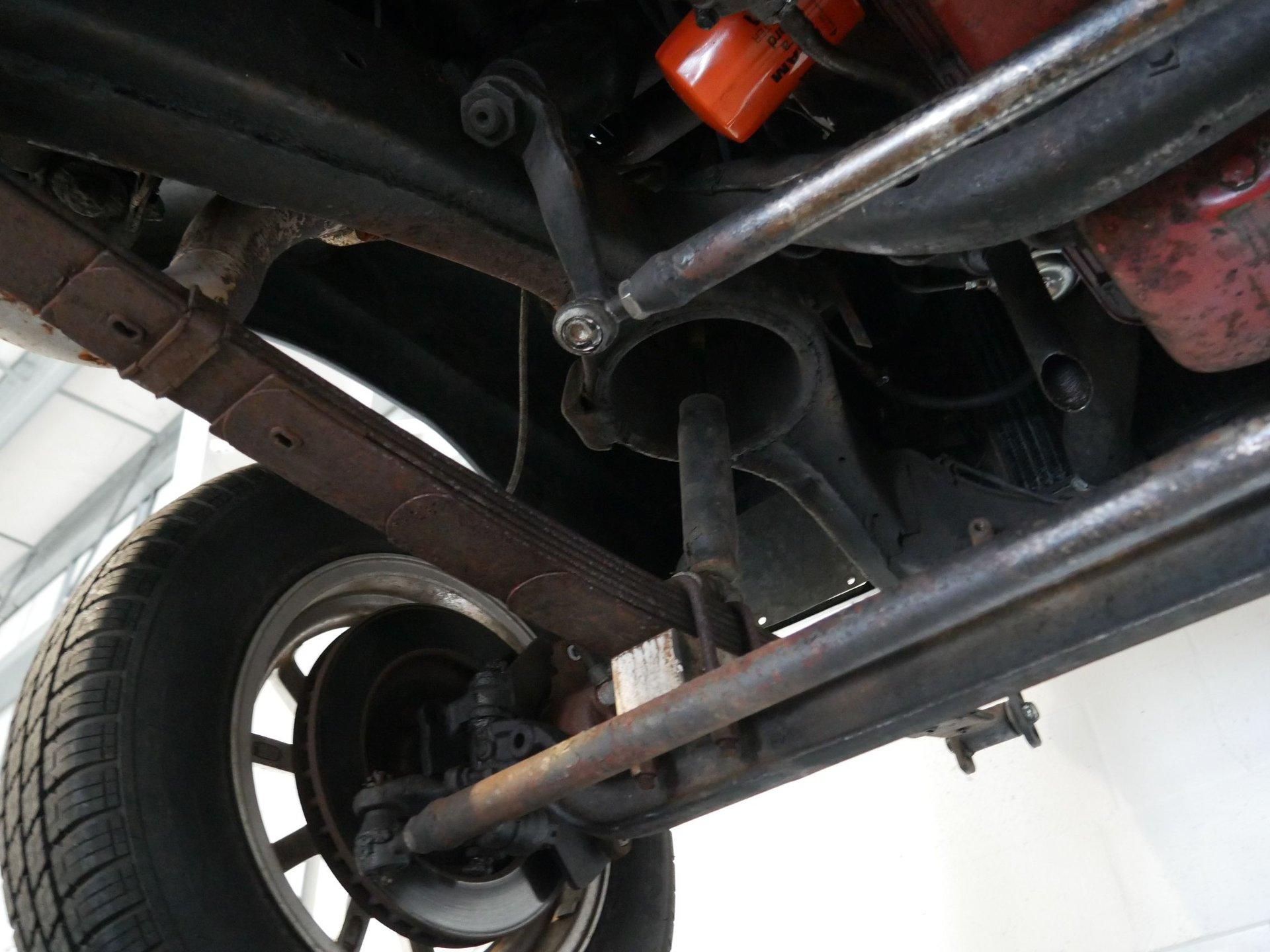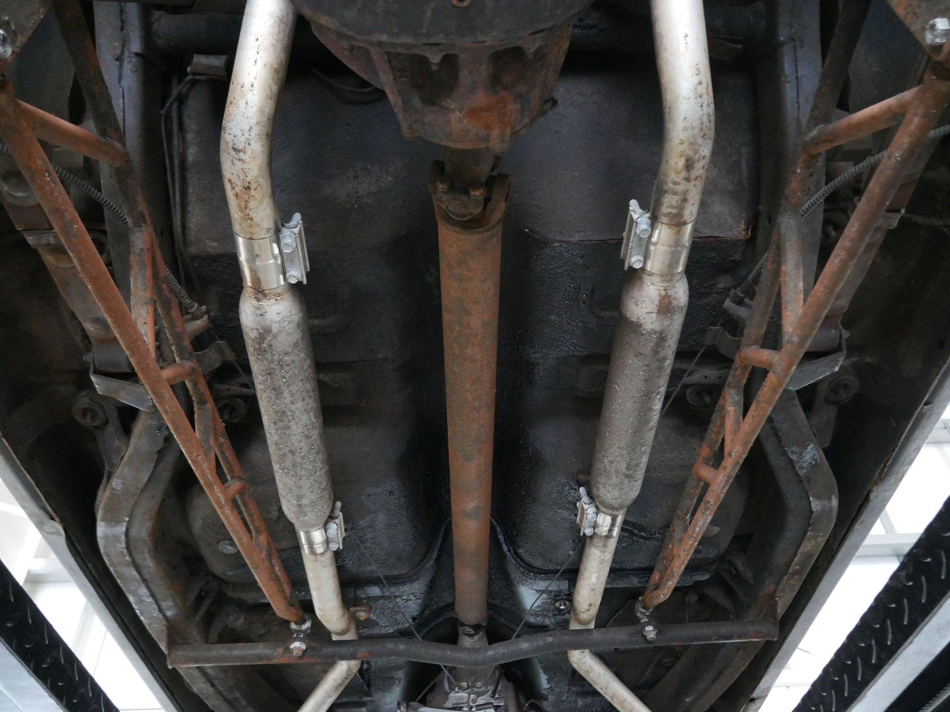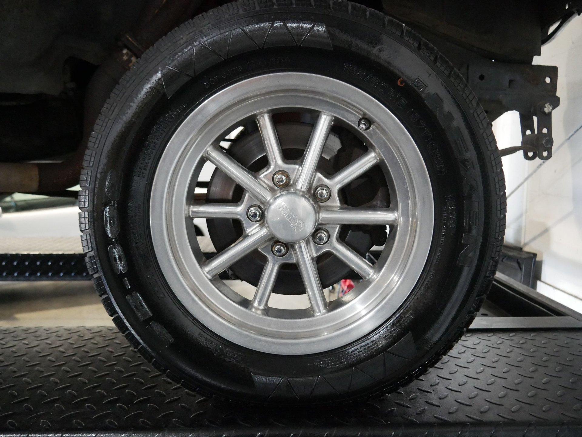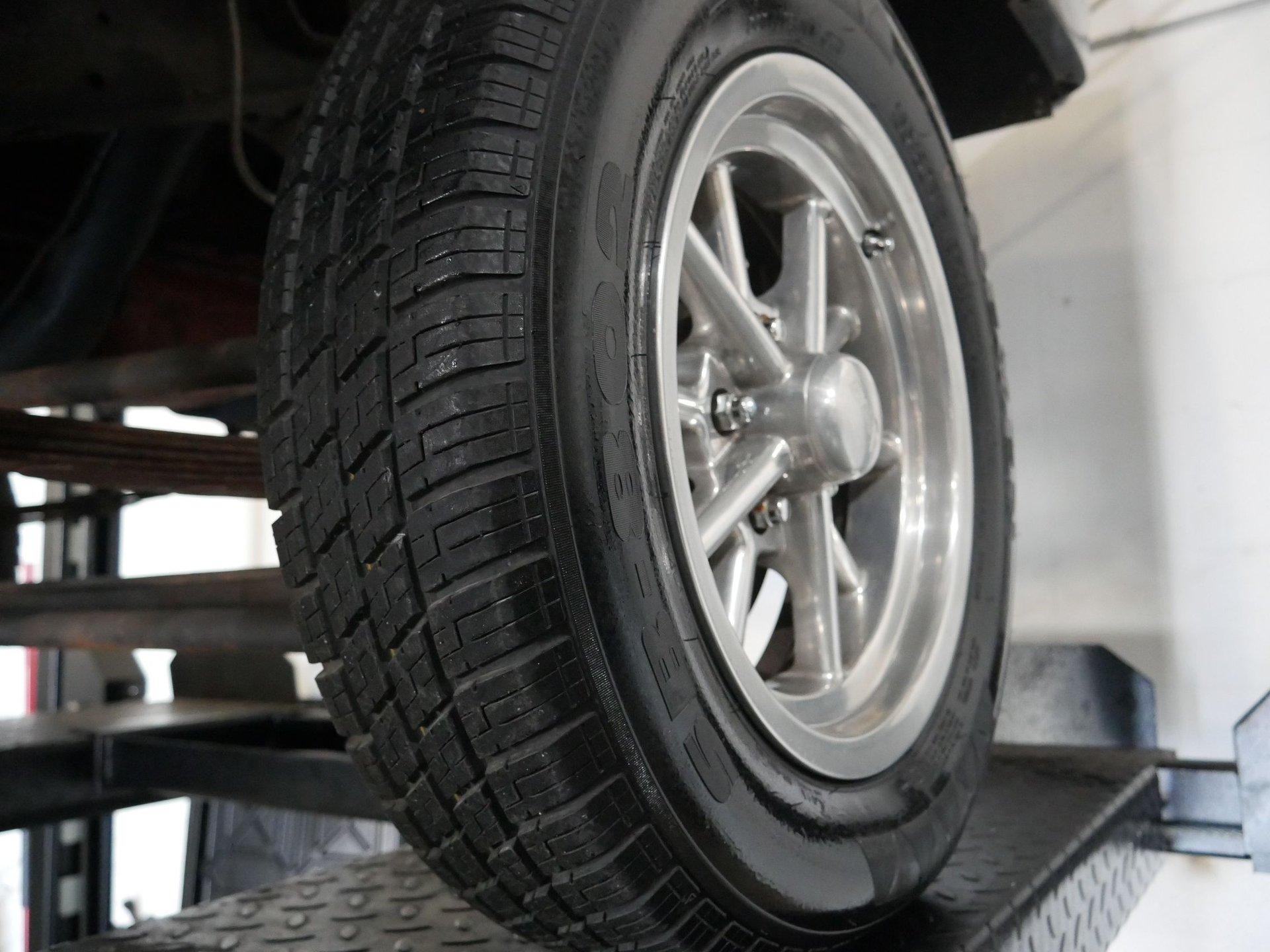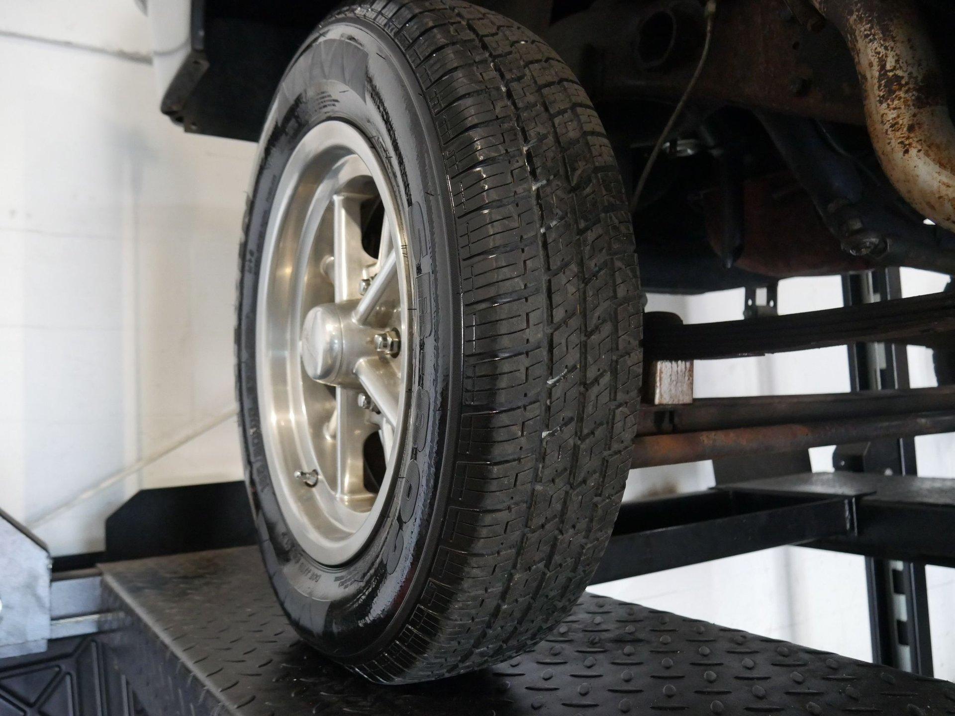 Under the hood is a 312 CID Y-Block V8 engine with Holley carburetor and full-length headers. Those headers run to true dual exhaust with glass packs for a classic hot rod rumble! Ladder bars in the rear get that power to the ground without axle hop!