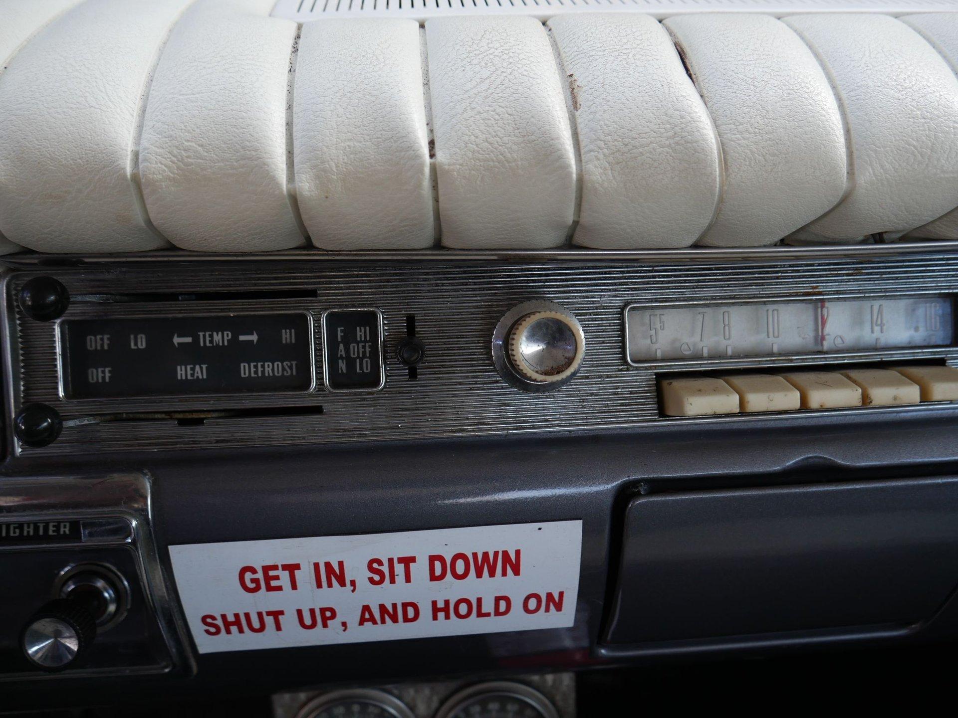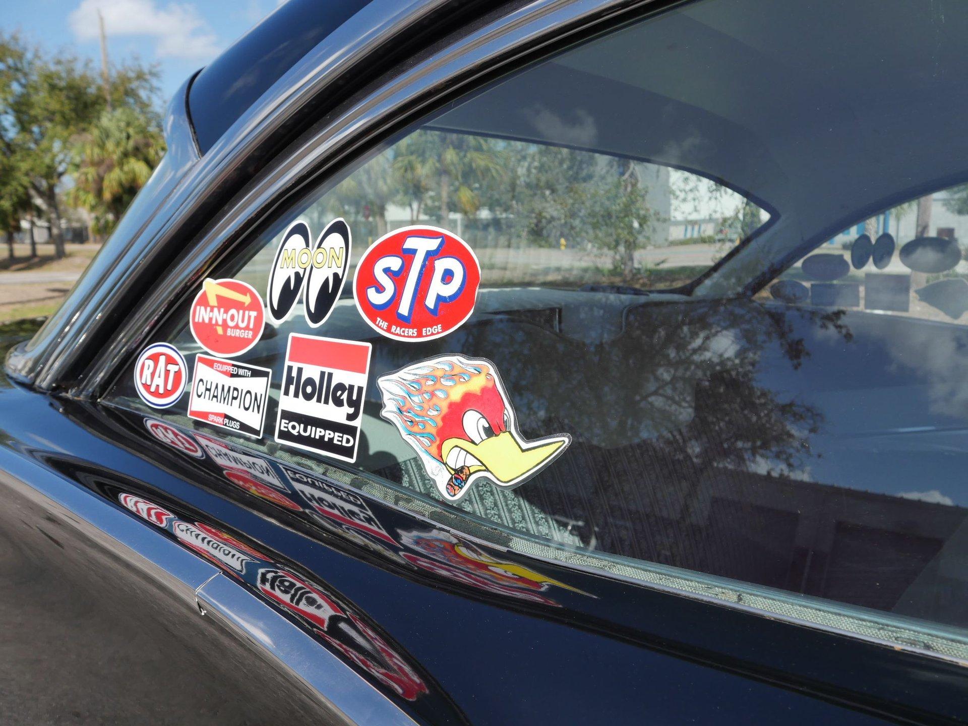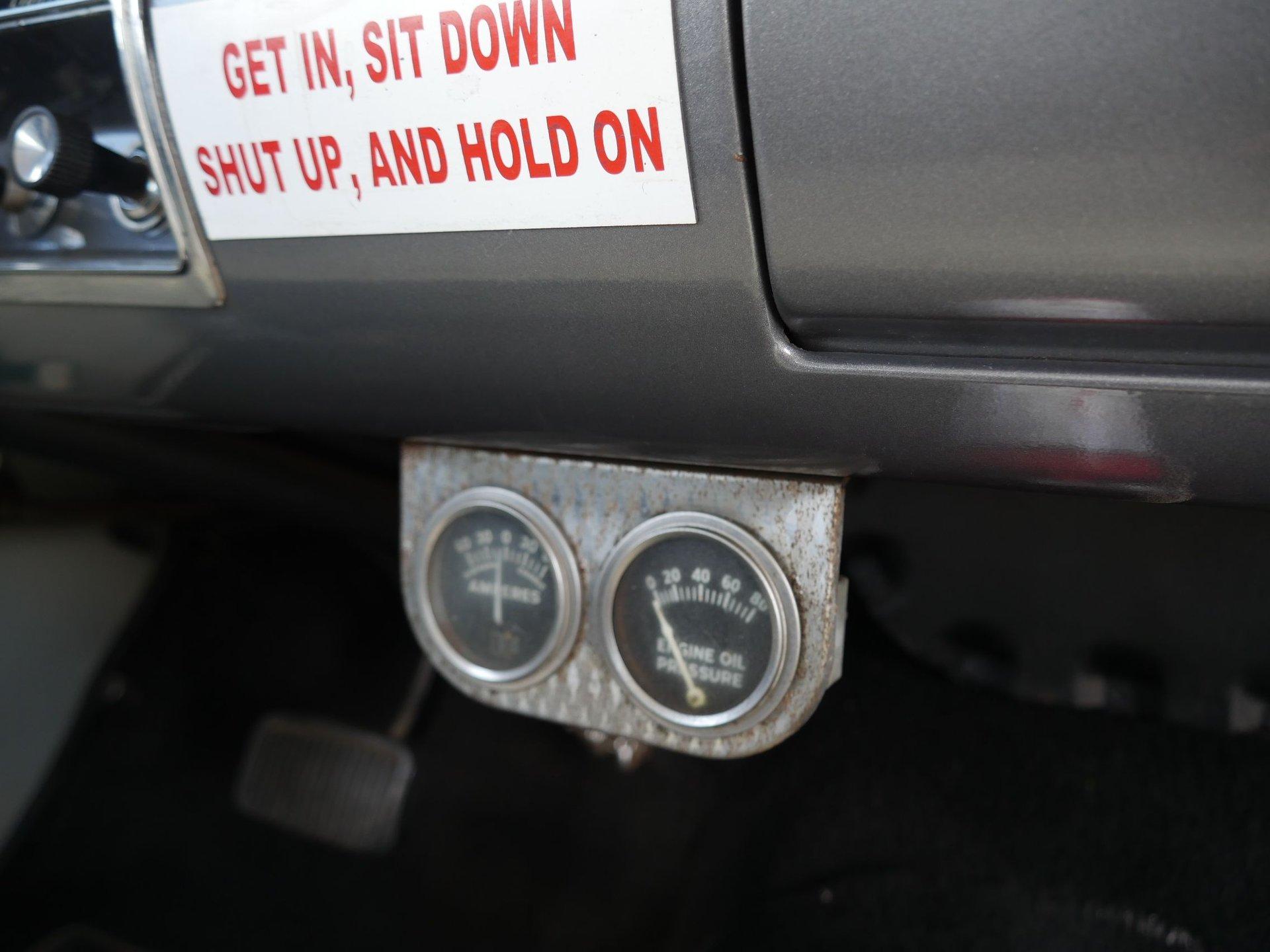 Inside is left pretty stock with the exception of a couple extra gauges under the dash, some decals on the dashboard, a suicide knob on the steering wheel, and a fire extinguisher mounted on the floor. All of that really makes you feel like you're in a drag car from the 1960s when you slide onto the cloth and vinyl bench seat! Take your friends with you to local cruise nights and shows. There is plenty of room!